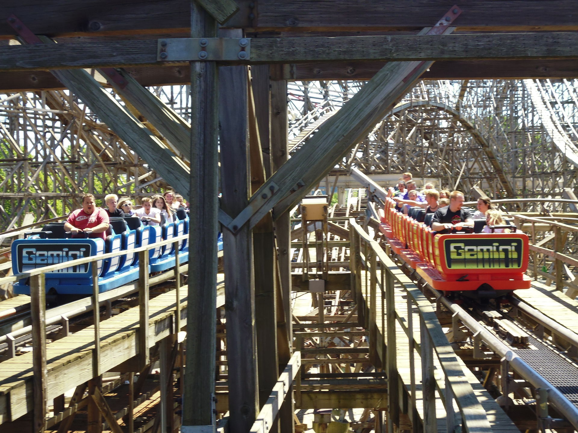 *Das Gemini-Syndrom: Der Umstand, Cedar Points Gemini bis zum Umkippen im Zwei-Seiten-Betrieb zu erleben, die Anlage zu Ablichtungs-Zeitpunkten hinterher jedoch präzise dann nur noch mit einer in Betrieb befindlichen Seite oder aber in Betriebsart mit nicht synchron abgefertigten Zügen vorzufinden.