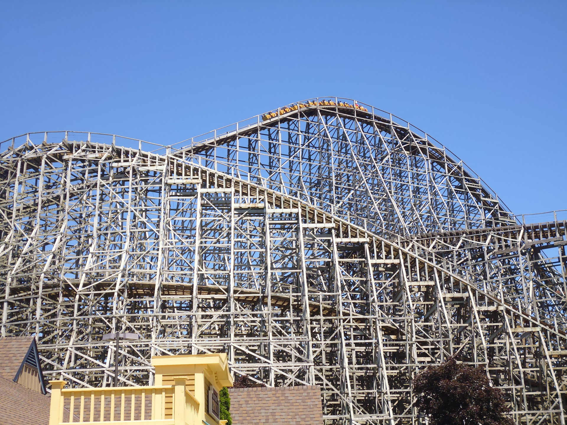 Gemini wär echt nur halb so gut ohne die wirklich fast immer greifbare Nähe zum anderen Zug! Aber die Zwillingsbahn bietet zu beiden Seiten mit ihren doch immerhin 36 Meter hohen ersten Abfahrten, einer ansehnlichen Höchstgeschwindigkeit, abrupten Drops und ausgesprochen rustikalen Airtimeanfällen ein schlicht nur als genial zu bezeichnendes Gesamtfahrerlebnis, trotz der unbestreitbar raueren Natur des halt im Alter schon eher als fortgeschritten zu bezeichnenden Schmuckstücks. Die richtigen Connaisseure, so würde ich meinen, vertragen das jedoch - erst recht angesichts des nächsten Kandidaten in der fortschreitenden Coastervorstellung.