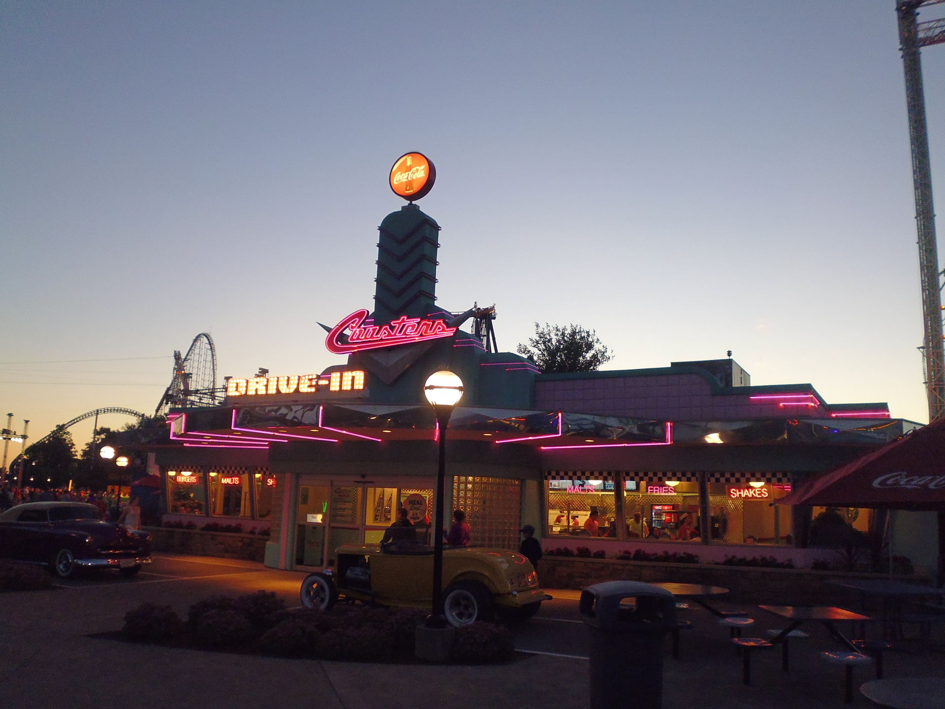 Nun zog ich mich erstmal wieder um, kehrte zu meinem fahrbaren Untersatz zurück und lenkte diesen erneut nach Sandusky rein, um noch ein spätes Mittagessen am All-you-can-eat-Buffet bei Ryan's zu mir zu nehmen. Von da aus ging es in dreieinhalb Fahrstunden dann in Richtung Süden mit Ziel Mason. Zwar hatte das Navi in Mansfield, ähnlich wie das gemietete im Jahr 2010, reichlich Mühe mich korrekt durch den Ort und zum endlich erreichten Interstate-Anschluss zu lenken, und nach Columbus gab es zudem noch eine kleine Stausituation durch einen defekten Müllwagen auf der Überholspur. Aber irgendwann am frühen Abend war dann dennoch mein nächstes Hotel erreicht, das Super 8 in Mason, das in unmittelbarer Nähe zum nächsten Parkziel lag, Kings Island. Dort sollte es am gleichen Abend und den ganzen Folgetag dann auch noch hingehen, entsprechend wird der nächste Bericht auch davon handeln.