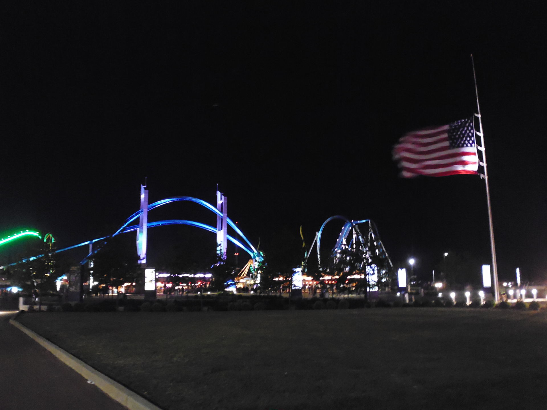 Mit einem letzten Blick zurück nahm ich Abschied für heute von Cedar Point. Die Fahne ist hier übrigens auf Halbmast gehisst, da dies der Tag nach dem Amoklauf in Orlando war.