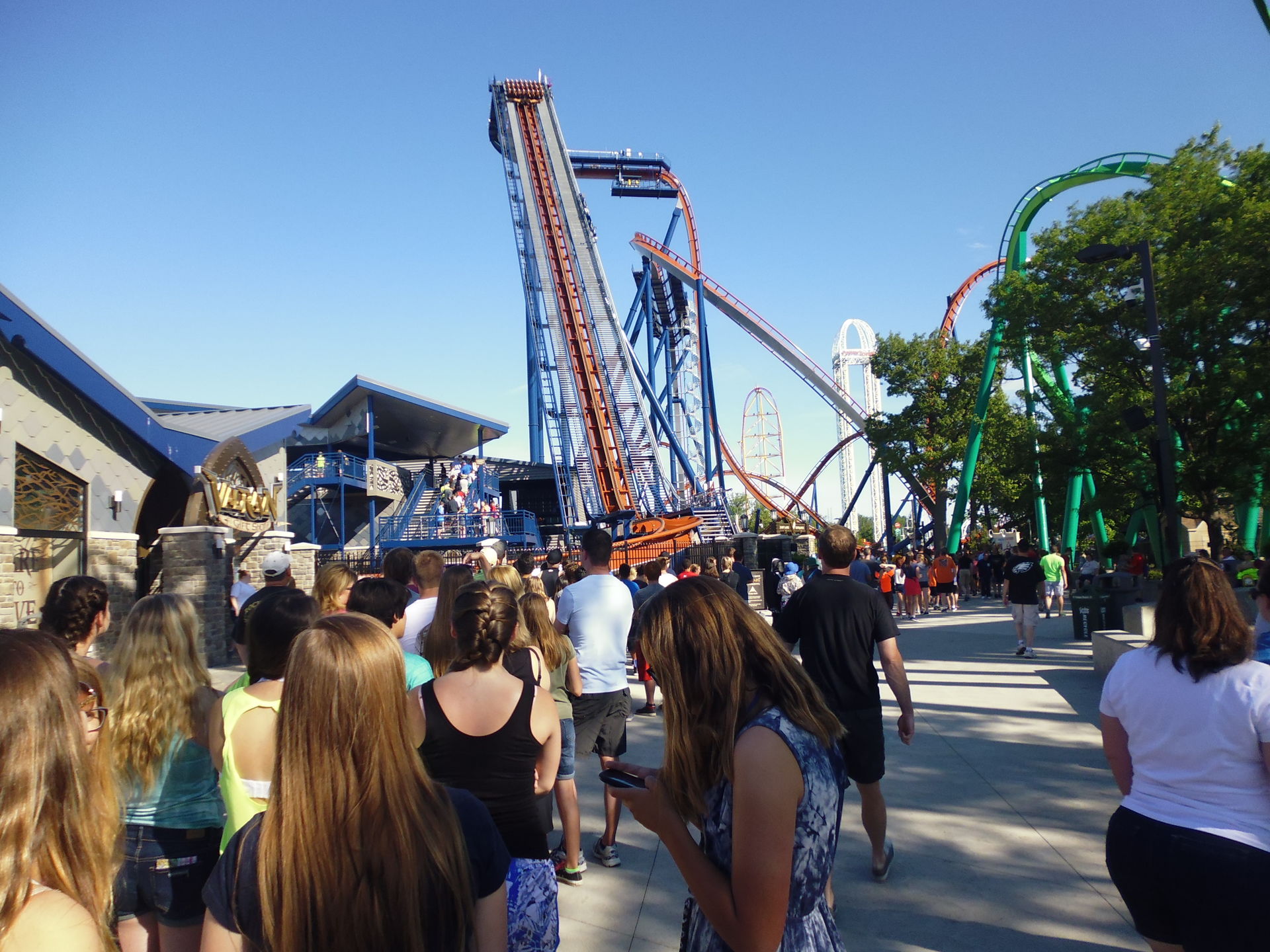 Tatsache ist: eine Neuheit wie Valravn zieht selbst in Cedar Point ein Gros der Besuchermassen von anderen Top-Bahnen ab. Bei einer dritten Fahrt am frühen Nachmittag betrug die Wartezeit überschaubare 35 Minuten, mit einem kleinen Single-Rider-Bonus versteht sich. Das hätte man vom Erfahrungsschatz früherer Besuche her wohl nicht geglaubt, wenn mans nicht live gesehen hätte, erst recht nicht an einem Wochenende.