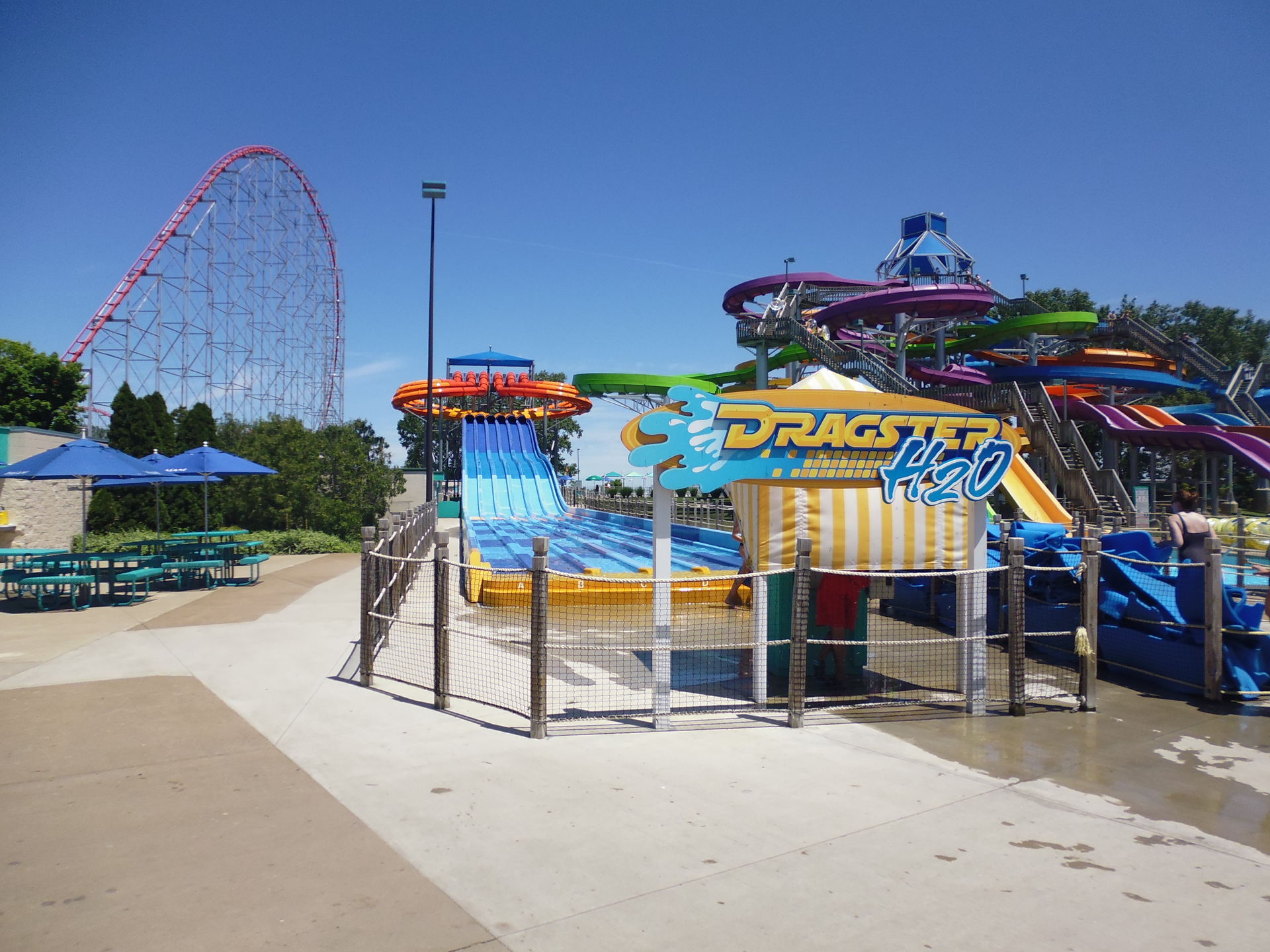 Da die Warte- und Fahrzeit bei Valravn doch etwas Early-Entry-Vorteil verschlungen haben, brach ich etwa gegen 09.45 Uhr zum letzten noch fehlenden grossen Coaster im Park auf, zum Top Thrill Dragster! Um dort zu den ersten in der immer langen Schlange zu gehören, wenn die Anlage um 10.00 Uhr dann zusammen mit dem Restpark fürs reguläre Publikum aufmachen würde.