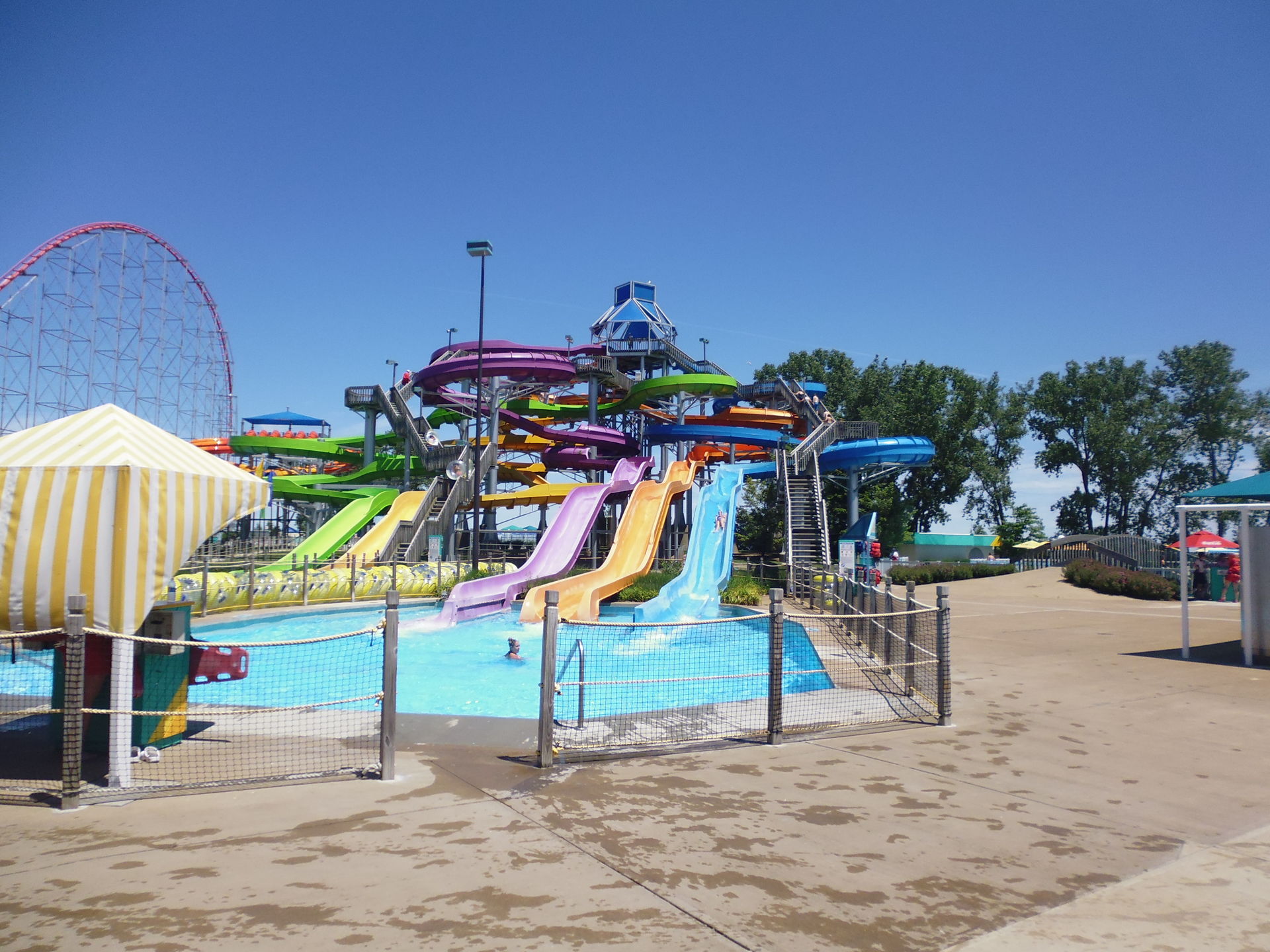 - machte ich mich tagesfertig, frühstückte lecker und war kurz darauf auch schon wieder unterwegs. 45 Minuten Fahrstrecke bis zum heutigen Ziel wollten noch vor 09.00 Uhr überwunden sein. Natürlich ahnen die geneigten Freaks, dass ich pünktlich zum durch den Platinum Season Pass ermöglichten Early Entry auf einem gewissen Wasserpark-Stellplatz sein musste. Die Rede ist selbstverständlich vom Soak-City-Parkplatz und von Cedar Point - mein inzwischen dritter Besuch an diesem Pilgerort aller Coasterenthusiasten würde die nächsten eineinhalb Tage auf dem Reiseprogramm stehen, dessen Erlebnisse ich nun in einen weiteren Mammut-Bericht zu packen versuche. Was aufgrund der mehrere Word-Seiten einnehmenden Tagebuch-Notizen und der auch nach grober Filterung immer noch überbordenden Fotoflut kein leichtes Unterfangen wird.