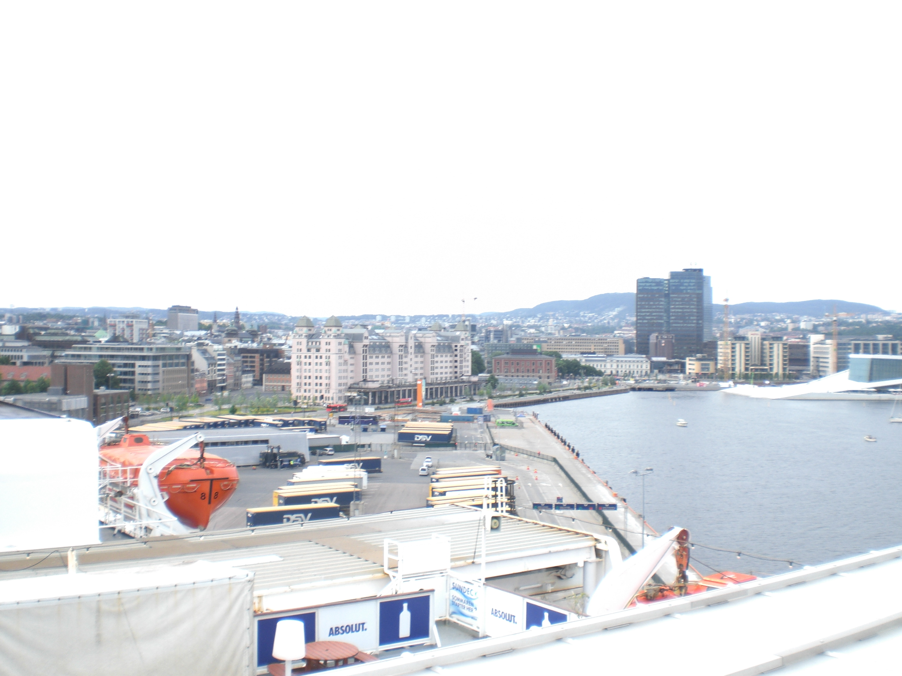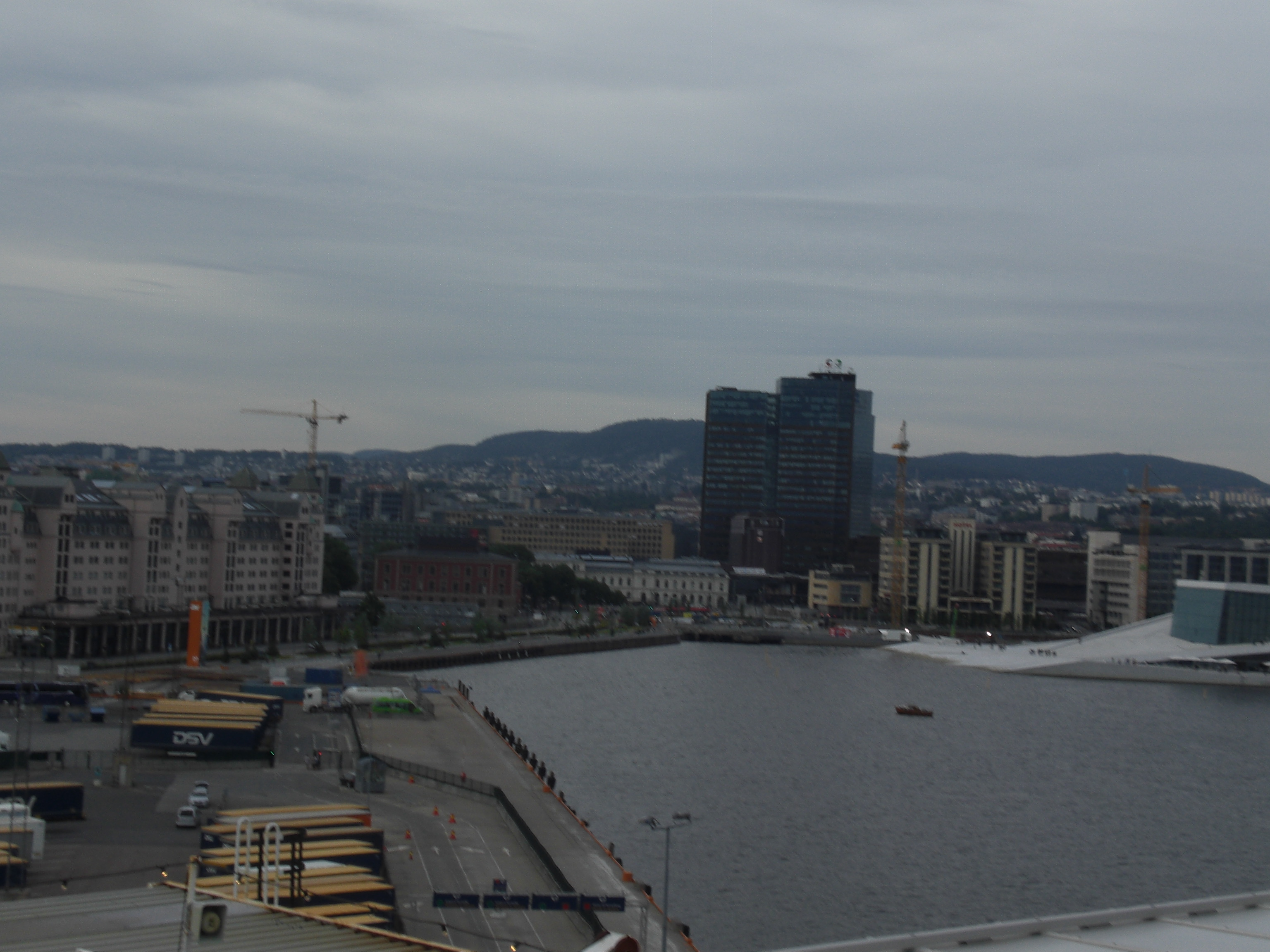 Etwas früher ging es weiter, denn wir mussten noch pünktlich am Osloer Hafen für die nächtliche Fährtüberfahrt nach Dänemark ankommen. Das wurde auch mit genügend Zeitpuffer geschafft und wir konnten oben vom Deck eine prima Aussicht von der riesigen Stena Line werfen. Diese nutzte ich für ein paar Bilder, ich zeige mal die paar wenigen, die noch etwas geworden sind: