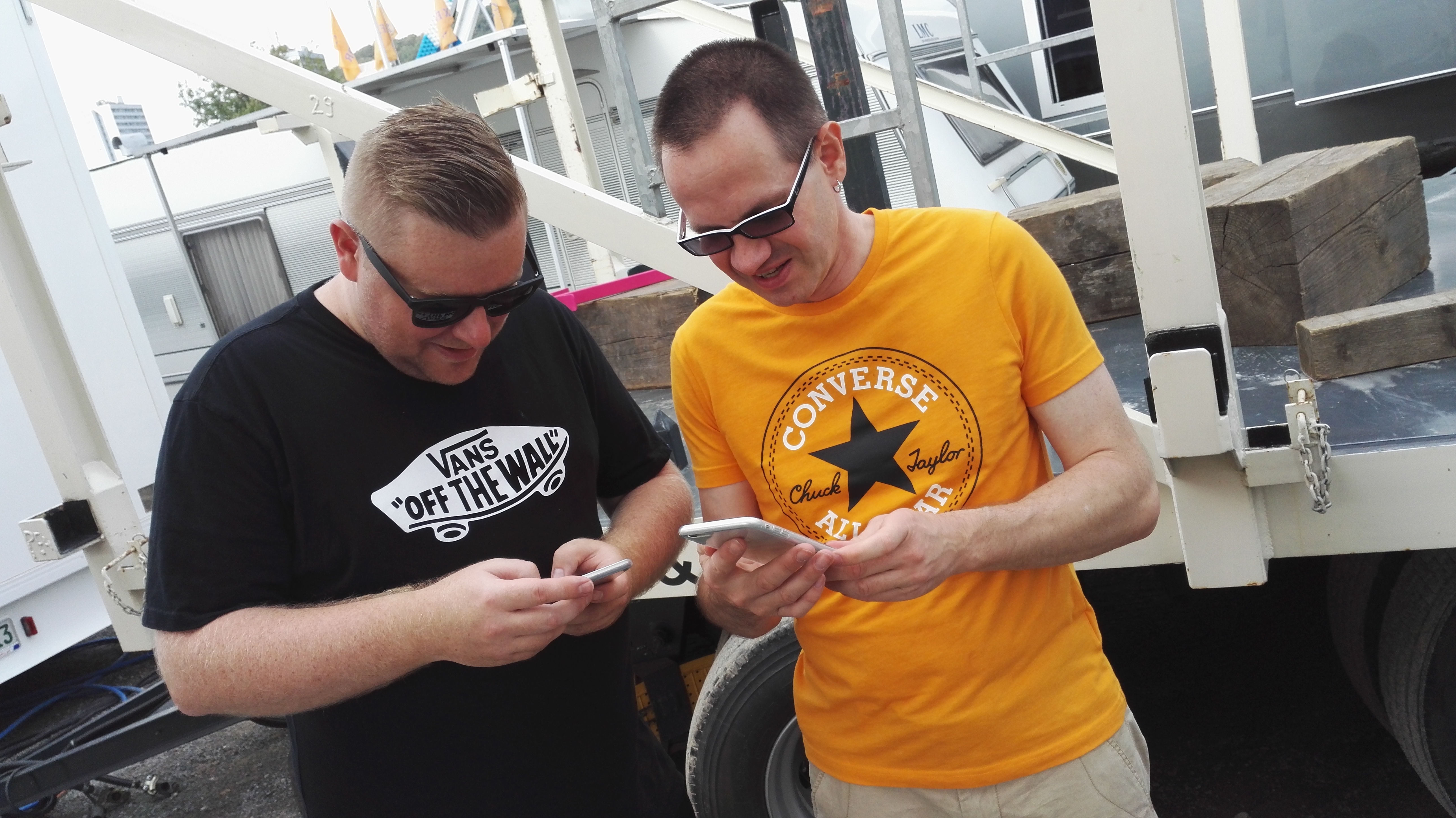 Volker ist schon wieder am IPhonen-statt-beim-in-die-Kamera-grinsen.