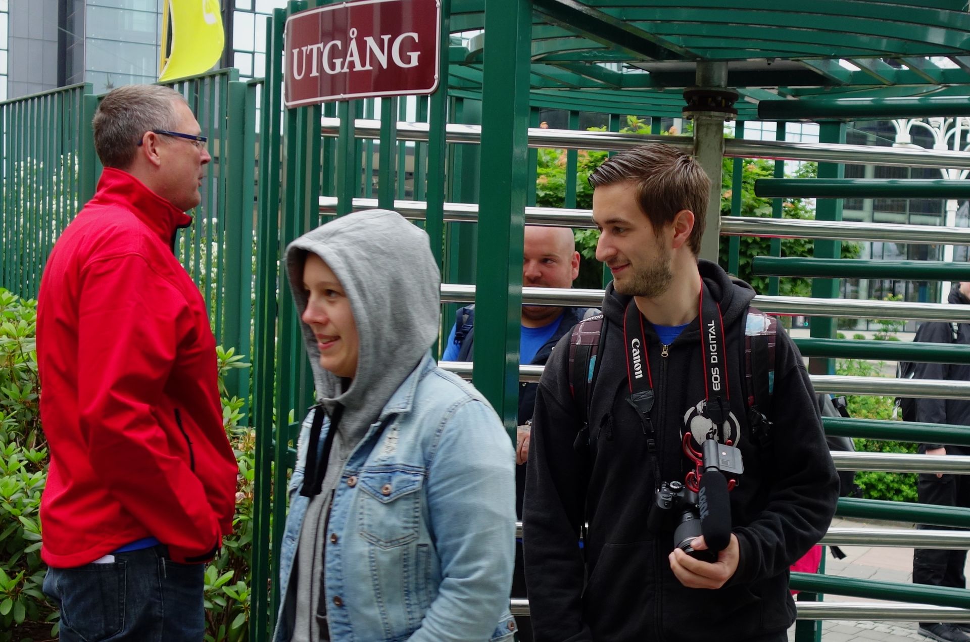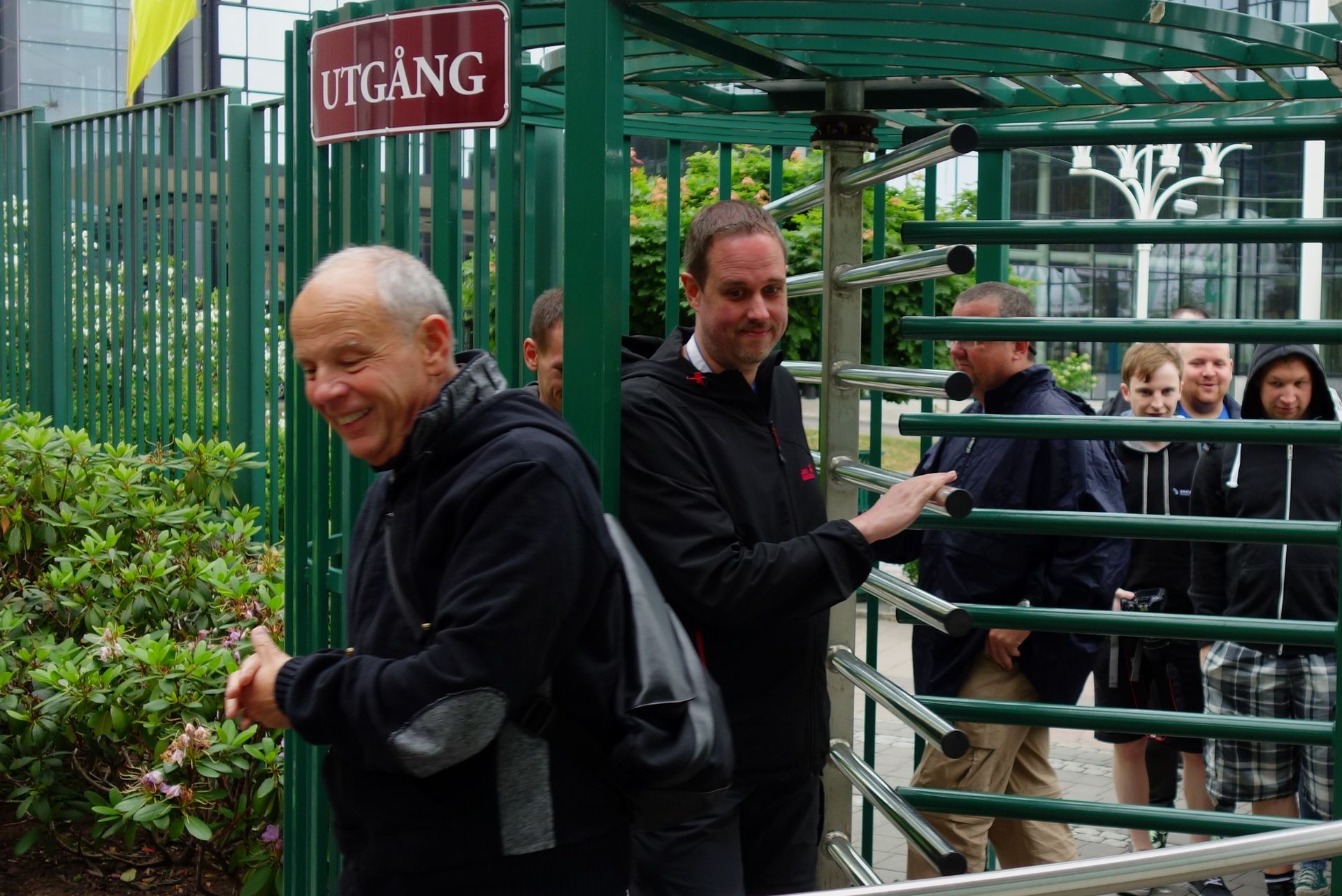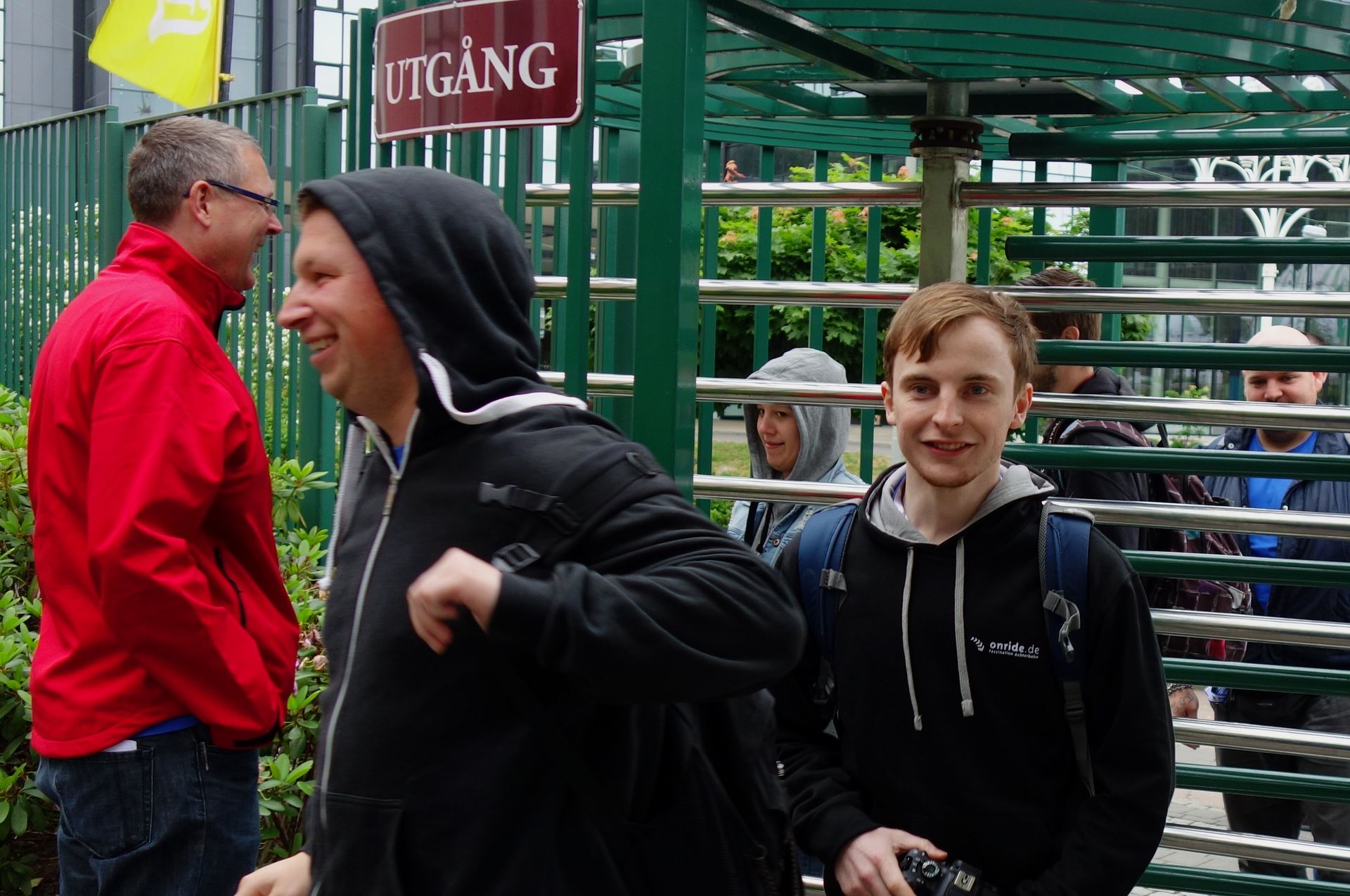 Da wir doch recht früh waren, nutzten einige von uns die Zeit für einen Abstecher zu den benachbarten Gothia Towers, wo nach der langen Fahrt nun die sanitären Einrichtungen getestet werden mussten. Wieder komplett wurden wir auch hier freundlichst begrüßt, ehe man uns durch die entriegelte Ausgangsdrehtür in den 1923 anlässlich der Weltausstellung in Göteborg eröffneten Park ließ. Da ich ja sonst eher selten Personen ablichte, folgt an dieser Stelle mal eine Bilderserie mit Onridern. Leider nur jene, die nach mir den Park betraten, aber das waren auch schon ein paar. Sollte ich bei den Namen gepatzt haben, so bitte ich vielmals um Vergebung. Mein Namensgedächtnis ist nicht das beste und ein paar musste ich zugegebenermaßen über den Abgleich mit Profilbildern zuordnen...