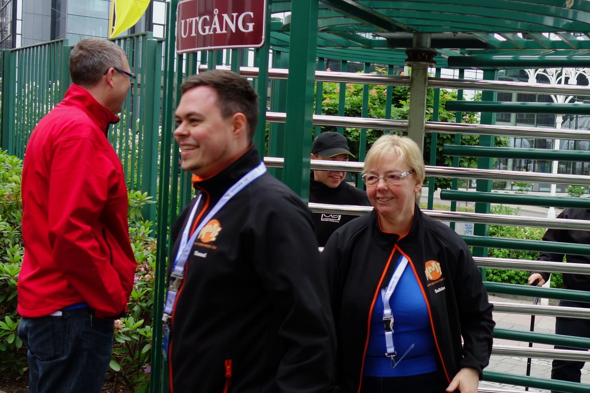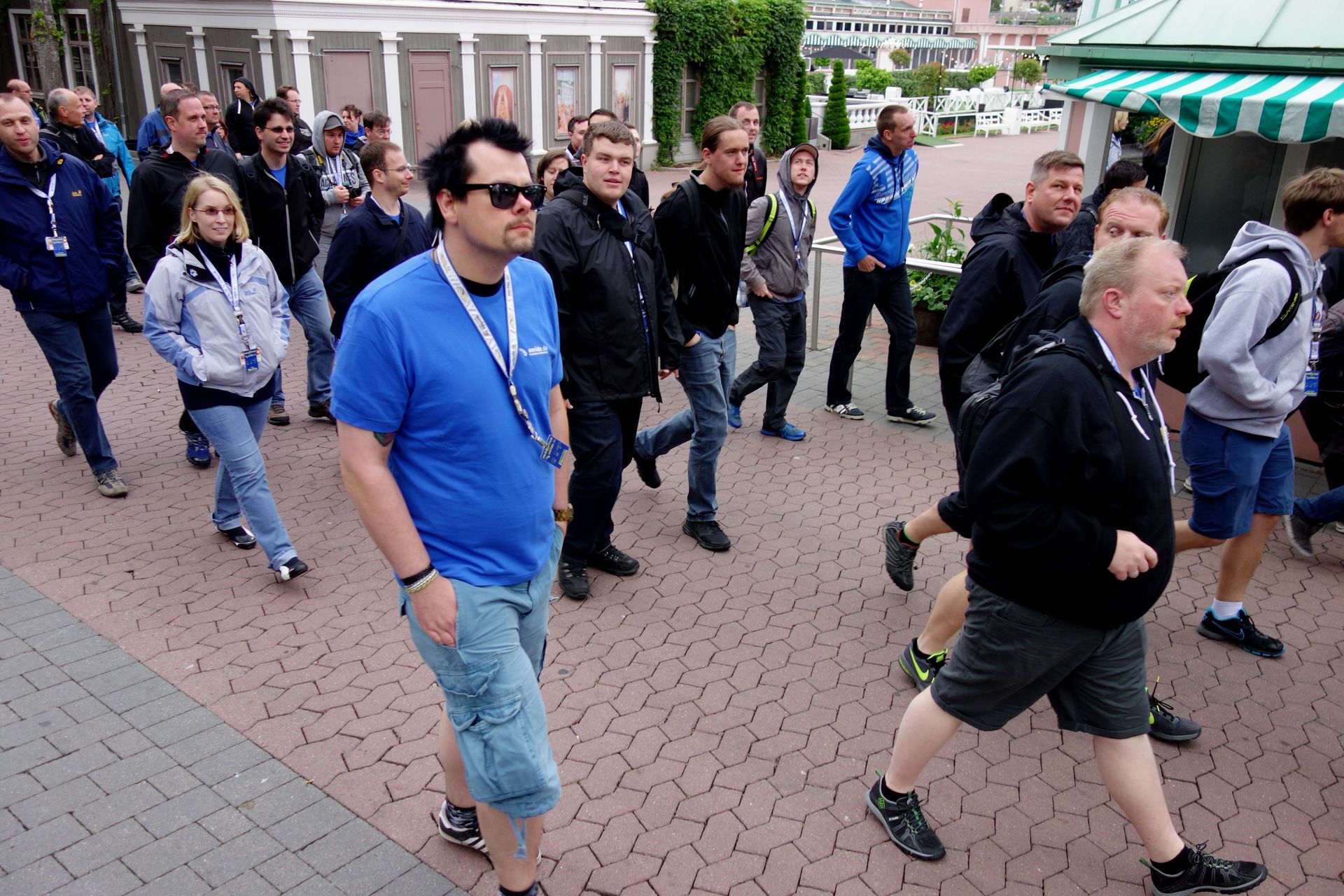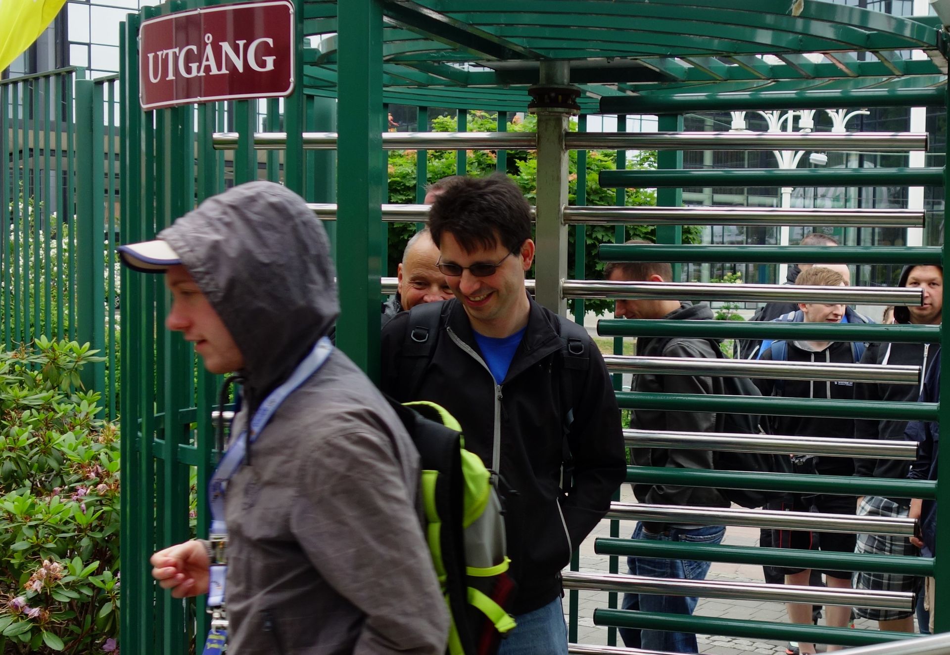 Da wir doch recht früh waren, nutzten einige von uns die Zeit für einen Abstecher zu den benachbarten Gothia Towers, wo nach der langen Fahrt nun die sanitären Einrichtungen getestet werden mussten. Wieder komplett wurden wir auch hier freundlichst begrüßt, ehe man uns durch die entriegelte Ausgangsdrehtür in den 1923 anlässlich der Weltausstellung in Göteborg eröffneten Park ließ. Da ich ja sonst eher selten Personen ablichte, folgt an dieser Stelle mal eine Bilderserie mit Onridern. Leider nur jene, die nach mir den Park betraten, aber das waren auch schon ein paar. Sollte ich bei den Namen gepatzt haben, so bitte ich vielmals um Vergebung. Mein Namensgedächtnis ist nicht das beste und ein paar musste ich zugegebenermaßen über den Abgleich mit Profilbildern zuordnen...