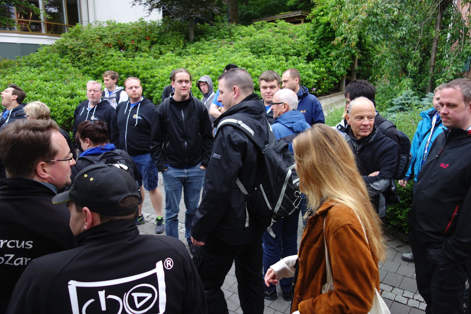 Wie man auf den Bildern sieht, trauten sich nur wenige, das an diesem Tag zur Pflicht erklärte Onride-Shirt auch zu zeigen. Das Wetter machte uns leider einen großen Strich durch den T-Shirt-Day, denn es war nicht nur schmuddelig, sondern auch vergleichsweise kühl. So erblickten die nagelneuen Shirts nur während des Gruppenfotos und später beim gemeinsamen Mittagessen das Tageslicht. Am Nachmittag wurden viele sogar komplett abgelegt, da wir zum Einchecken und Koffer verstauen ins Hotel mussten, und dabei auch gleich etwas wärmeres überziehen konnten. Sehr schade, zumal die Überlegung eines zweiten T-Shirt-Days nicht umgesetzt wurden.