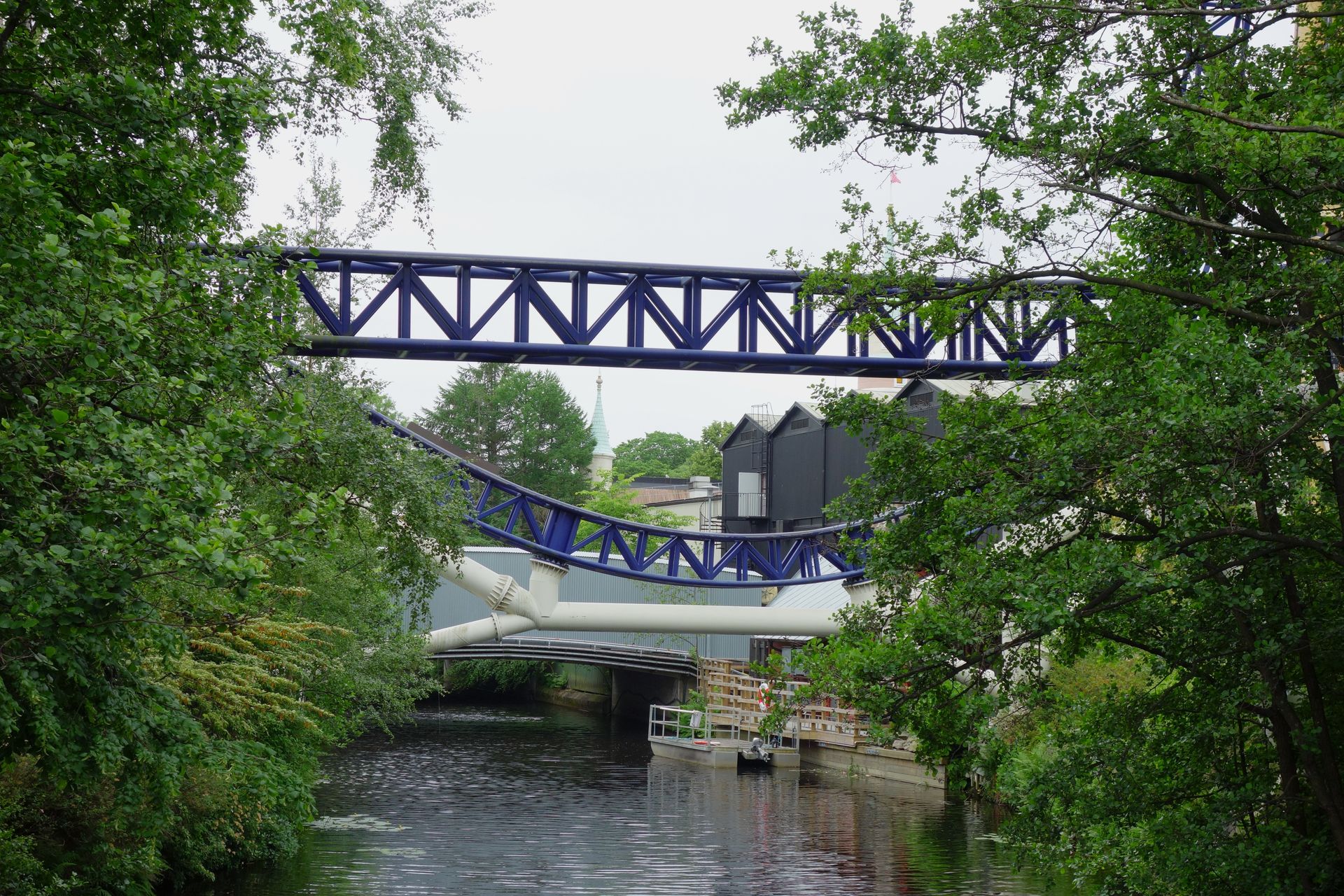 Der Weg führt direkt unter der zweieinhalbfachen Helix der Lisebergbanan hindurch.