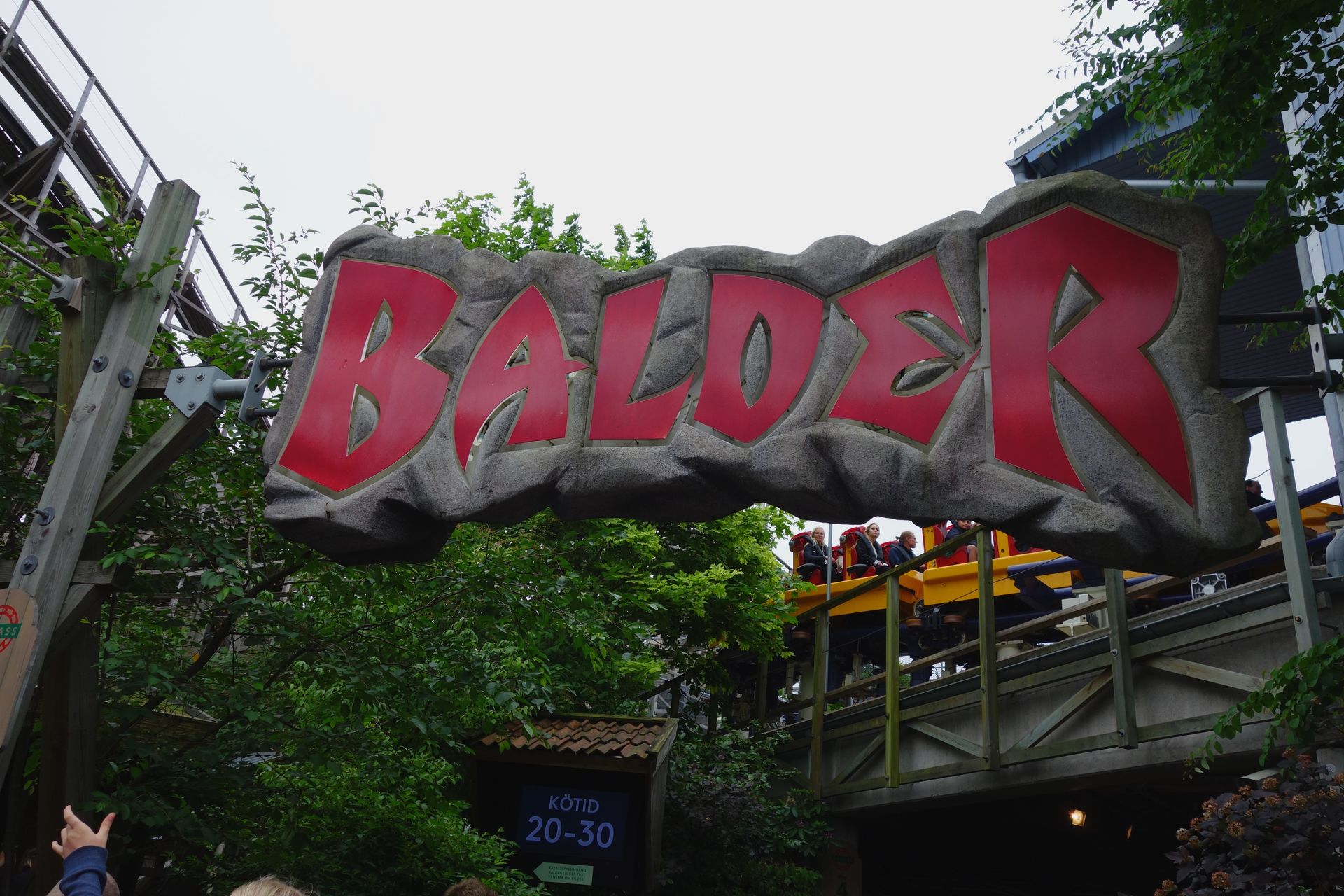 Benannt ist die Bahn nach dem germanischen Gott Balder, Sohn von Odin und Frigg. Anders als bei der nach seinem Vater benannten Bahn im Europa Park fällt die Thematisierung hier allerdings etwas spärlicher aus. Und auch die Fahrt kommt in der Gesamtbetrachtung leider nicht an Wodan heran. Die beginnt mit einer langsamen Kurve zum Lifthill, in der ein einzelnes Reibrad den Zug leicht abbremst und an die Geschwindigkeit des Kettenlifts anpasst. Bei unseren Fahrten am Morgen stets begleitet von einem gut hörbaren Quietschen, das im Laufe der ERT aber bereits immer kürzer und leiser wurde. Hat man dann den höchsten Punkt der Bahn in 36 Metern erreicht, geht es in einer gegen Ende stark gebankten Wendekurve in den