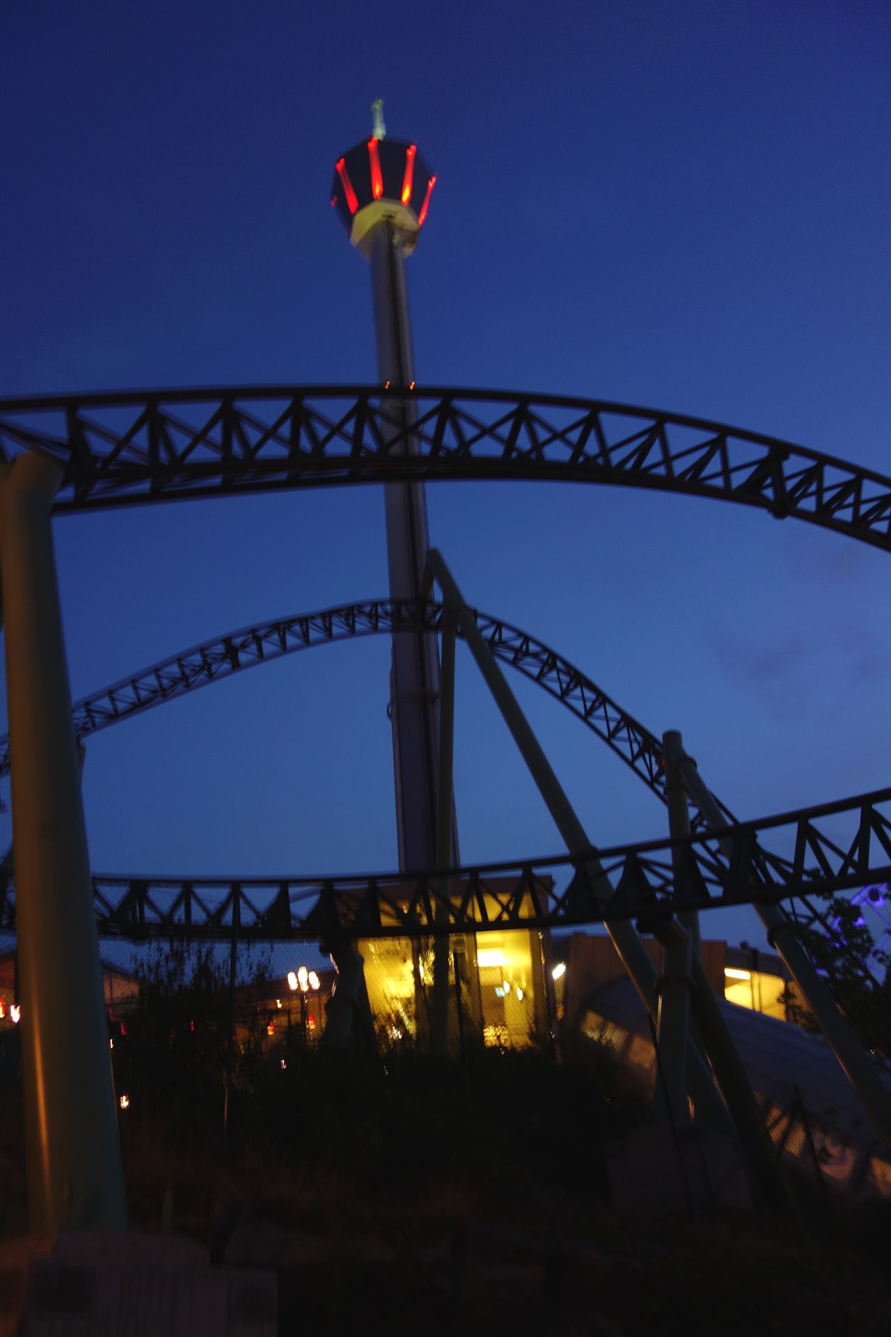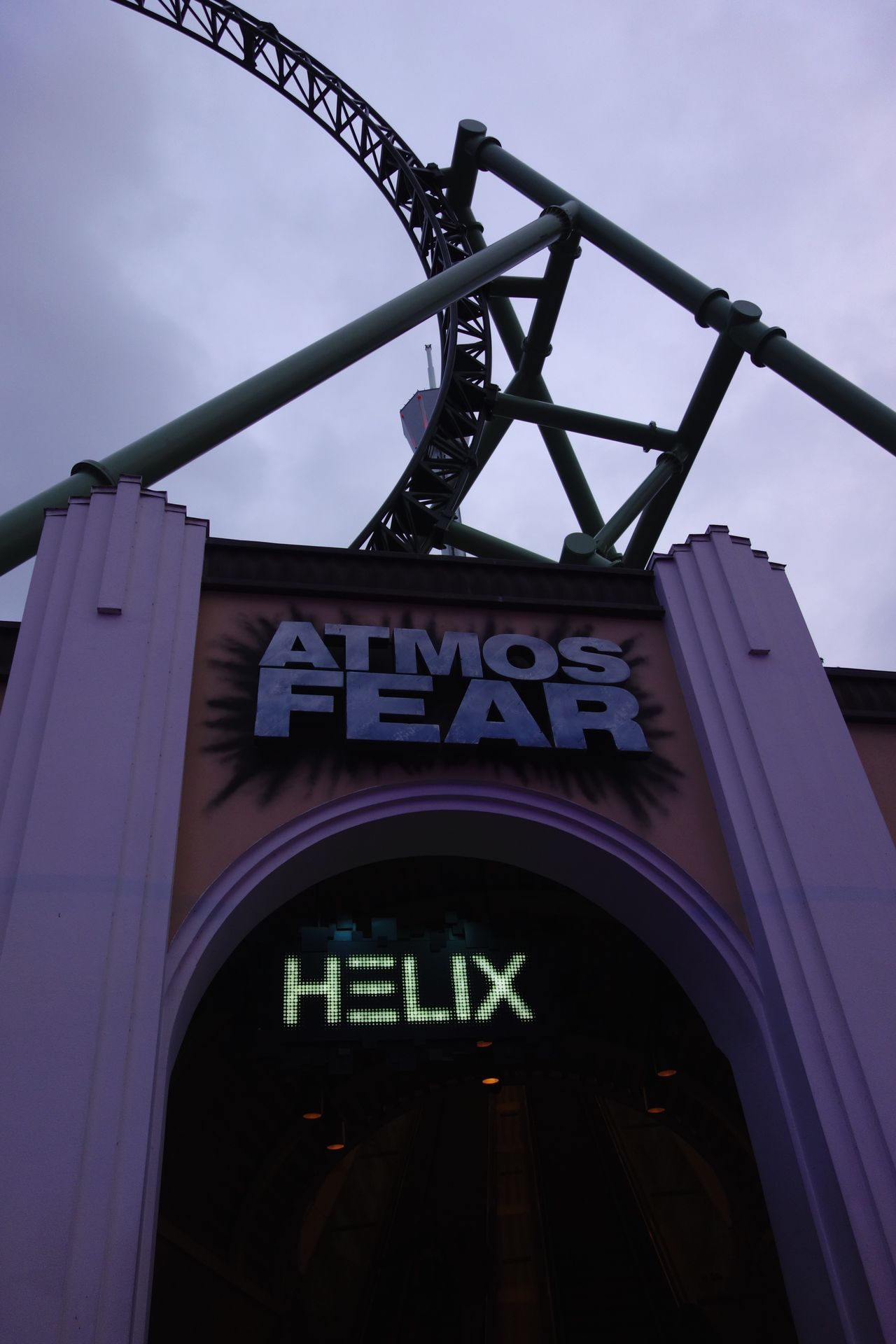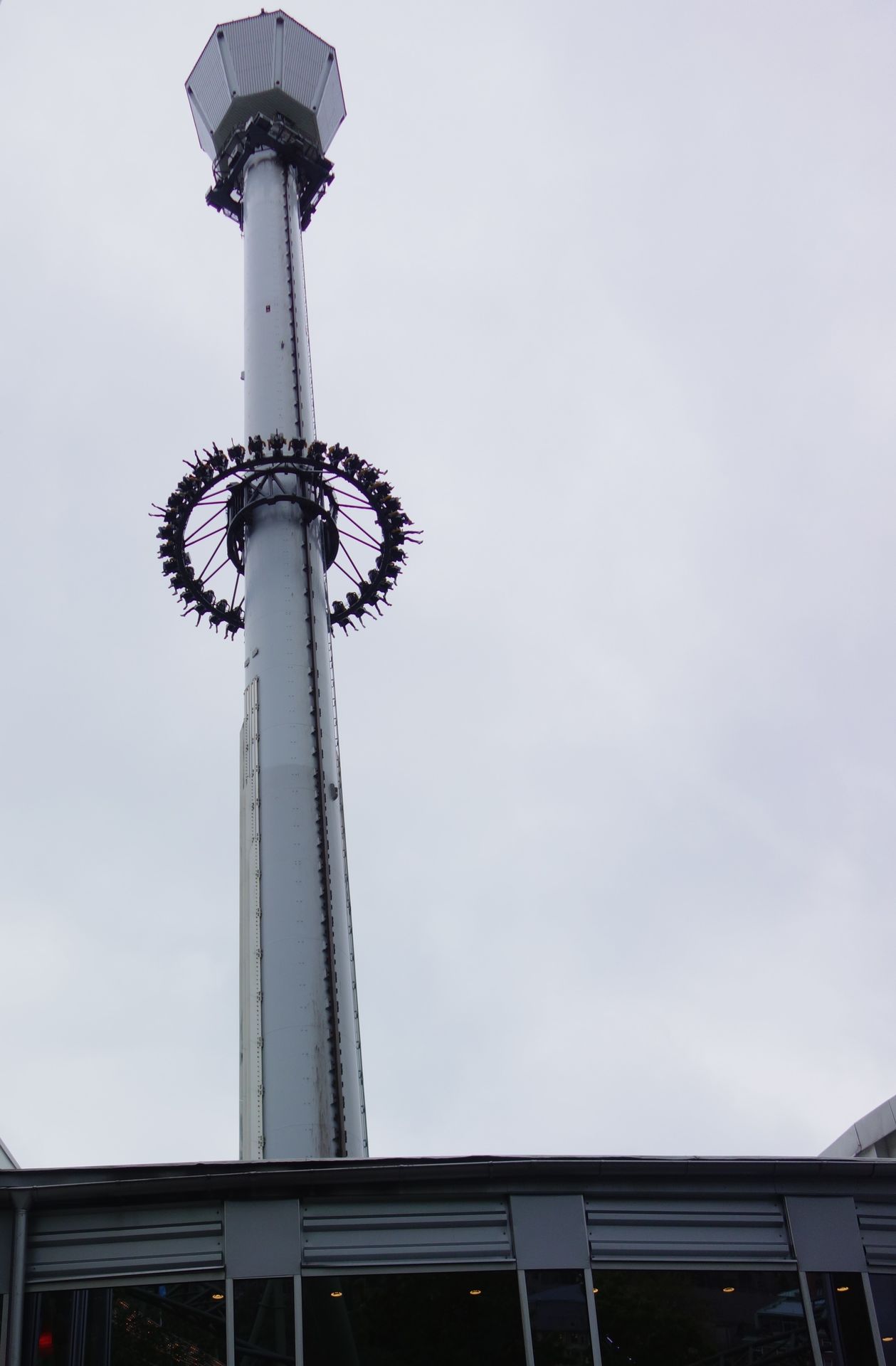 Per Rolltreppe fuhren wir noch eine Ebene weiter hinauf, zum Freifallturm und zur Station von Helix.