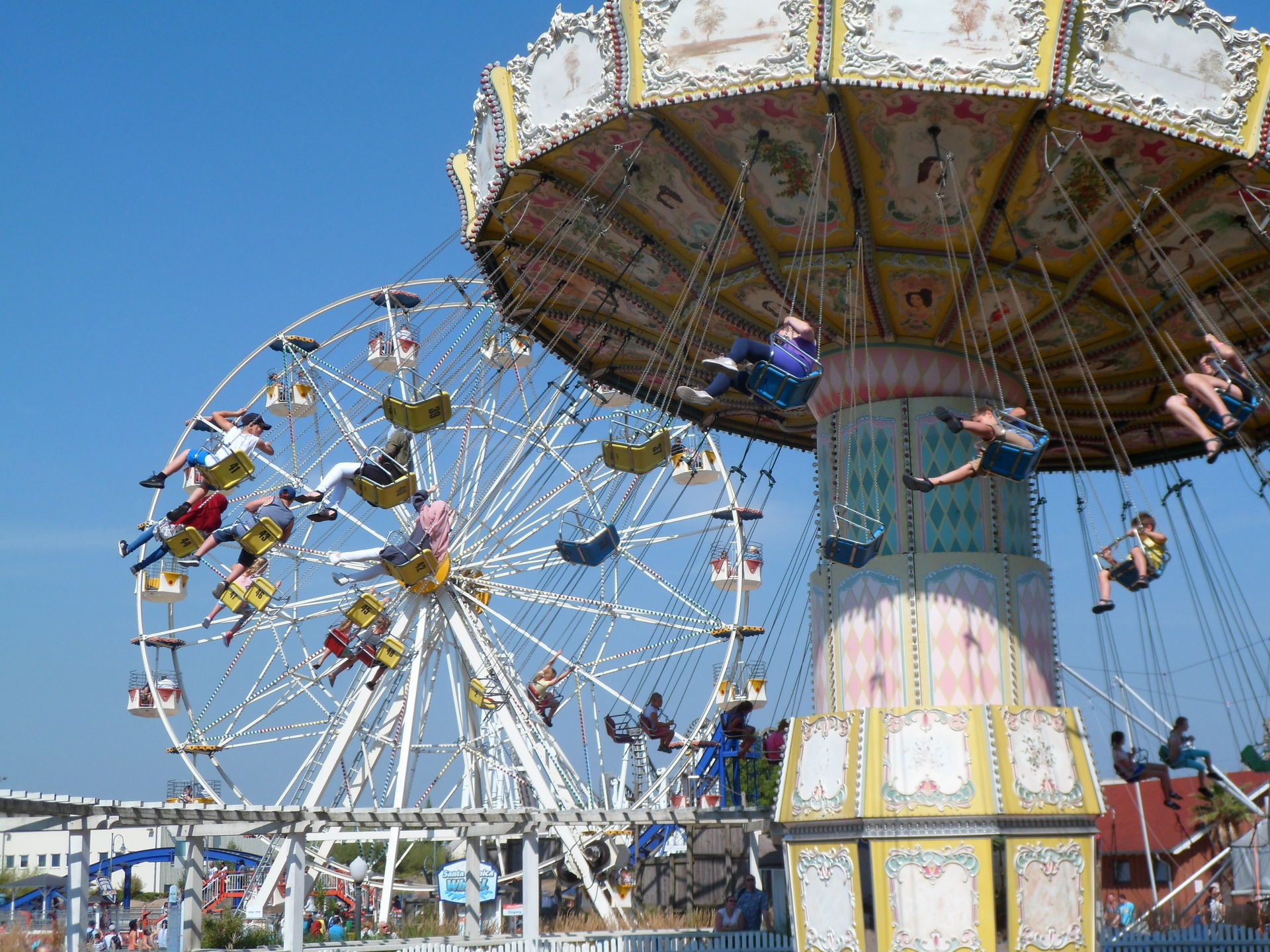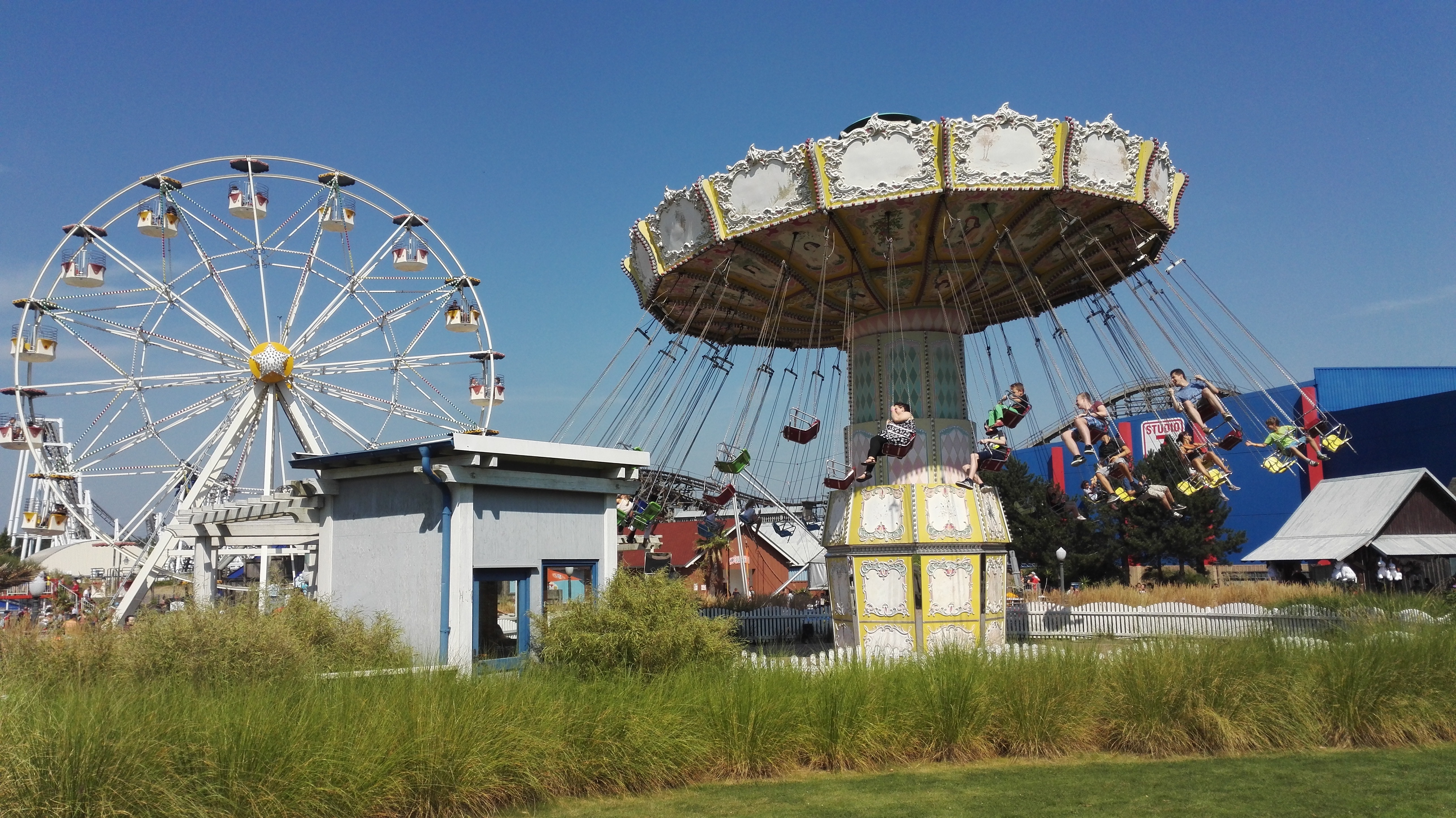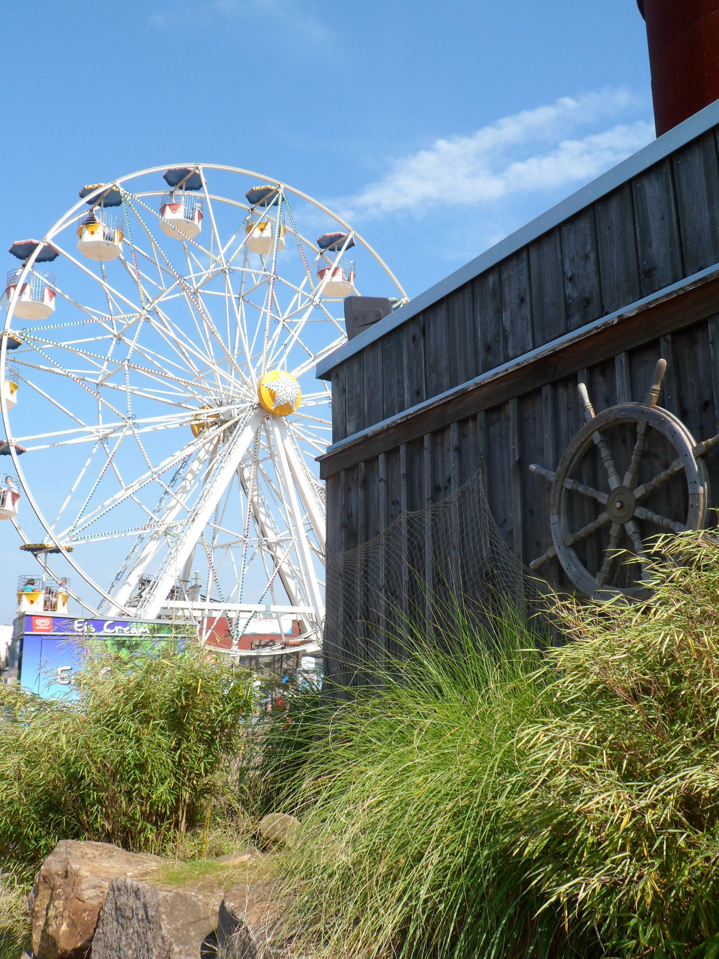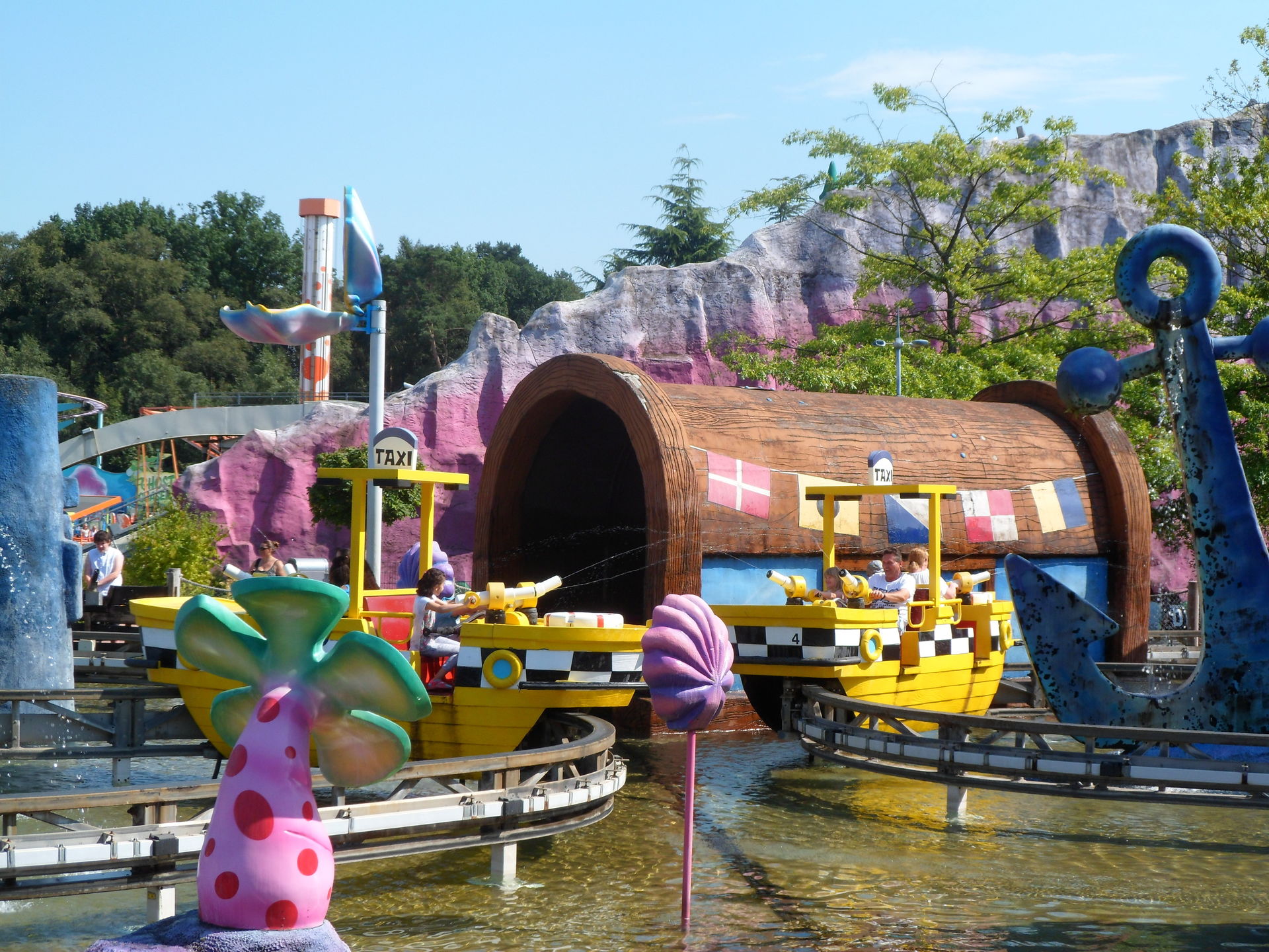 Mit Kaffee, Kakao, gefüllter Brezel und herrlichem Cone Cake mit Schokoladenfüllung gestärkt sollte der Tag mit einer Fahrt auf Bandit beginnen. Aber Bandit sollte erst um 11 Uhr eröffnen, so dass wir zum Pier gingen und feststellten, dass das Jet-Ski Karussell auf Mitfahrer wartete. So entschieden wir uns spontan für eine Rundfahrt auf dem See und wurden vom Ride-op freundlich begrüßt und eingewiesen. Weil nach dem spaßigen Ritt über die Wellen noch immer niemand in der Warteschlange stand, durften wir uns noch über eine zweite Runde freuen. Daumen hoch für meinen Mitarbeiter des Tages.