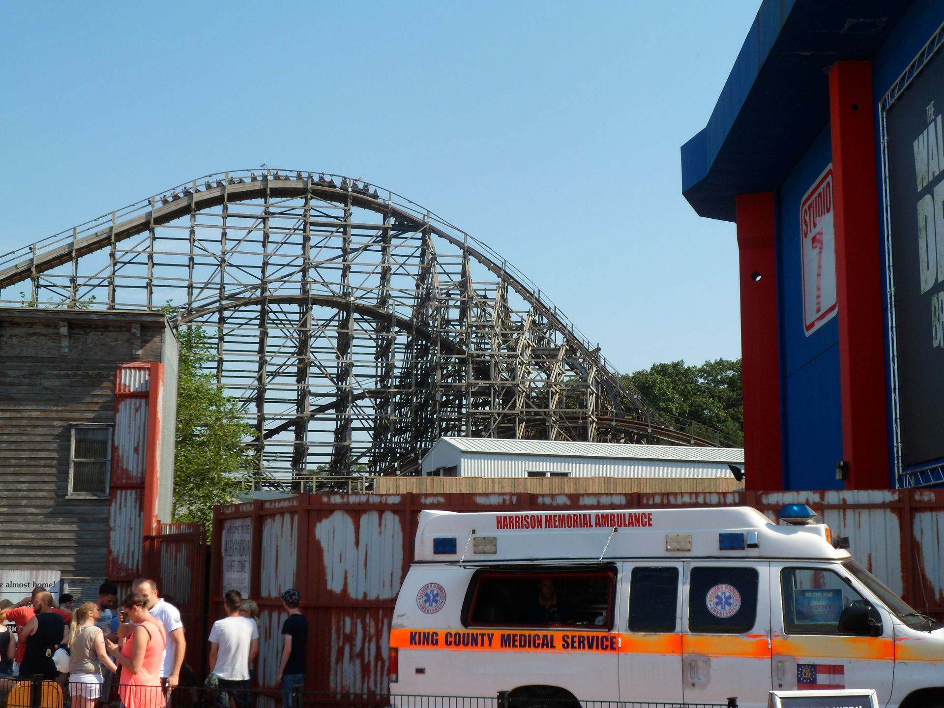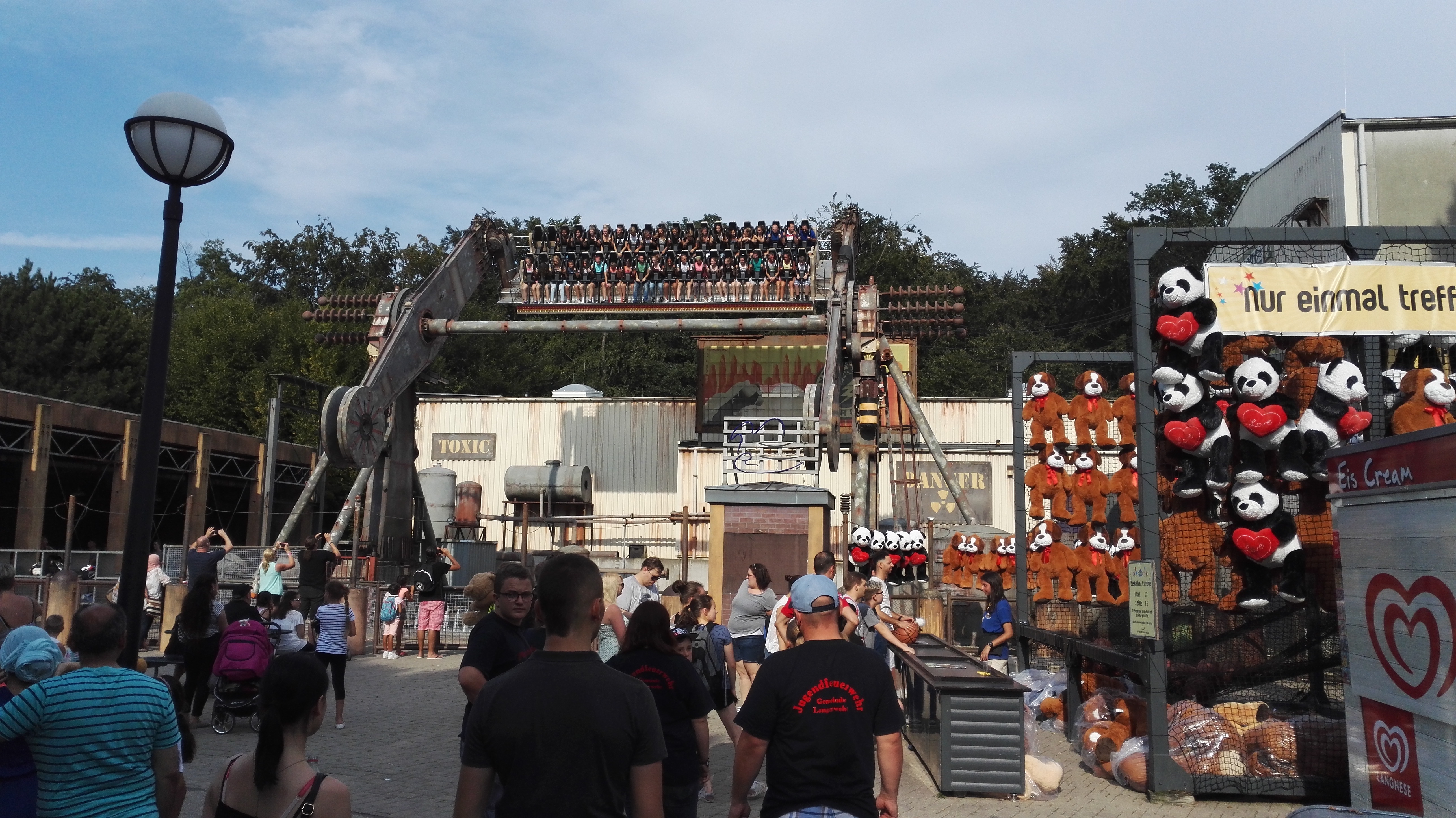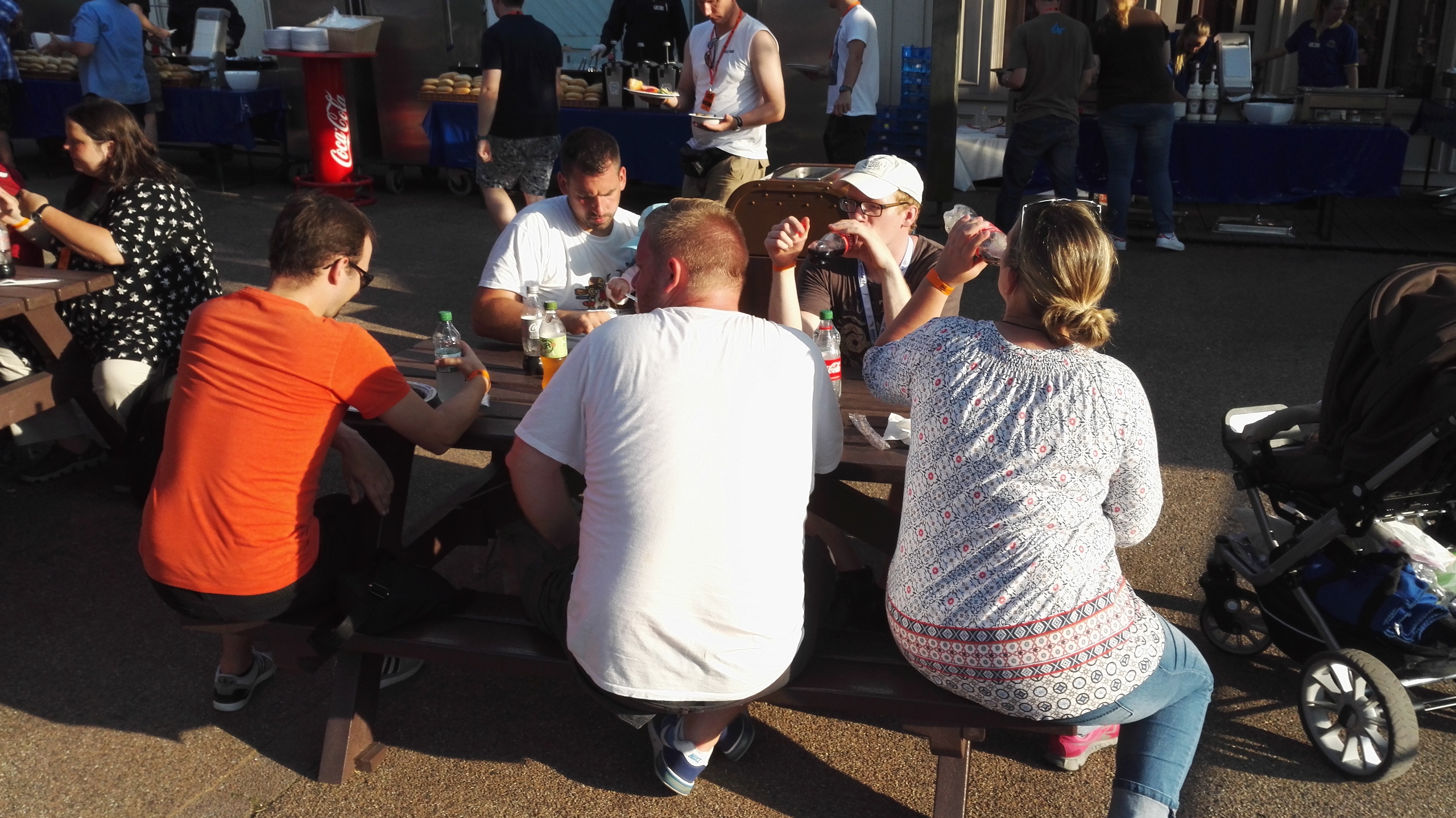 Das anschließende BBQ war super organisiert, sehr lecker und bot reichlich Auswahl auch an gekühlten Getränken. Respekt und großen Dank an die Mitarbeiter am Grill, die für uns sicher gelitten haben und auch an die Servicekräfte. Währenddessen konnte man eine ERT auf High Fall, dem Frisbee und dem Wellenflieger nutzen und außerdem stand noch die Backstageführung durch Walking Dead Breakout auf dem Programm.