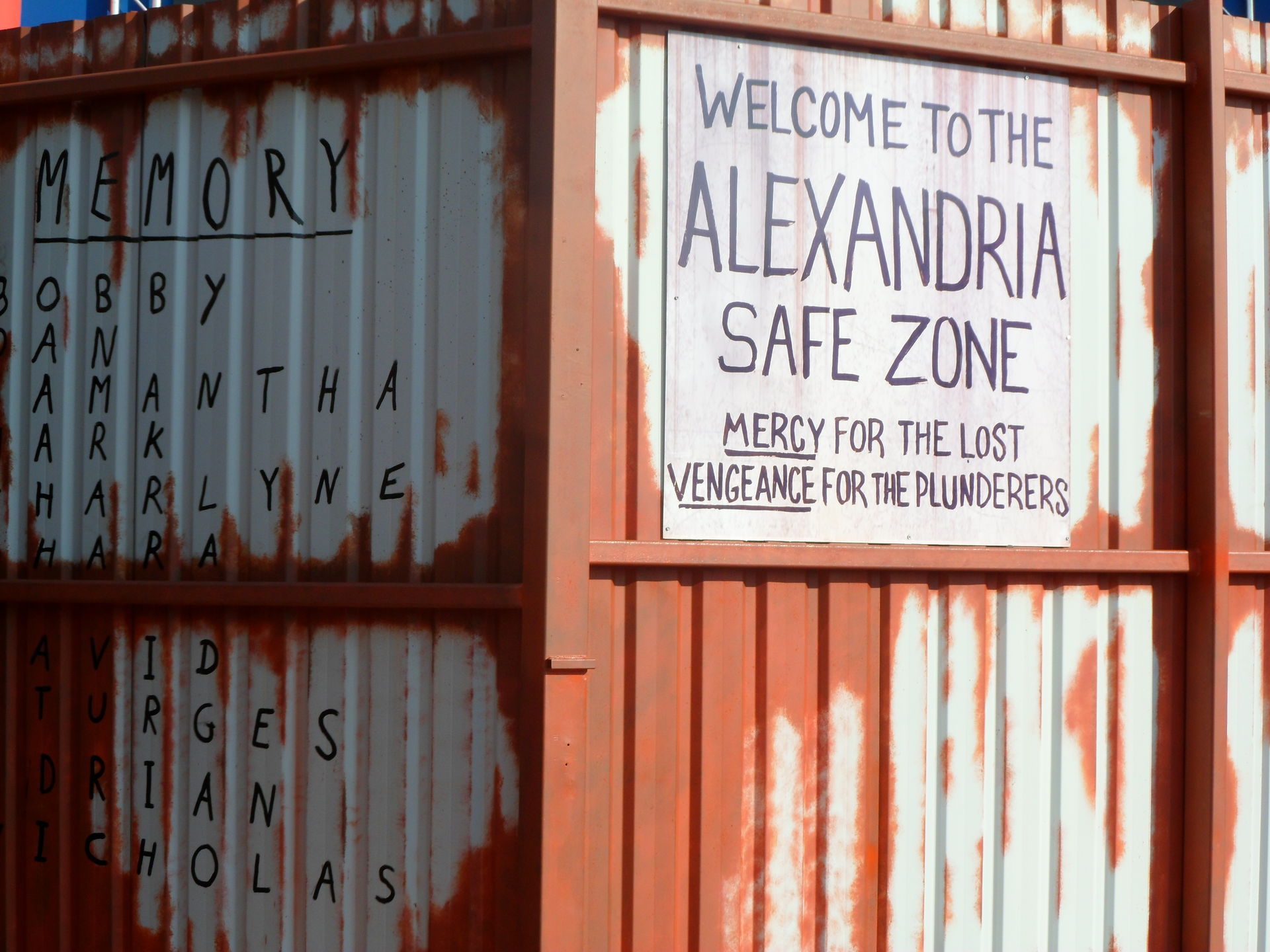 Meine persönliche Mutprobe. Ich hatte die Teilnahme an dem Programmpunkt nicht geplant, konnte aber einen übriggebliebenen Platz übernehmen, entschied mich kurzfristig auf angebotene Begleitung und seelischen Beistand zu vertrauen und wartete mit erhöhtem Herzschlag auf den Einlass. So sehr ich mich davor fürchte erschreckt zu werden, bin ich mindestens ebenso großer Fan der Serie. Auf dem Weg durch die Container der Alexandria Safe Zone hörte ich noch dämliche Sprüche über Schockeffekte und war zunehmend beunruhigt was sich erst im Gang des Gefängnisses etwas legte. Schon vor DER Krankenhaustür zu stehen war für mich aufregend im besten Sinne aber so richtig überwältigt, war ich dann in Terminus. Ein unbeschreibliches Gefühl erstmals die Kapelle zu sehen. Generell sind die einzelnen Räume sehr gut gelungen und auch wenn unser Backstageguide uns oft erklärte wie sehr AMC auf Detailtreue bestand und welche Schwierigkeiten damit verbunden waren, muss ich als Serienfan sagen, dass es sich gelohnt hat. Es hat mir richtig gut gefallen. Ich bin sehr froh die Gelegenheit für diesen Durchgang bekommen und genutzt zu haben. Danke an alle in dieser Gruppe, dass ihr mich nicht erschreckt habt. Und sollte so eine Situation noch einmal vorkommen: bitte auch nicht vor mir in dunklen Gängen an die Wände klopfen, wenn sich meine Herzfrequenz gerade etwas gesenkt hat