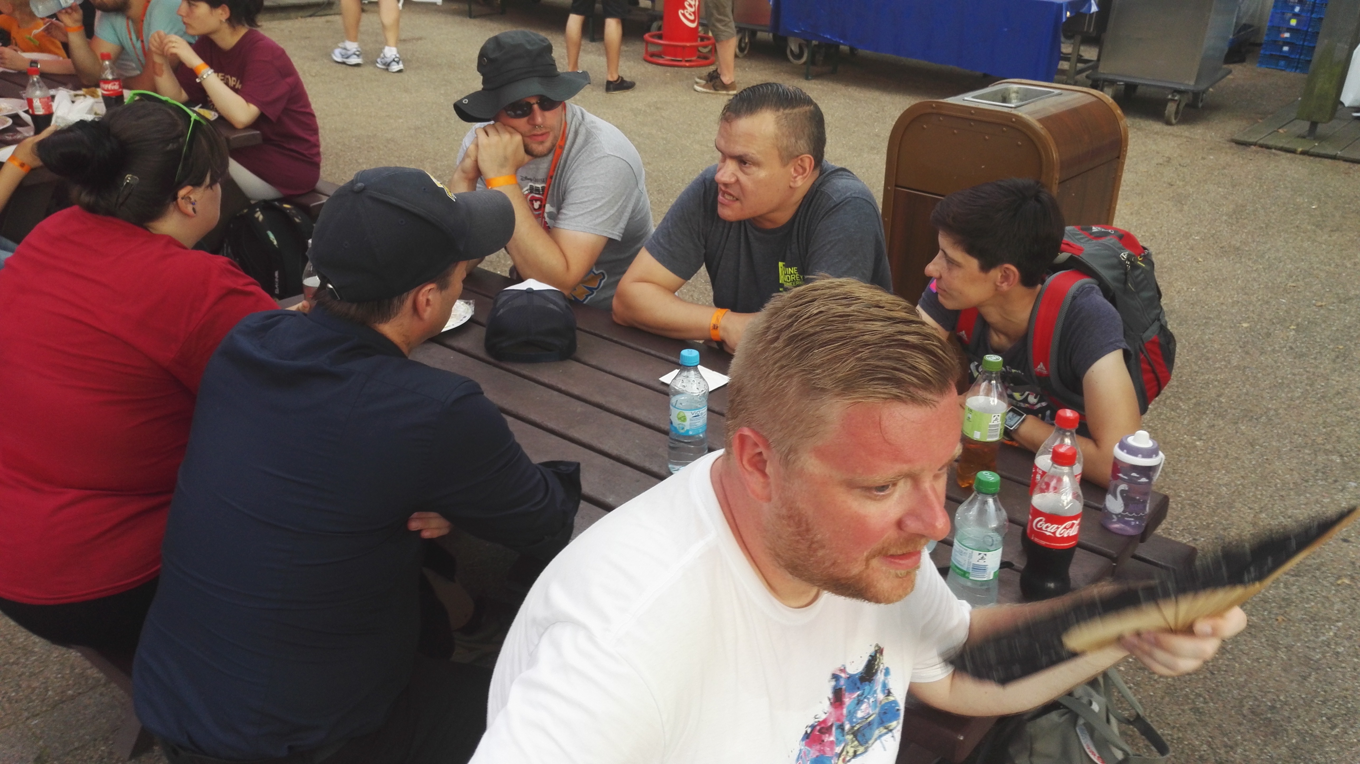 Gekühlt und mit Spirellos gestärkt gewann das RED Syndrom wieder die Oberhand und es dauerte eine Weile bis wir es aus dem Nickland raus und zumindest bis zur Kreuzung zu schaffen, wo wir interessante Gesprächspartner und kühle Plätze im Schatten gefunden und genutzt haben. Die Zeit der Zettel rückte näher, so dass wir Richtung Studio 7 aufbrachen wo ein Teil der Gruppe an der ERT bei Walking Dead Breakout teilgenommen hat. Ich konnte leider nicht mit, ich musste auf Carolin aufpassen.