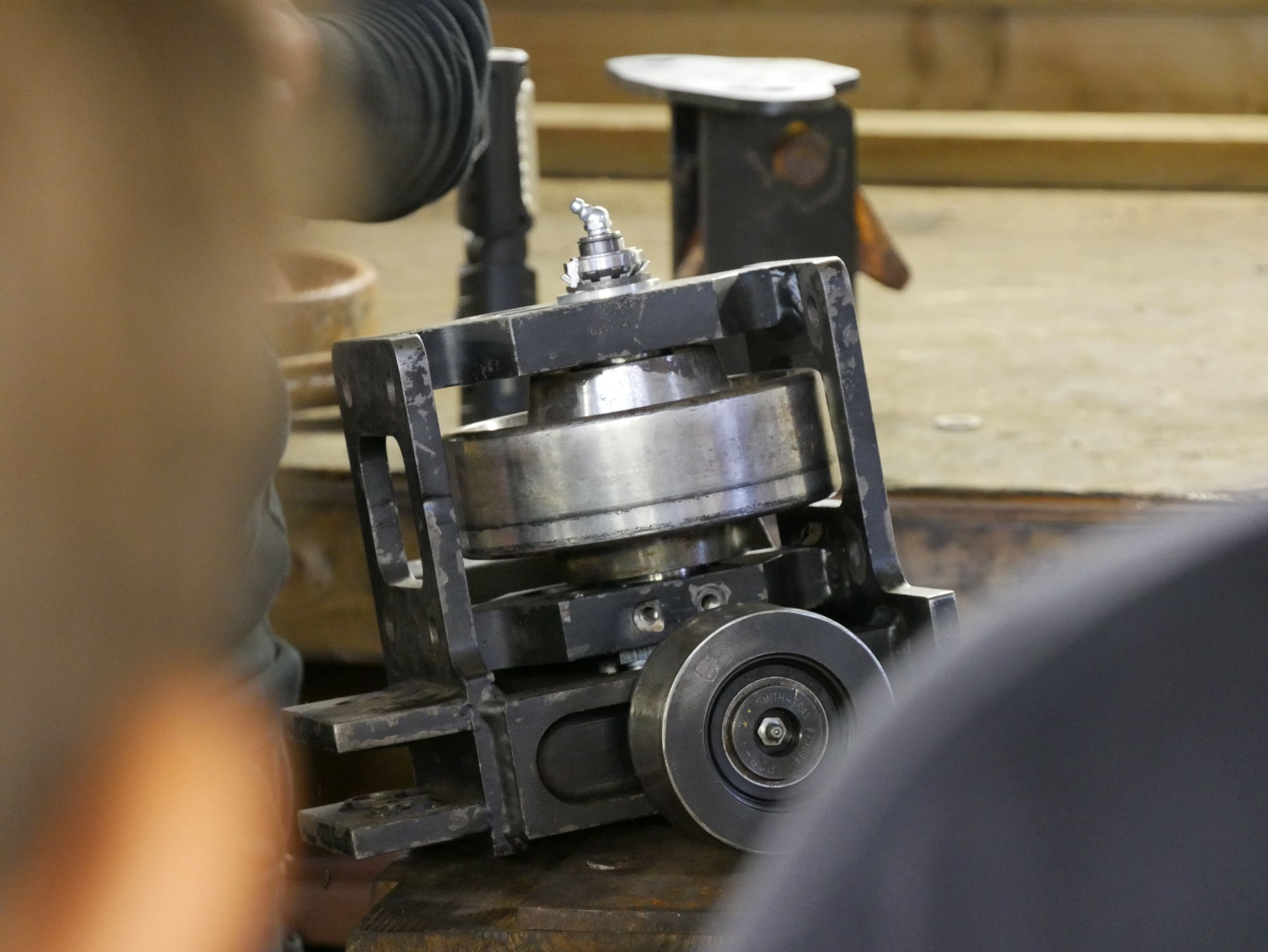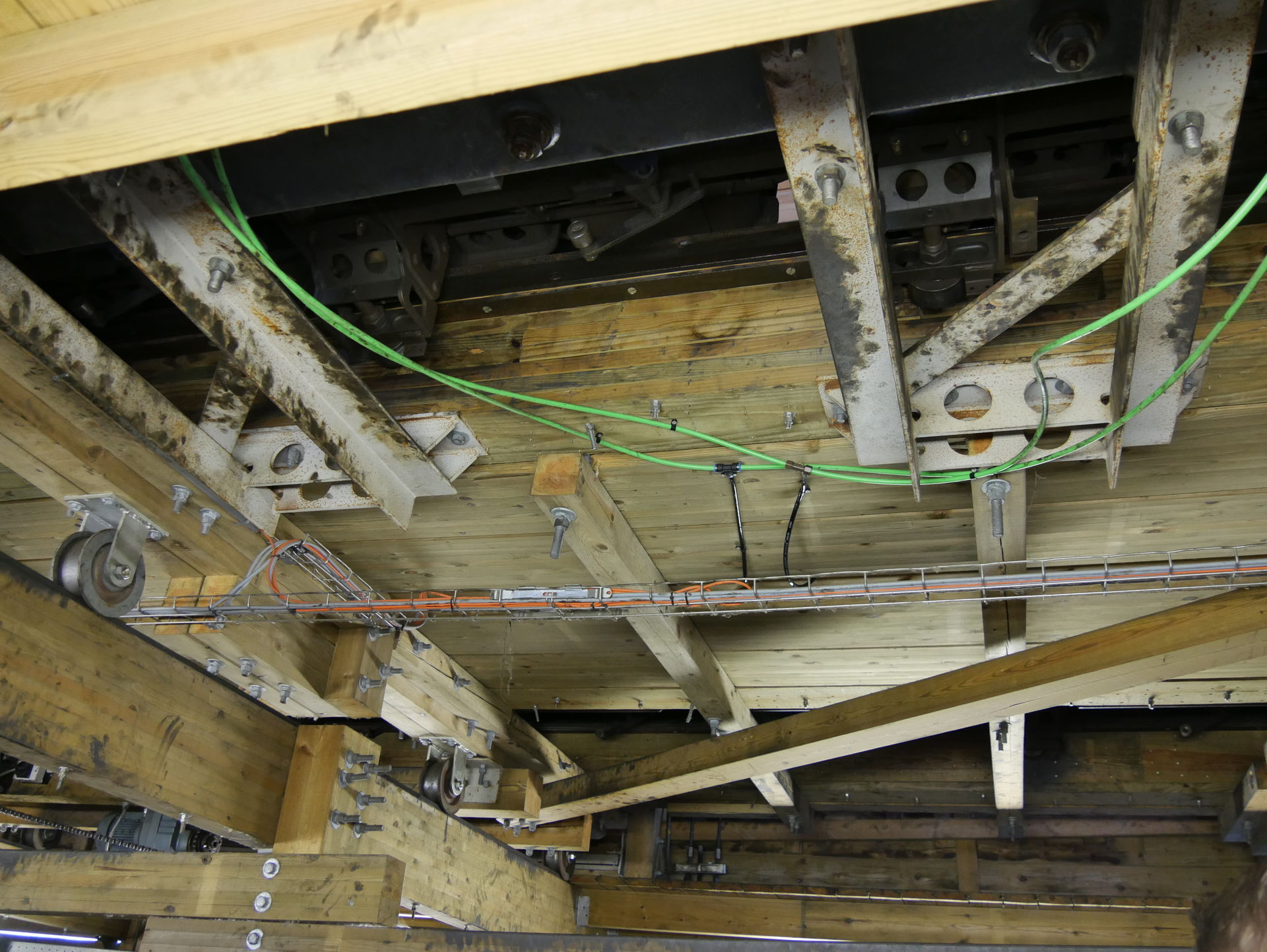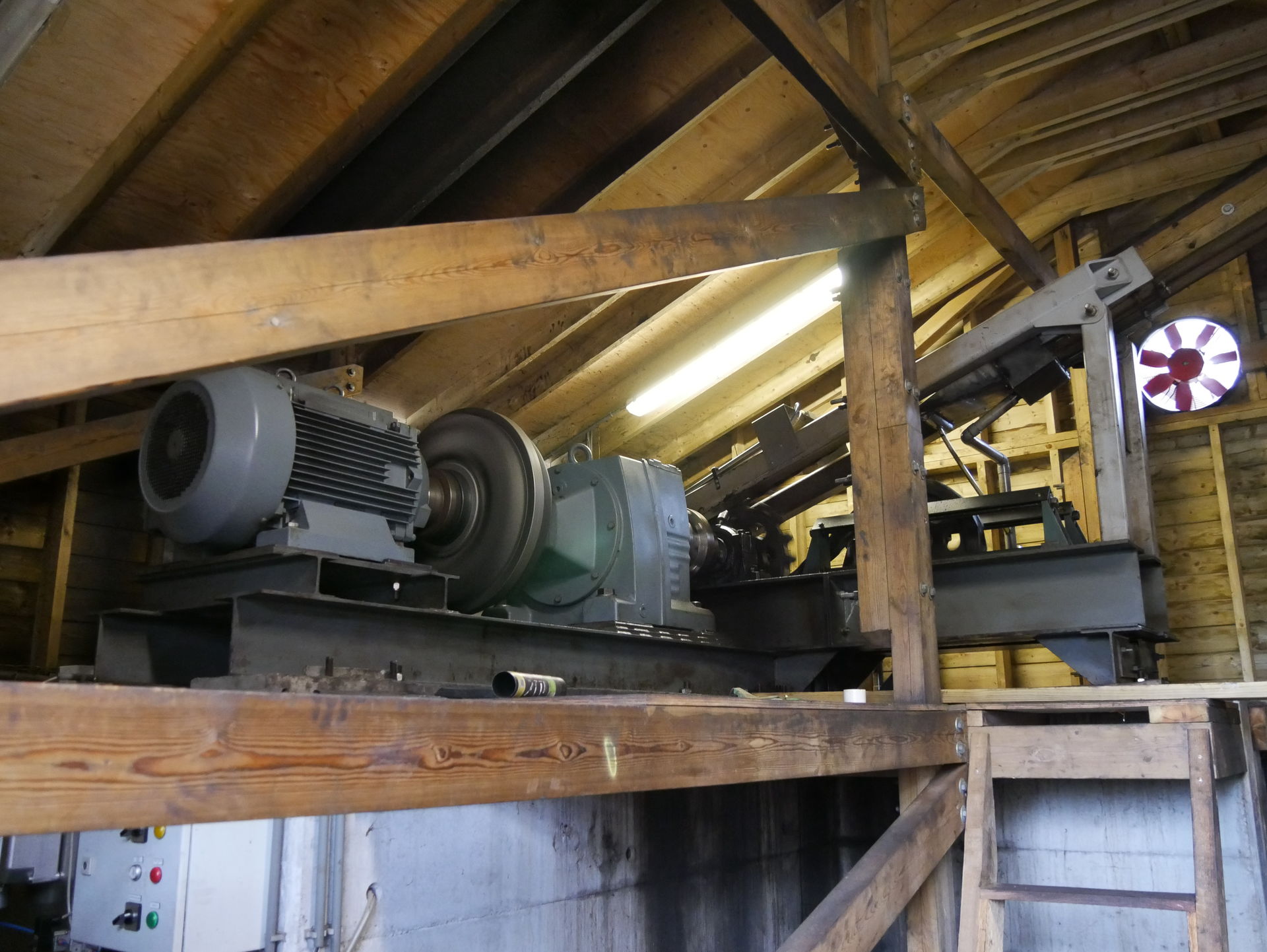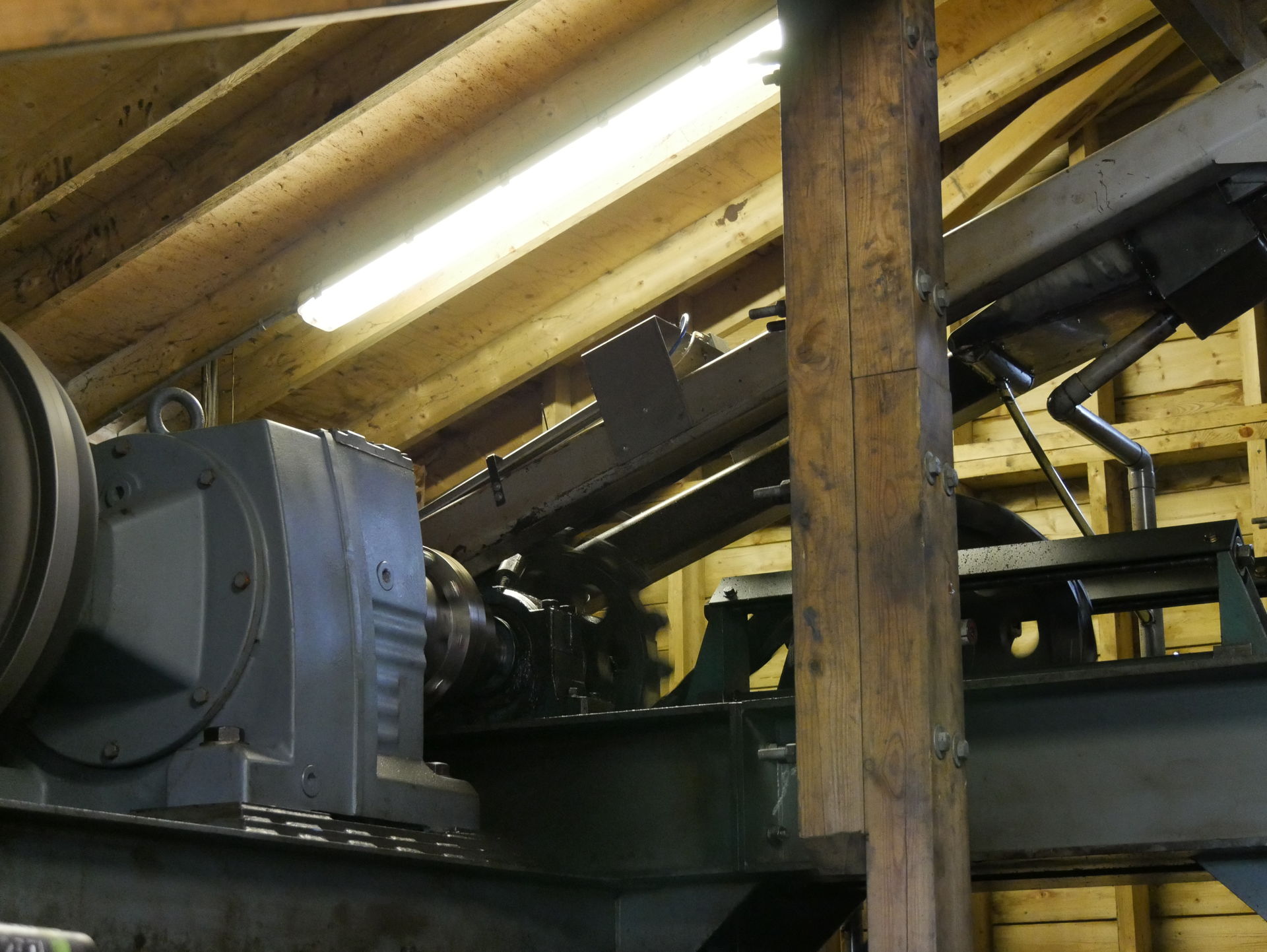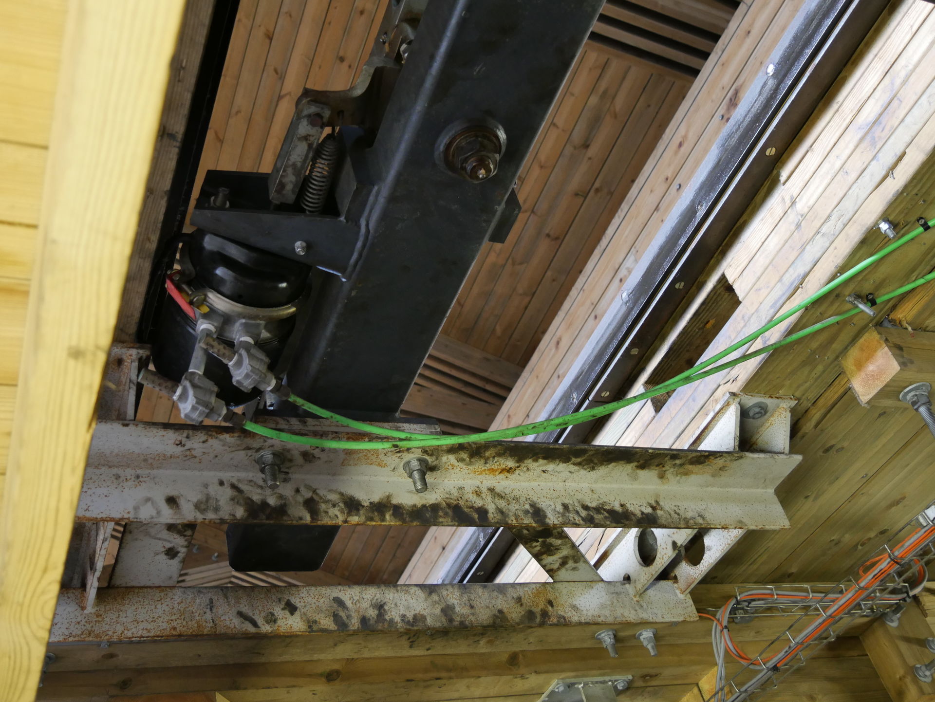Das ist der Kettenmotor, der kleiner ist als ich erwartet hätte. Immerhin muss dieser einen bis zu 10t schweren Zug (inkl. Beladung) hochziehen.