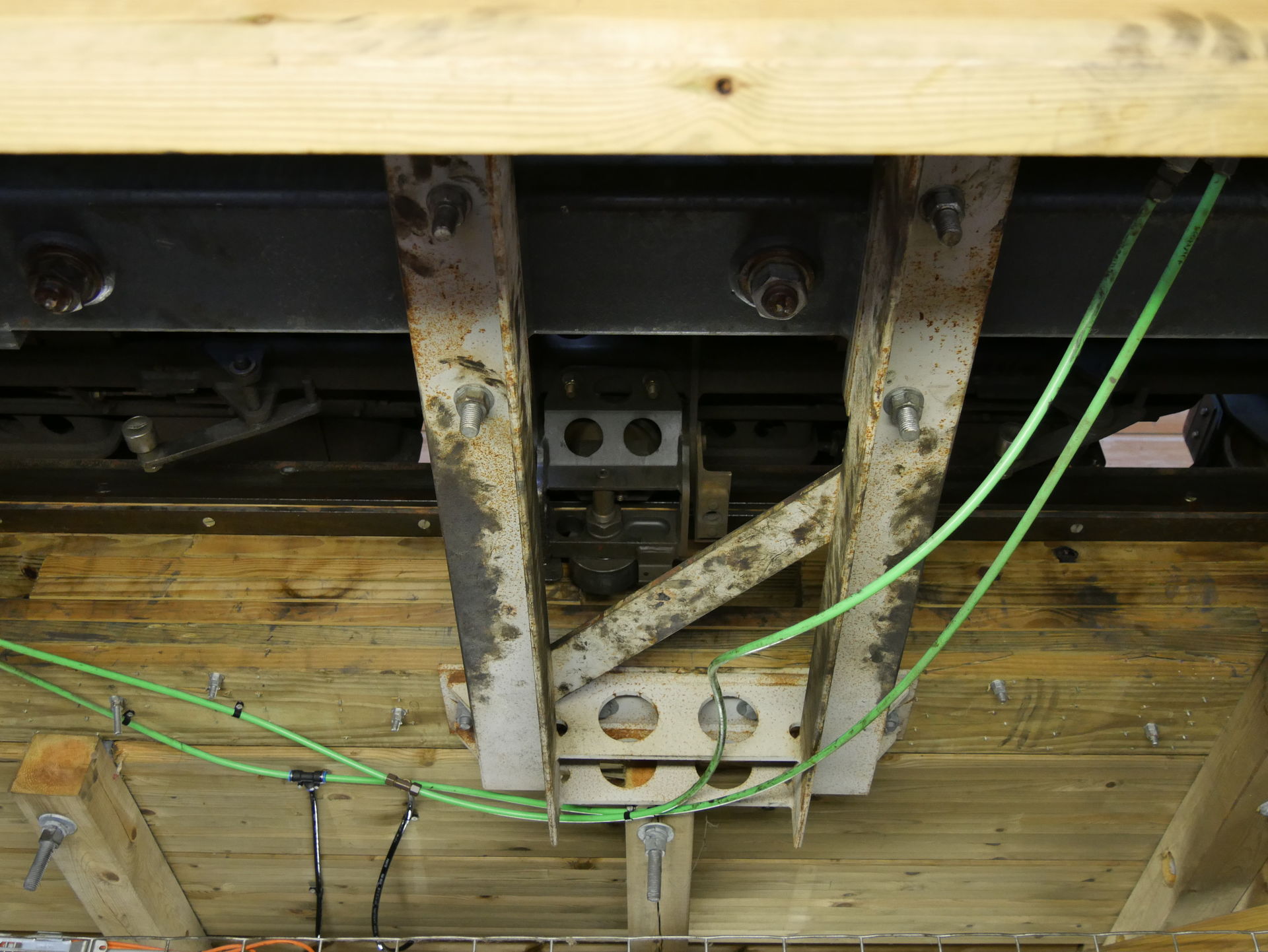 In der Werkstatt, die direkt neben der Qline liegt, bevor man die Treppe zur Station hochsteigt, konnten wir einen Blick werfen und u.a. bestaunen wie der Zug/das Fahrwerk von unten aussieht.