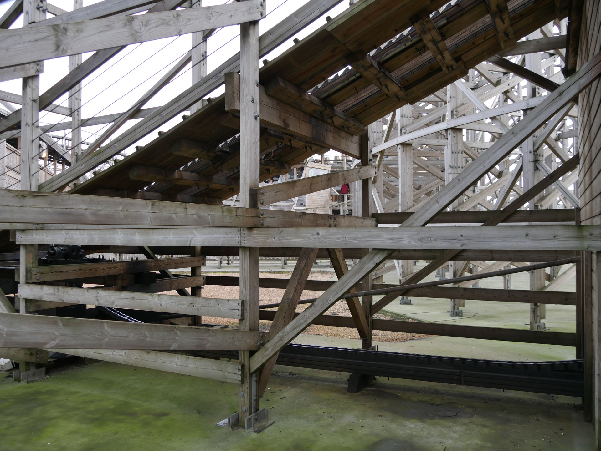 Schon beeindruckend mitten in dem Holzlabyrinth zu stehen. Weiter ging's zum Motorenhaus unter dem Lifthill.