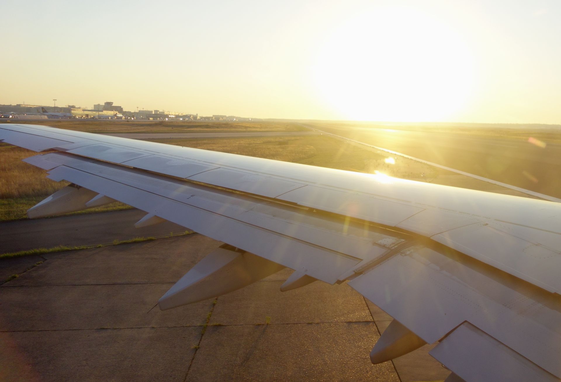 Um kurz nach 7 Uhr bogen wir auf Startbahn 07C ein und starteten der Sonne entgegen.