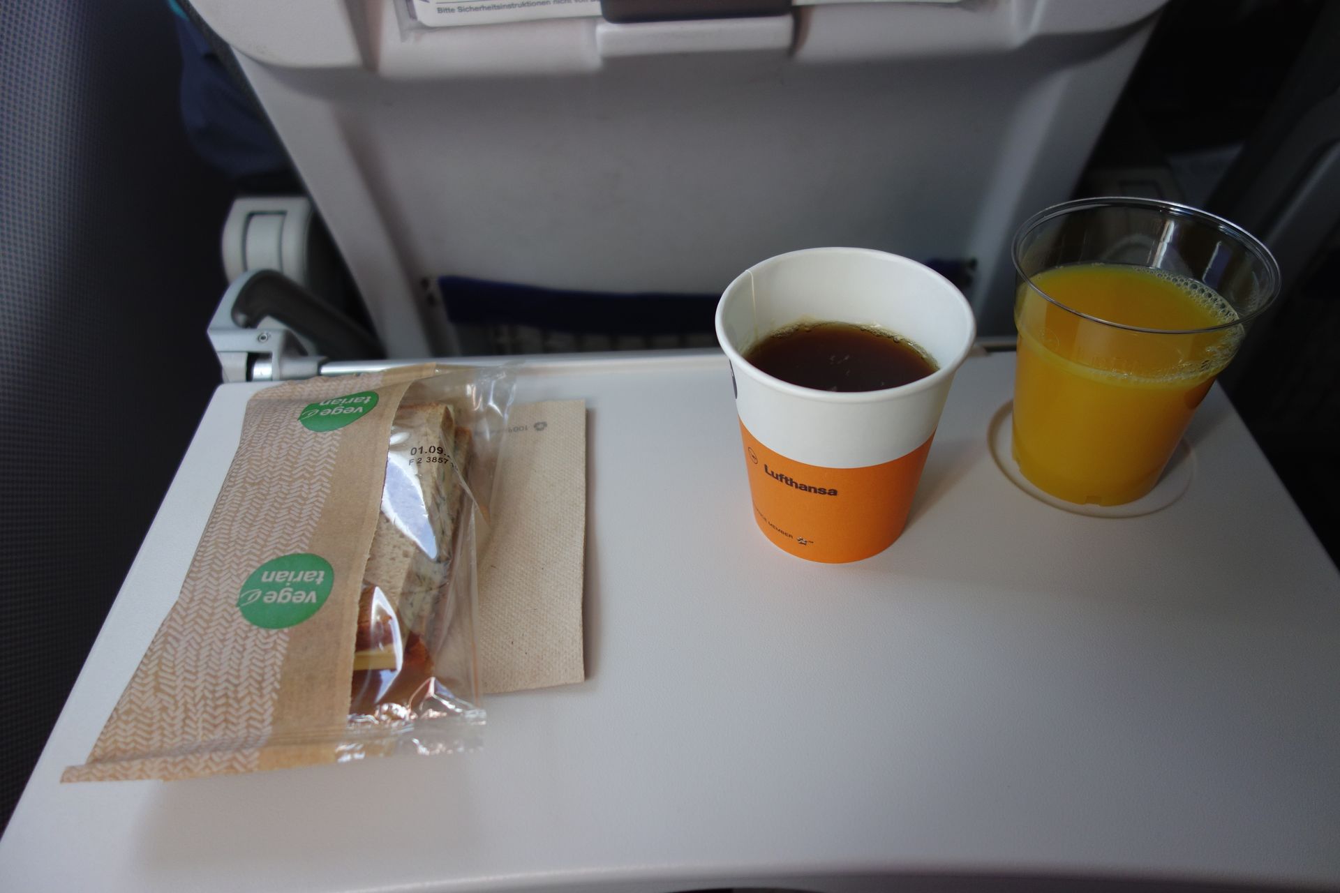 Als Verpflegung gab es ein Sandwich mit Käse und Kräuterquark oder so. Nicht mein Geschmack, aber der Hunger treibt's rein.