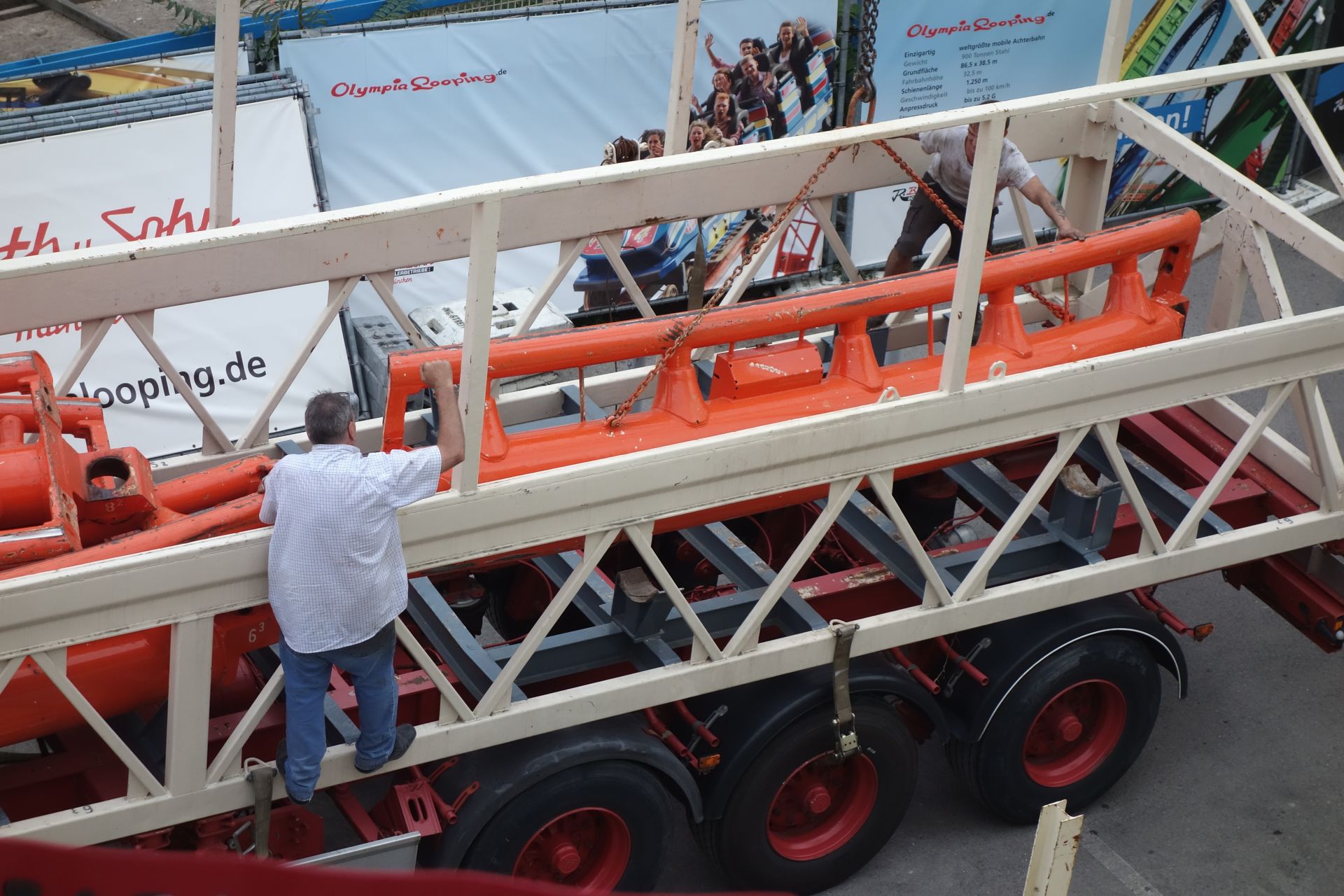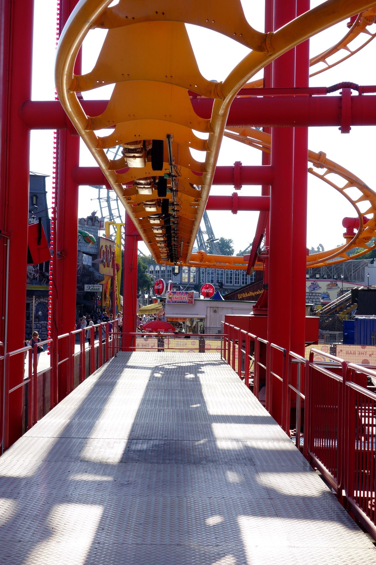 Das erste Liftteil des Olympia Loopings hochfotografieren kann man sonst ja eher selten.
