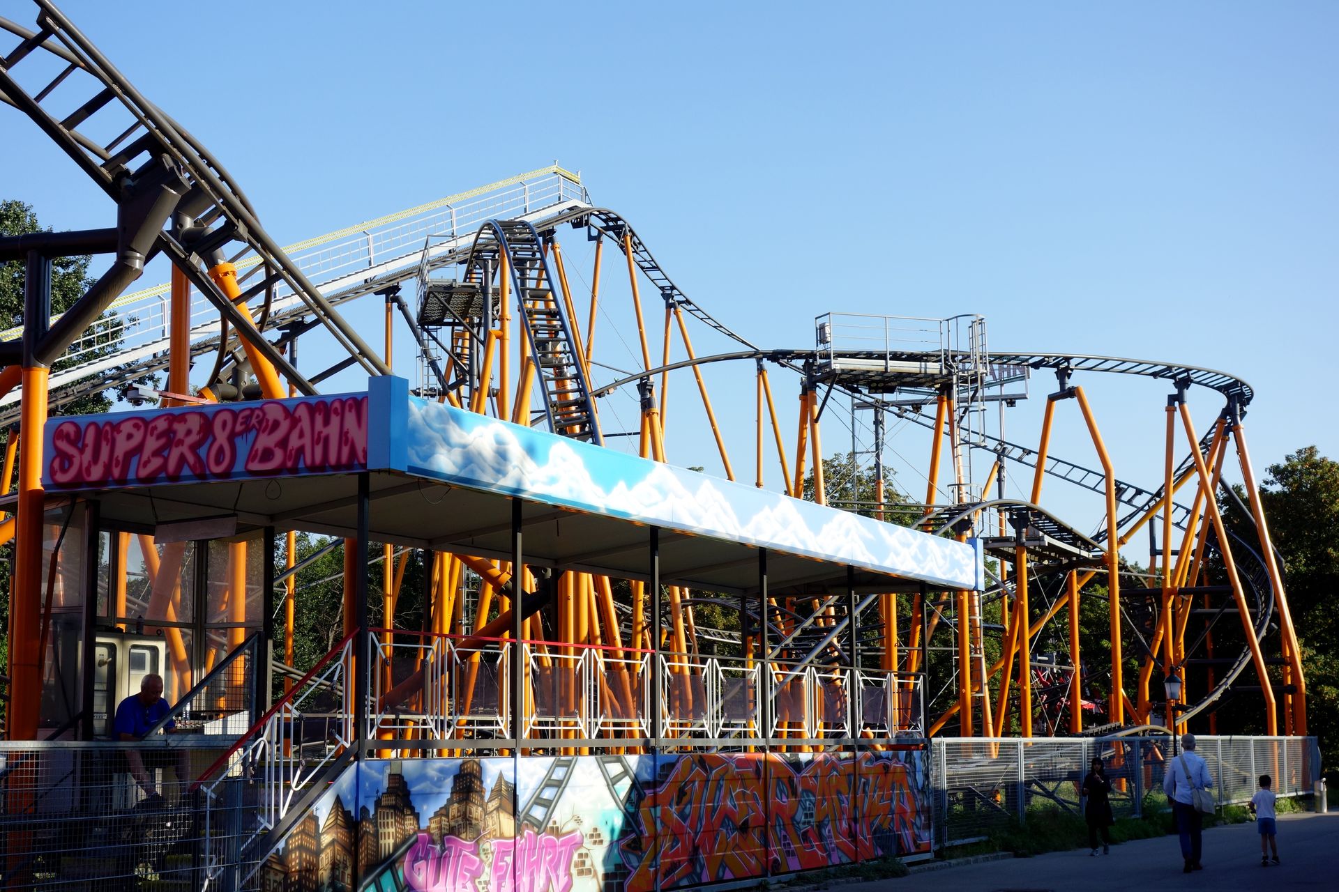 Die Super 8er Bahn ist - wenn grade kein Olympia Looping zu Gast ist - die größte Achterbahn des Praters mit 780 Metern Länge.