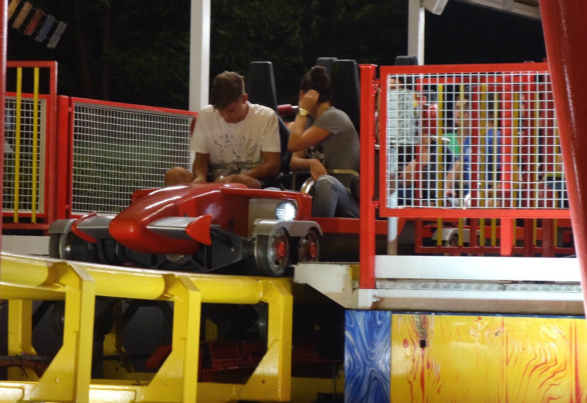 Auf der ein oder anderen Kirmes war ich zwar durchaus mal kurz davor, aber letztlich war der Geiz immer größer. Das spielte hier ja glücklicherweise keine Rolle, und so bestiegen wir zu fünft das Rondell. Ist wirklich ein witziges Fahrgeschäft, besonders wenn man hüpfend auf seinen Sitznachbarn geschoben wird. Und in der Gruppe macht es gleich nochmal so viel Spaß. Ähnlich wie bei der nächsten Station.