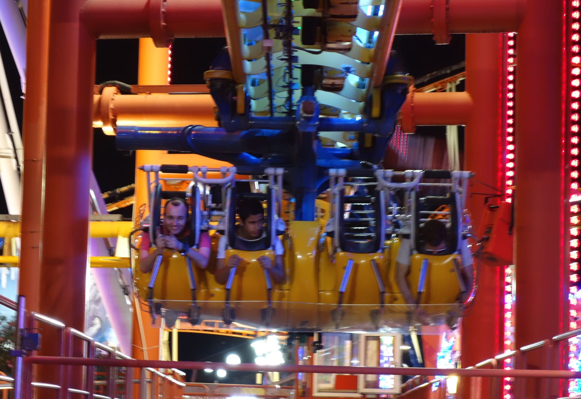 Zu allem Überfluss bekamen wir bei den drei bisher genannten Attraktionen nicht nur die Fahrt umsonst, sondern erhielten auch jeweils ein Onride-Foto ohne zahlen zu müssen. Auch die erste Runde an der Bar am Blumenrad wurde ausgegeben. Ohne nachgerechnet zu haben, dürften wir also locker mindestens einen der beiden Flüge wieder rausgehabt haben. Da bekommt man tatsächlich schon fast ein schlechtes Gewissen. Aber auch irgendwie so ein VIP-Gefühl. Könnte man sich glatt dran gewöhnen.