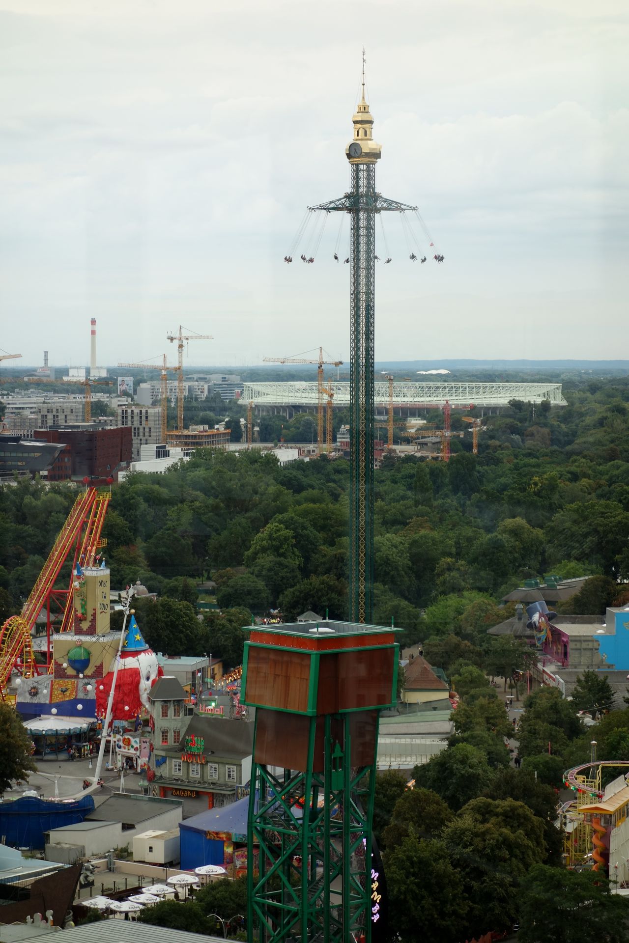 Das Dach hinter dem Praterturm und den Kränen gehört übrigens zum Erst-Happel-Stadion.