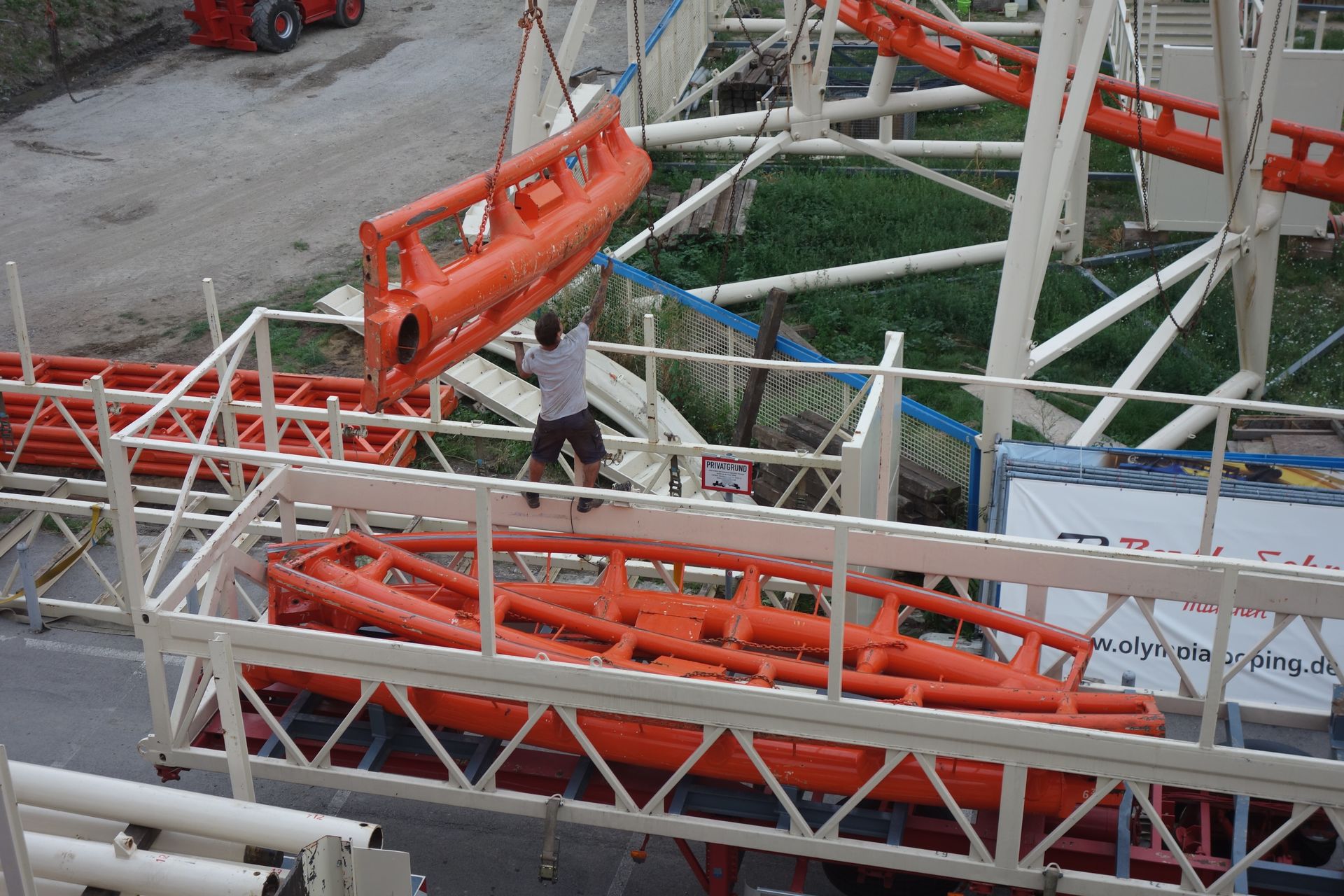 Wieder mit Alex vereint schauten wir uns die Fortschritte beim Abbau des Olympia Loopings an.