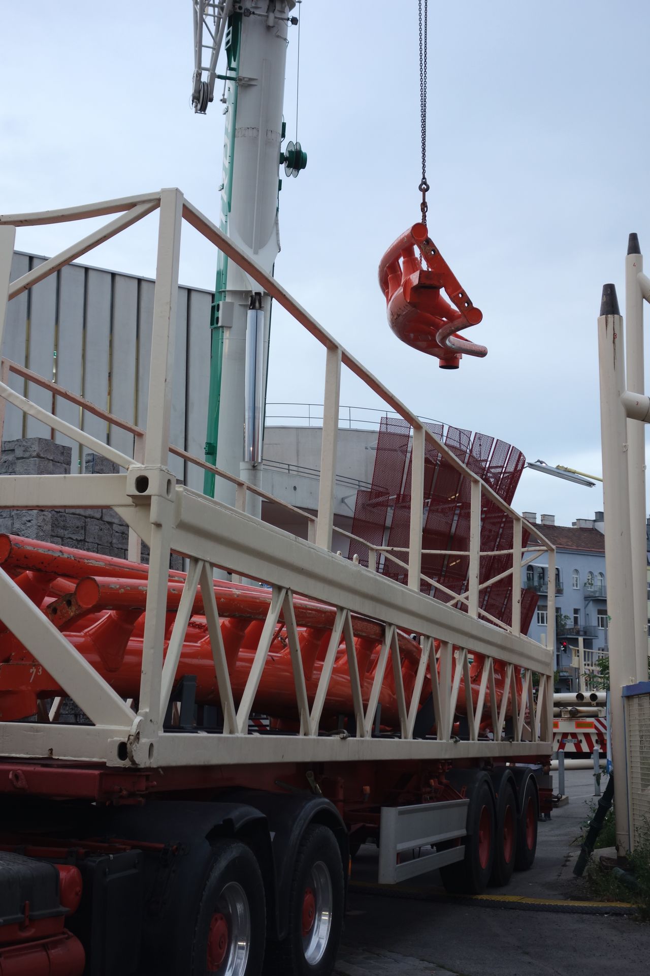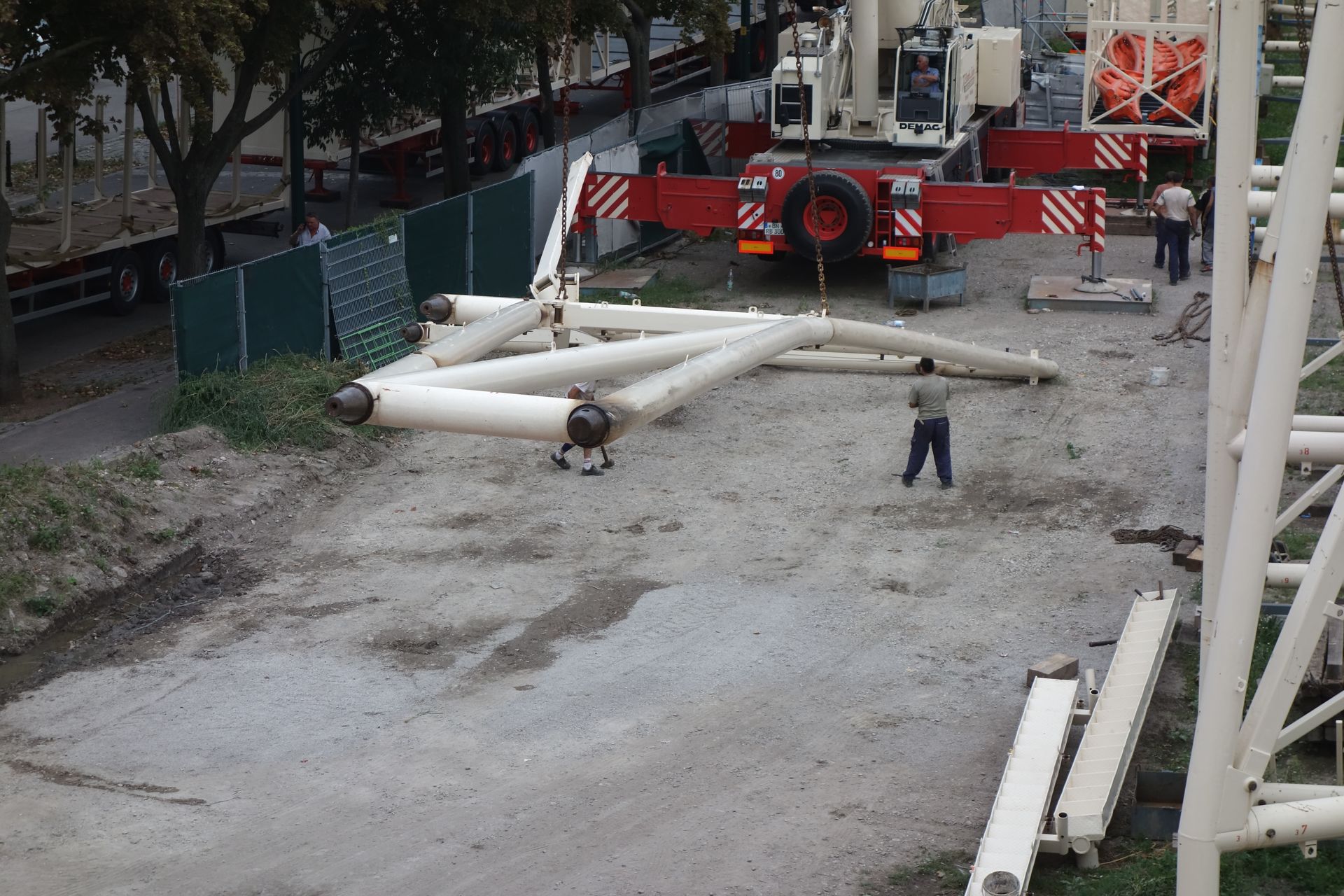 Spannend war auch das Herausheben einer der höchsten Stützen.