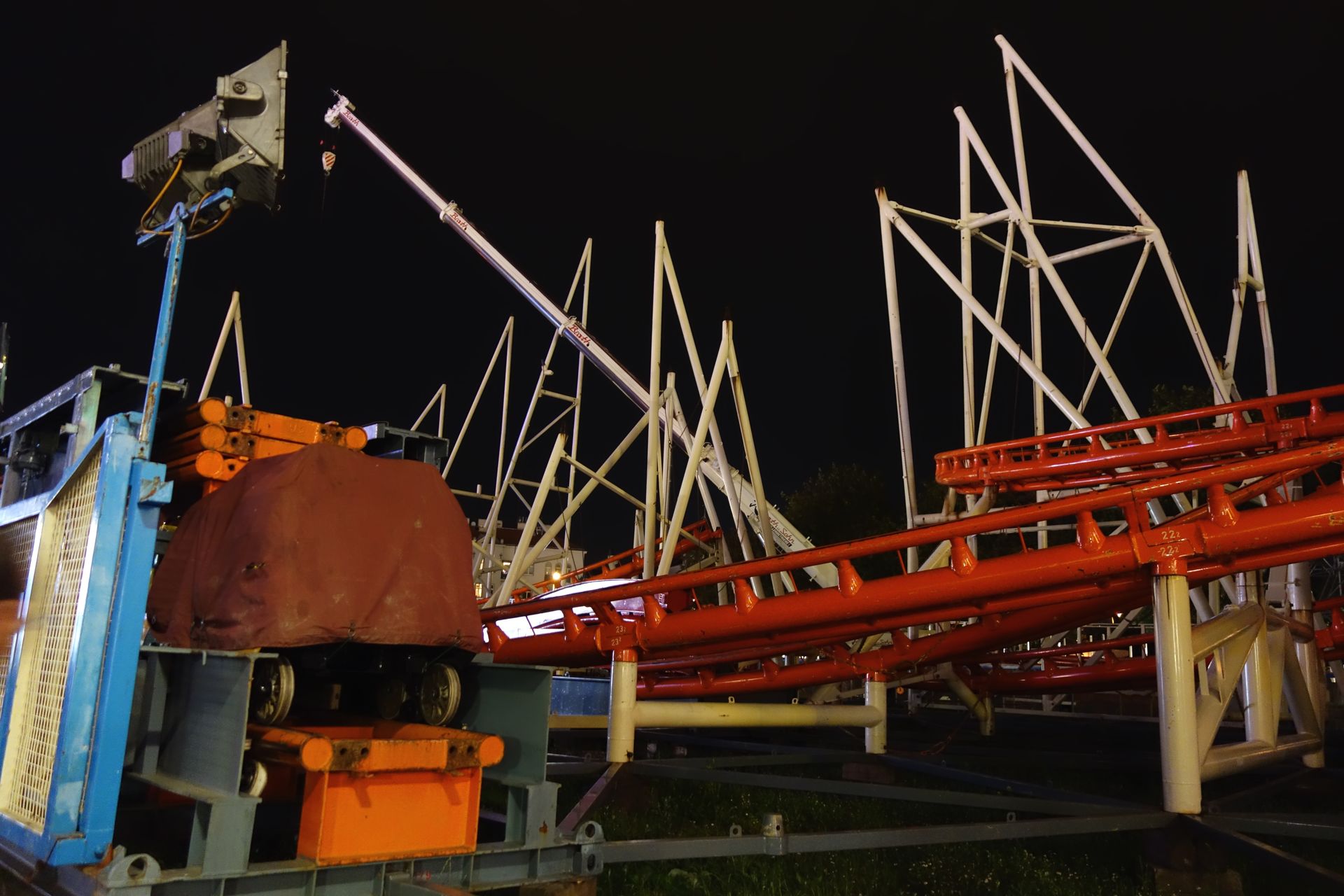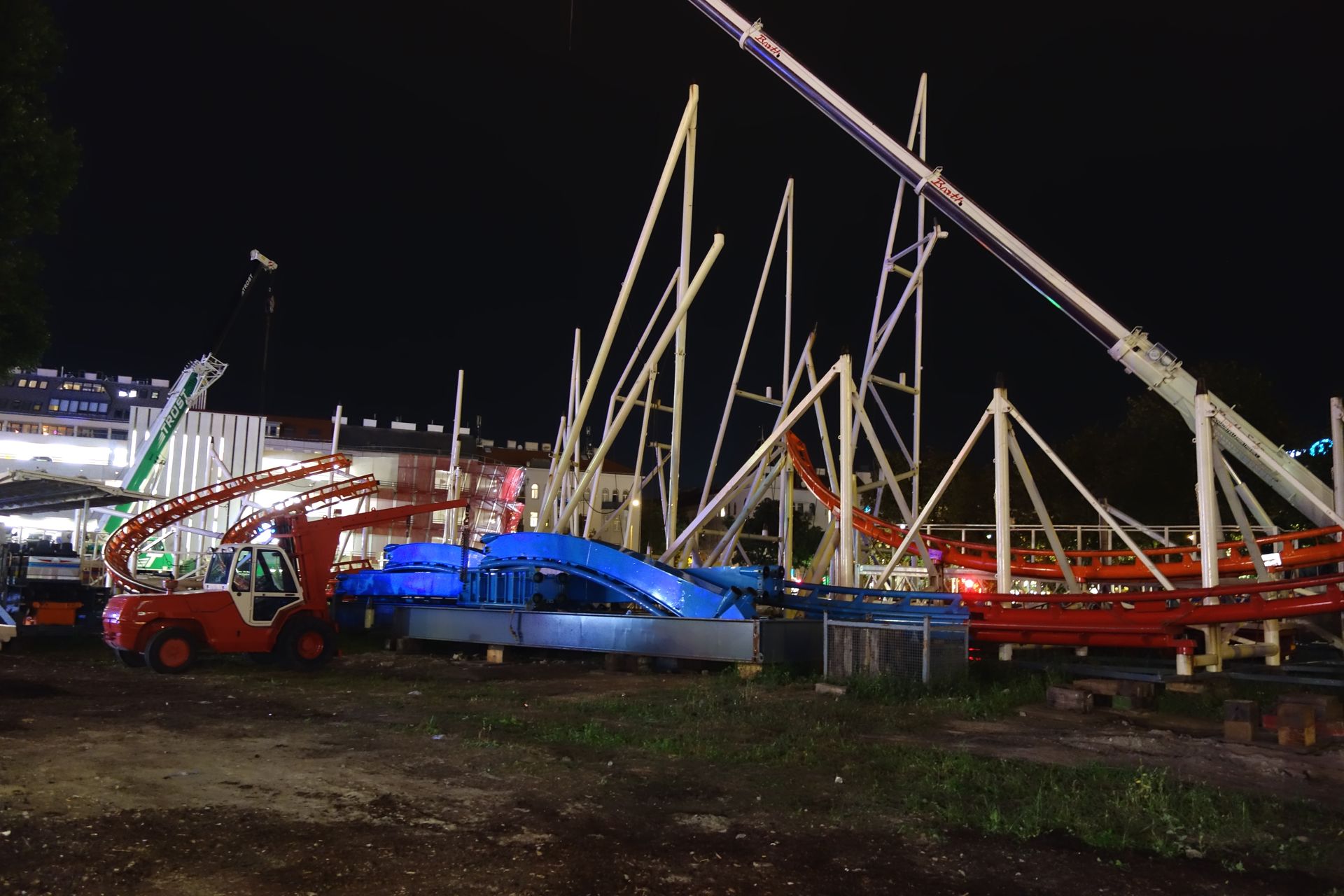 Mit Einbruch der Dunkelheit waren die Arbeiten am Olympia Looping eingestellt worden.