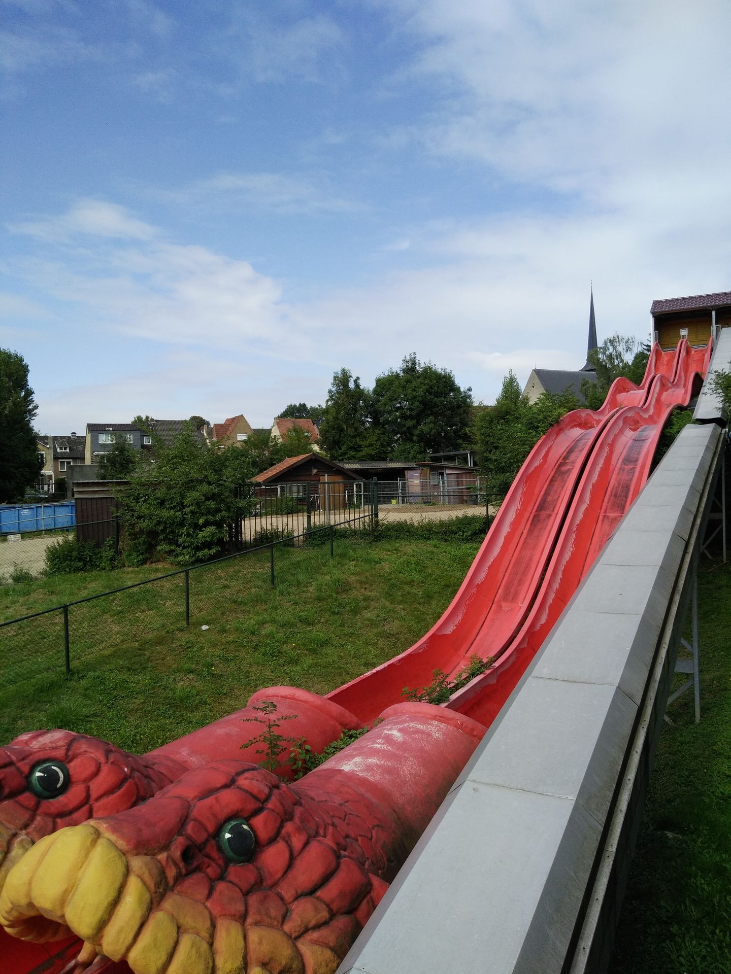Auch hier war ich als Kind schon einmal. Die Achterbahn gab es schon, wurde aber damals noch nicht von mir gefahren. Geparkt haben wir hier direkt neben dem Eingang auf dem öffentlichen Parkplatz. Die parkeigene Parkgrube (mehr war es nicht...) war erstens teurer, zweitens zu weit weg und drittens voll...
