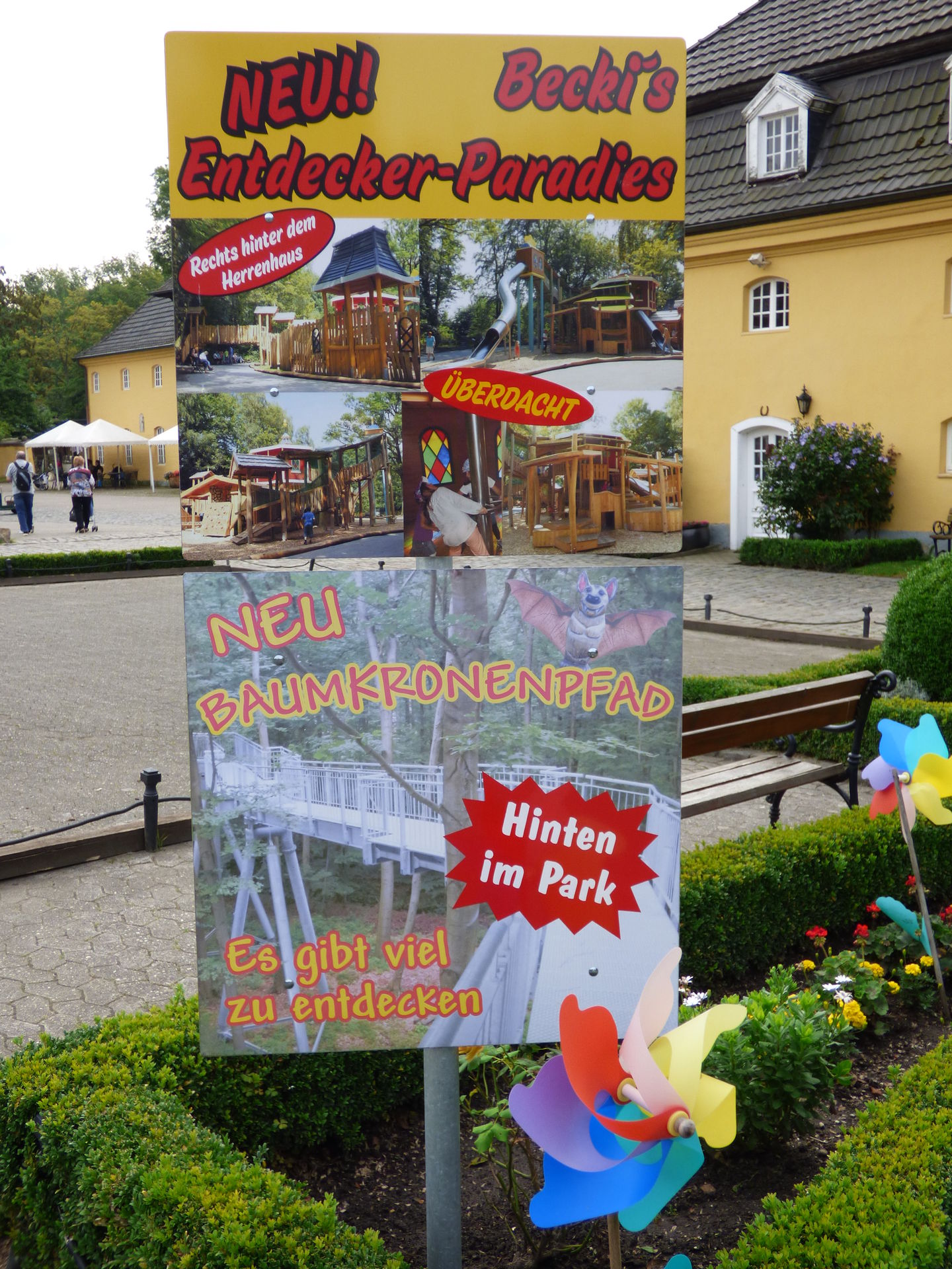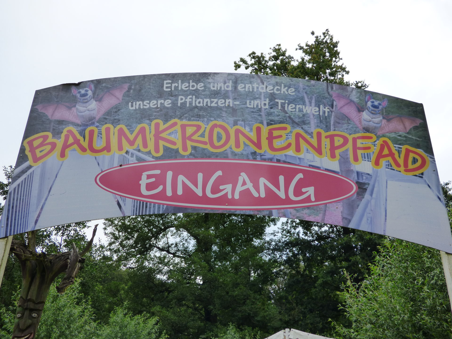 Direkt nach dem Eingang zeigte uns ein Schild die beiden großen Neuheiten auf, die wir noch nicht kannten. Schön, dass der Baumwipfelpfad endlich realisiert wurde. Der war ja schon 2004 immer wieder als Neuheit angekündigt. Jetzt steht das Dingen endlich.