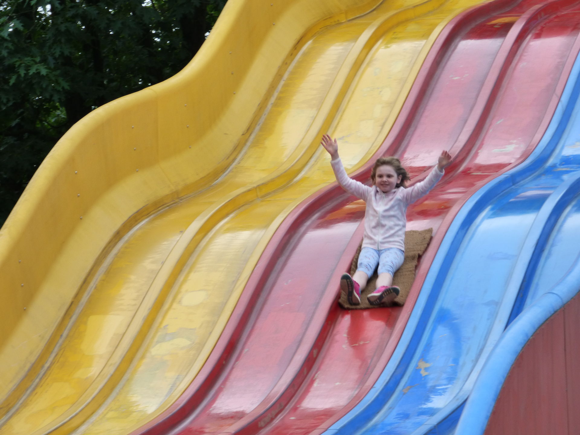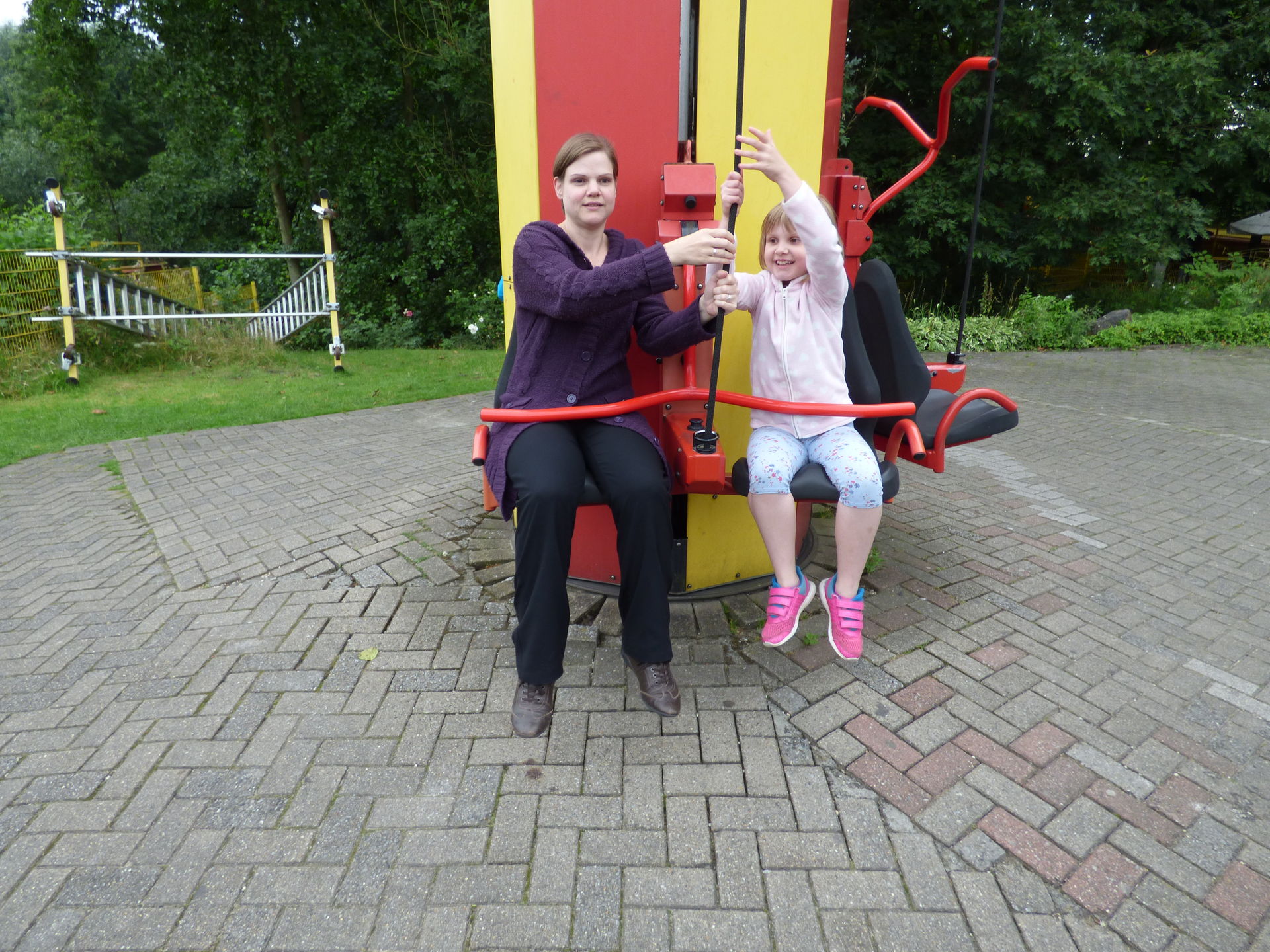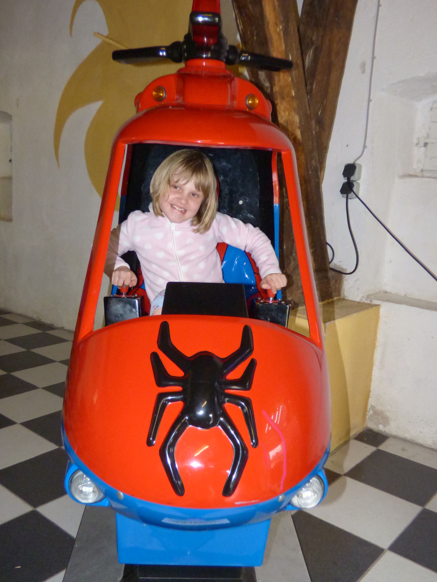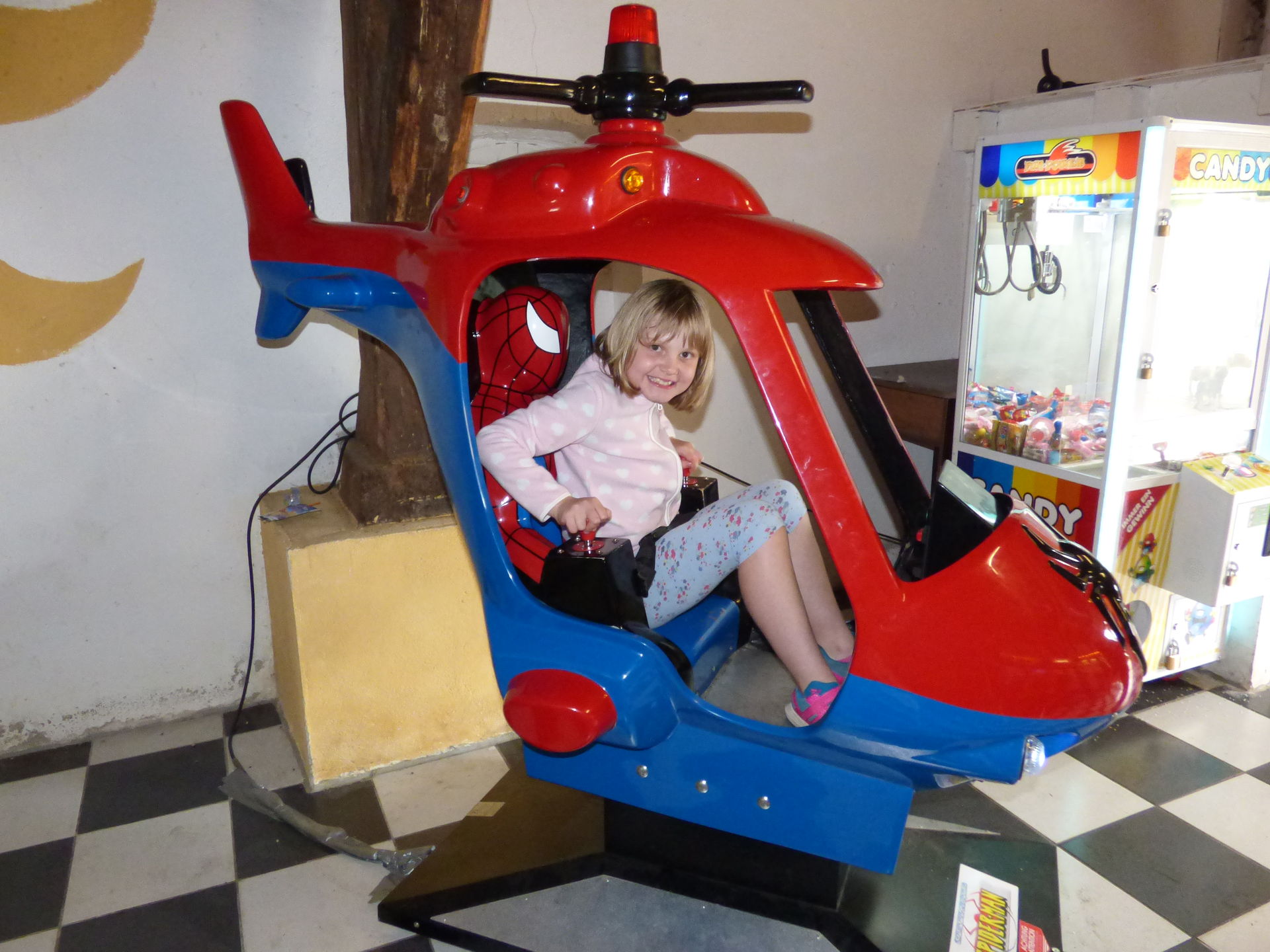 Wir beginnen aber natürlich von vorne und somit stürzte sich Mia erstmal auf die elektronischen Pferdewagen, die es immer noch gibt. Da habe ich schon als kleines Kind drin gesessen und sämtliche onrider haben sich da auch schon reingequetscht. Anschließend wurden die Trampoline getestet.
