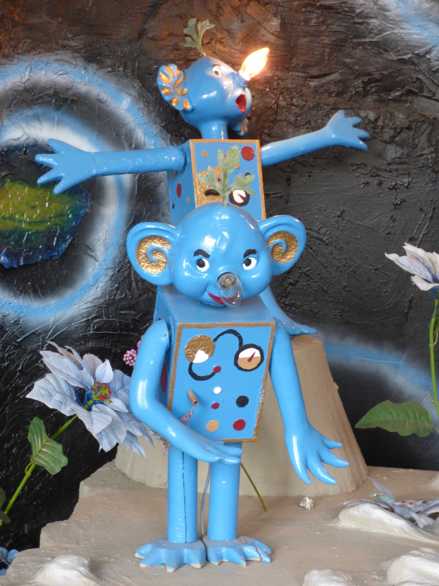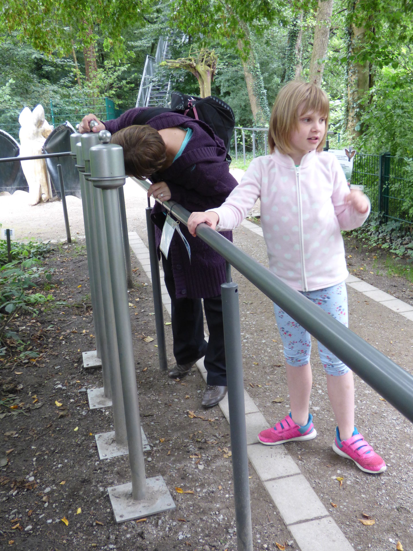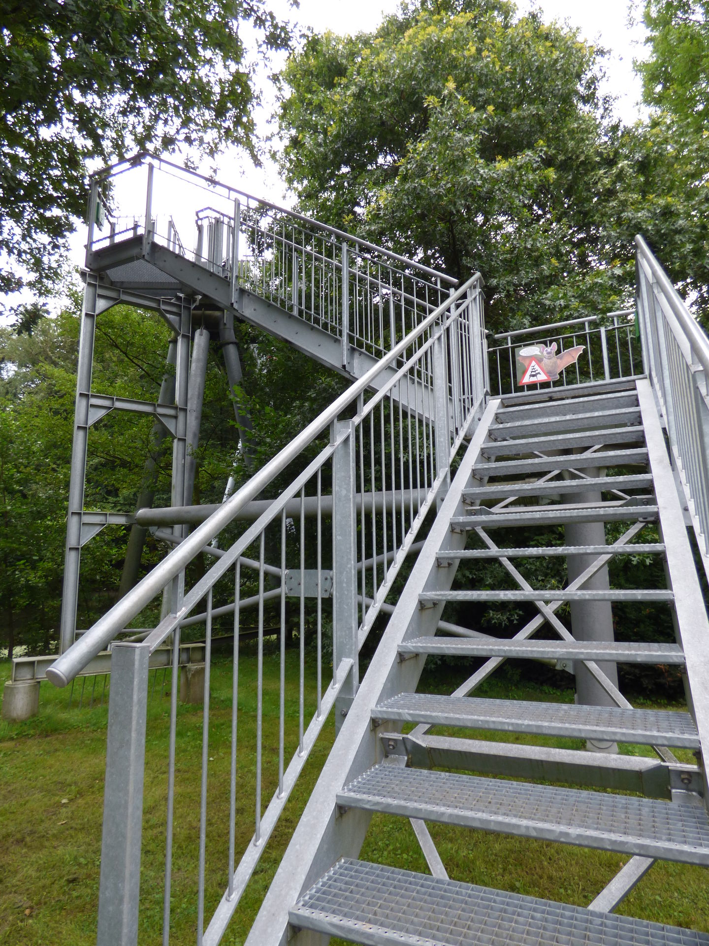 Und damit der Weg durch die Bäume für die Kiddies nicht zu langweilig ist, gibt es mehrere Stationen, an denen man was erleben kann, alles in Verbund mit den Tieren und der Natur, man muss riechen, man kann Geräusche machen, unterwegs muss man Fledermäuse in den Bäumen suchen, Fragen beantworten und und und.