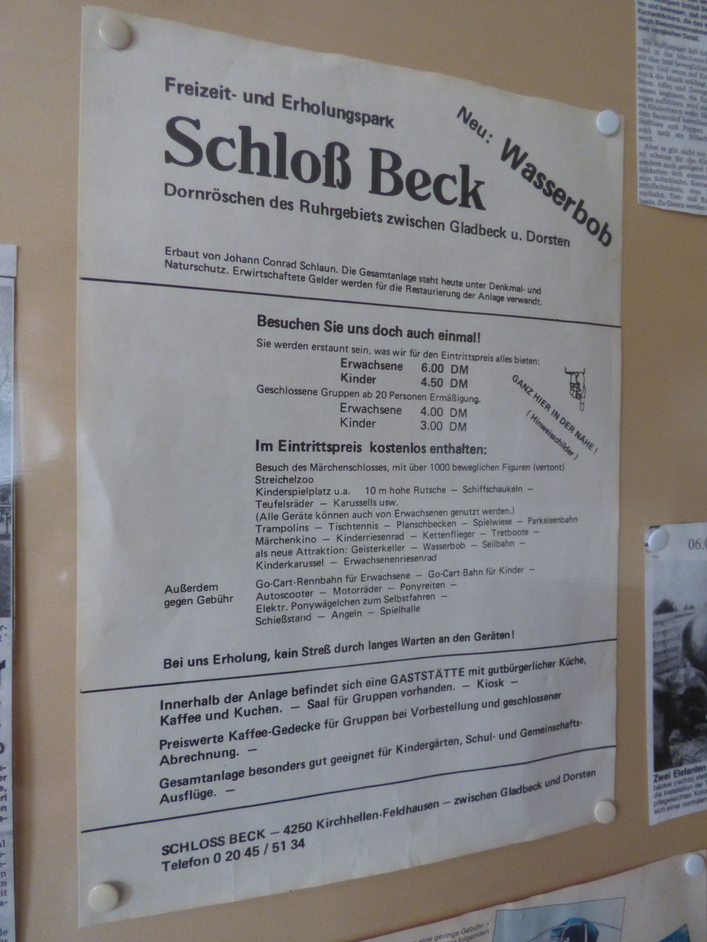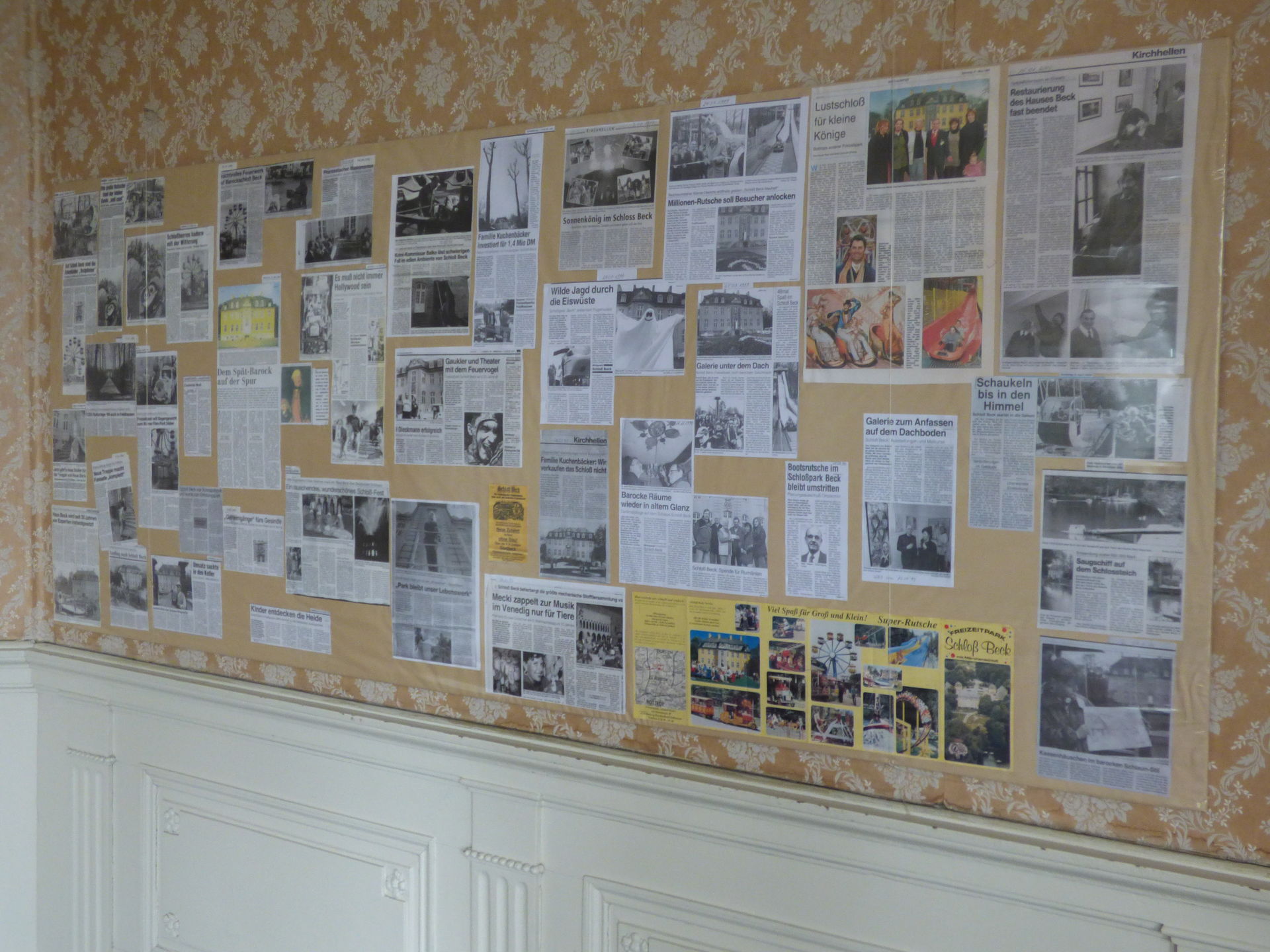 Für das Innere des Schlosses sollte man sich etwas Zeit nehmen, denn hier gibt es durchaus einiges zu entdecken. Zum einen natürlich die tollen Räume mit den ganzen alten Möbeln und Gerätschaften, Bildern und Teppichen. Zum anderen gibt es hier auch ein kleines Schloss Beck Museum in Form von etlichen alten Zeitungsartikeln, Aufklebern, Bildern etc. Hier macht es richtig Spaß, die Entwicklung des Parks zu verfolgen und Bilder und Preise von anno dazumal zu sehen.