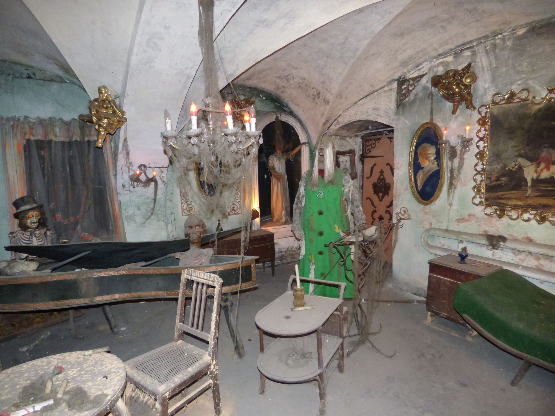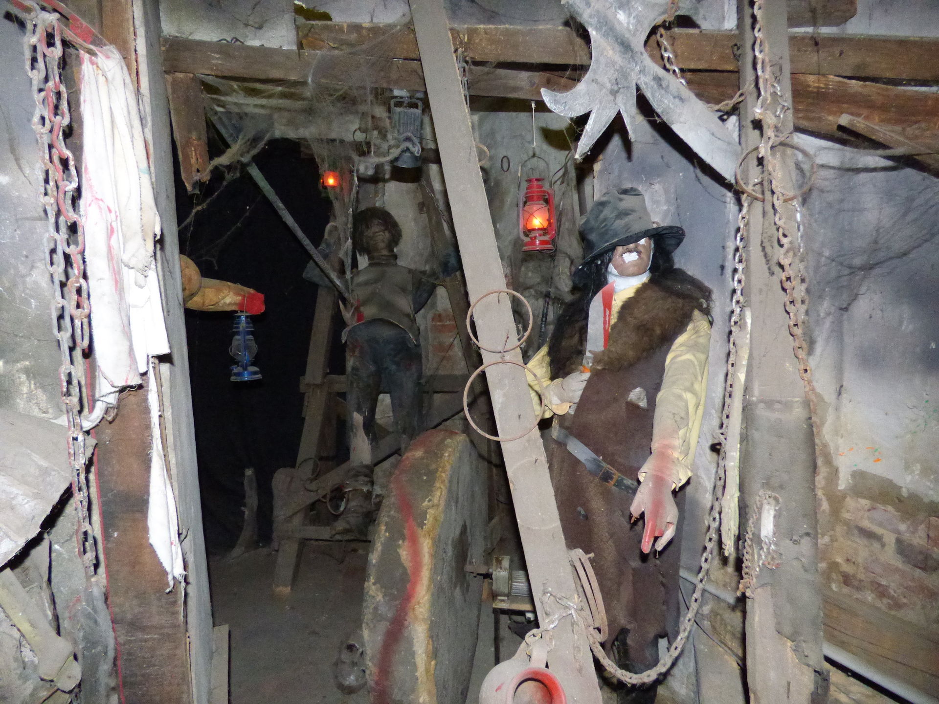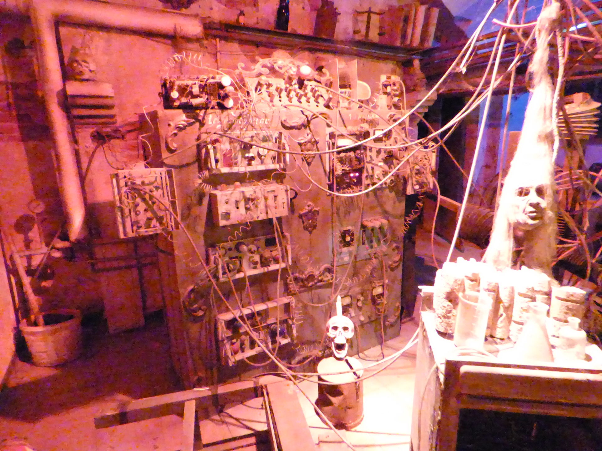 Nach dem Besuch im Schloss ging es natürlich auch noch in den Keller, dort wartet der unheimliche Gruselkeller auf die Besucher. Kurz nach jeder vollen Stunde sind hier die einzelnen Szenen für 10 Minuten in Betrieb, was auch locker ausreicht, um sich den Keller in aller Ruhe anzusehen. Ansonsten kann man die einzelnen Szenen jeder Zeit durch den Einwurf von 0,50 Euro in Betrieb nehmen.