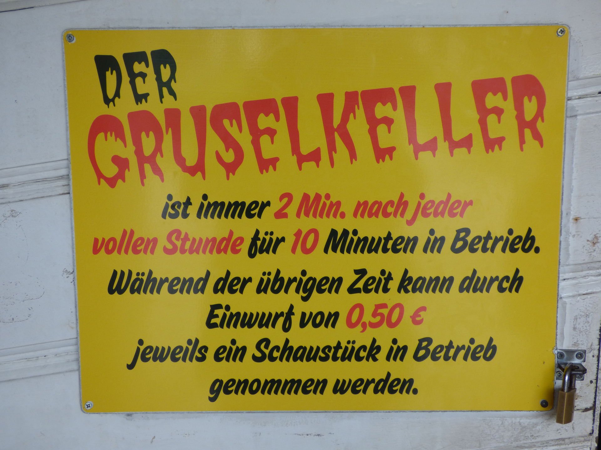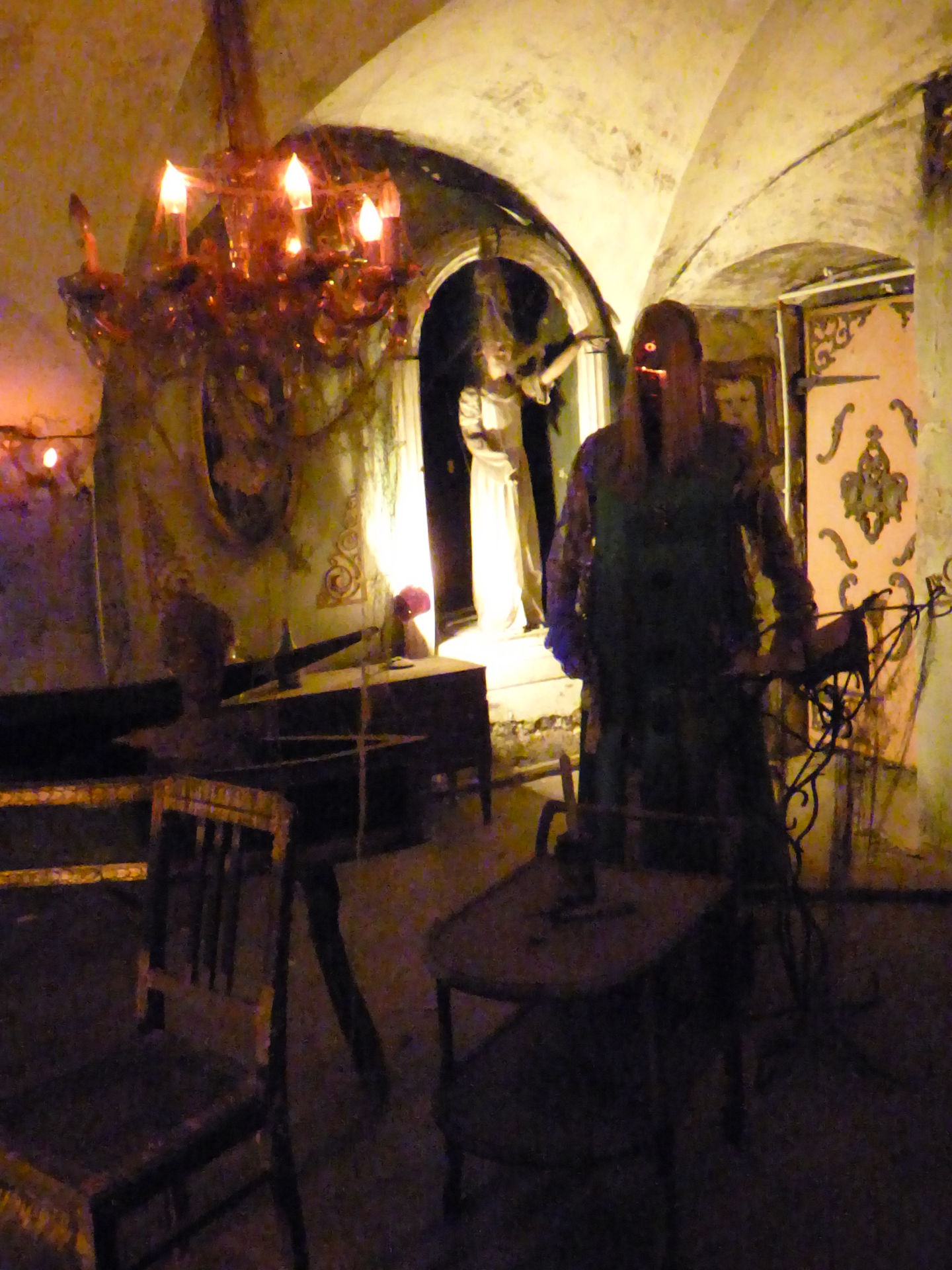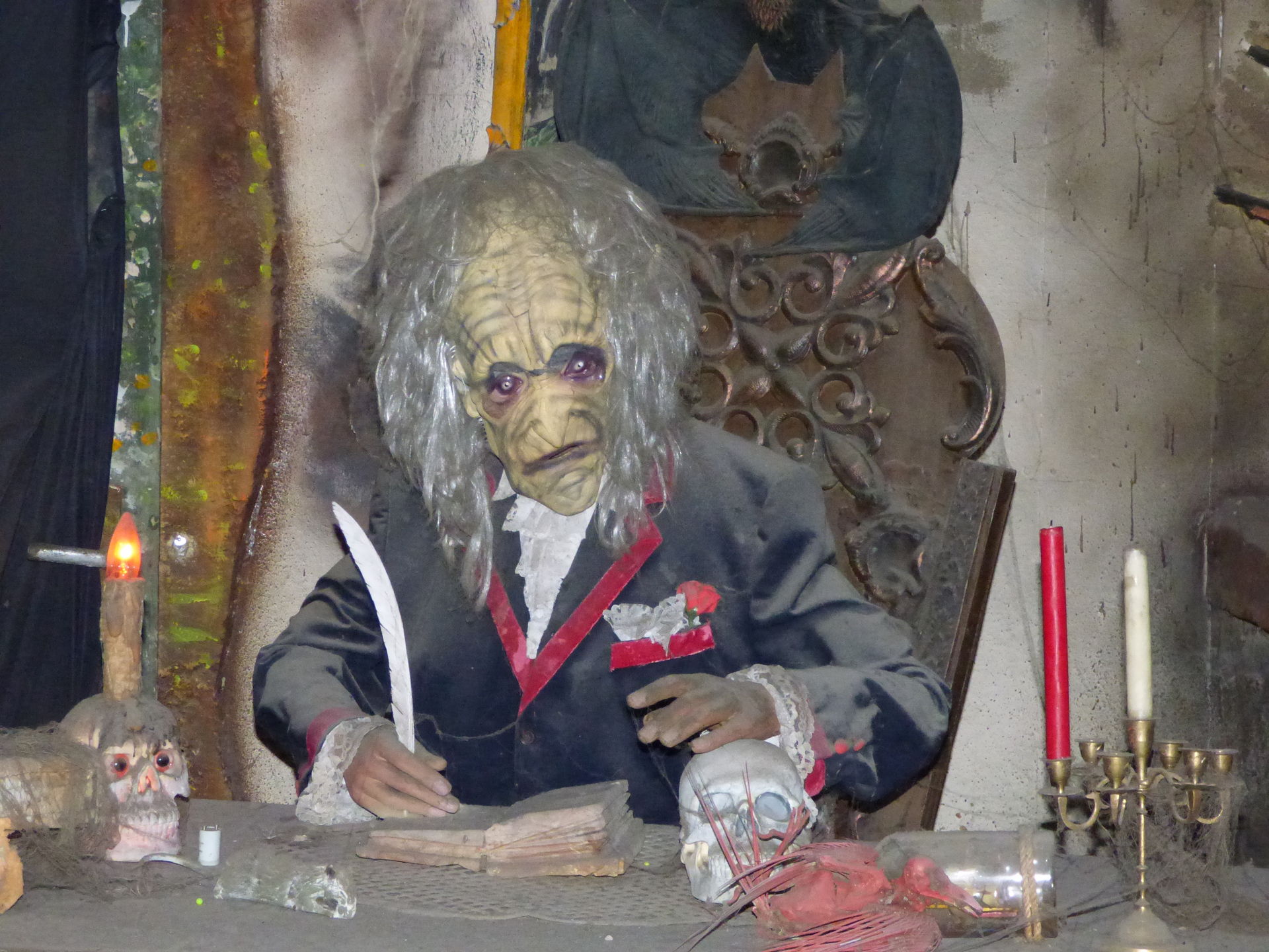 Nach dem Besuch im Schloss ging es natürlich auch noch in den Keller, dort wartet der unheimliche Gruselkeller auf die Besucher. Kurz nach jeder vollen Stunde sind hier die einzelnen Szenen für 10 Minuten in Betrieb, was auch locker ausreicht, um sich den Keller in aller Ruhe anzusehen. Ansonsten kann man die einzelnen Szenen jeder Zeit durch den Einwurf von 0,50 Euro in Betrieb nehmen.