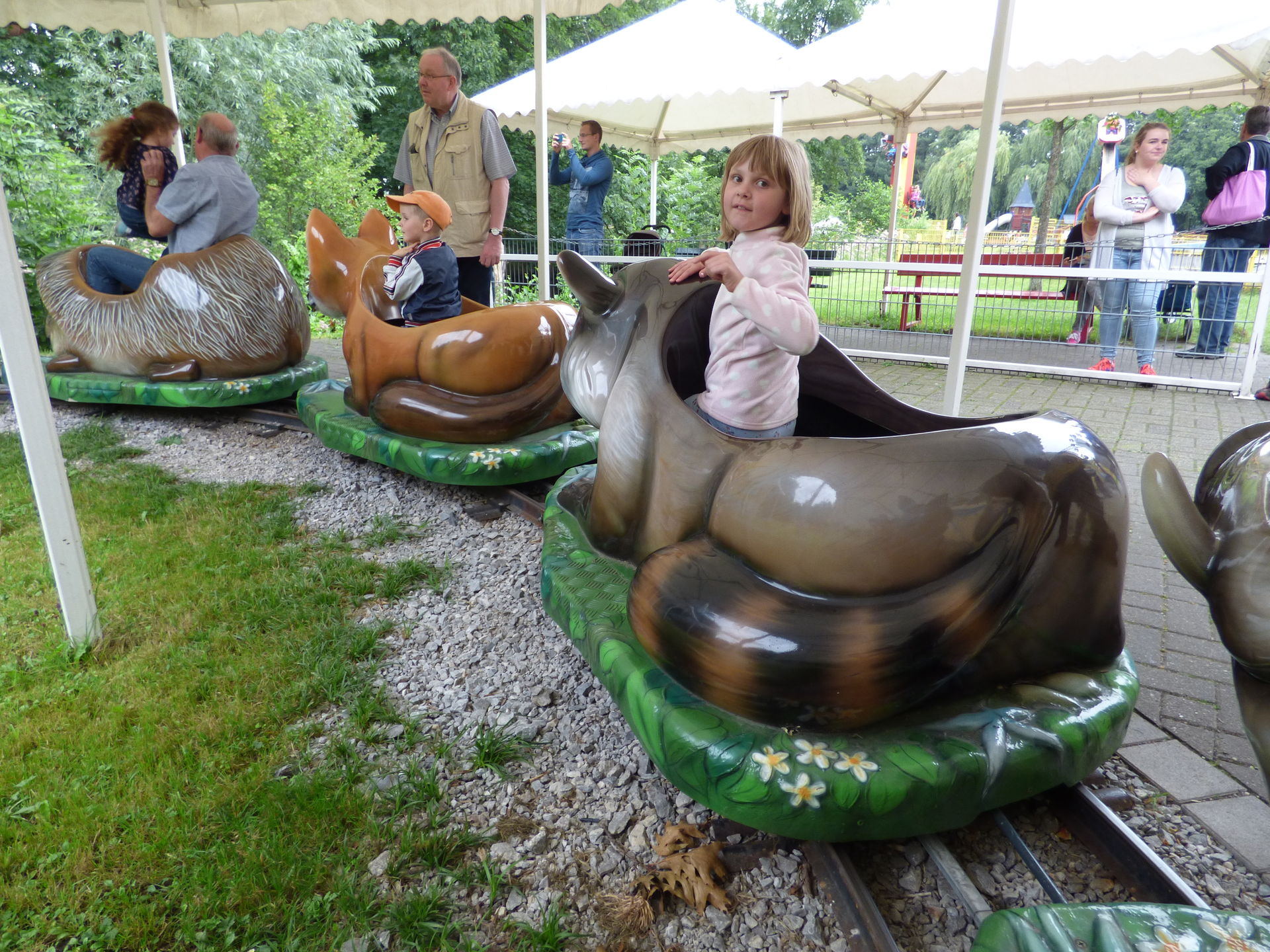 Desweiteren wurde die Oltdtimerbahn ersetzt durch die sogenannte Waldtierbahn. Die hatte es uns an diesem Tag irgendwie angetan, da haben wir zig Runde gedreht, alle Tiere durch und hin und her. Keine Ahnung, warum. Einfach nur Spaß inne Backen.