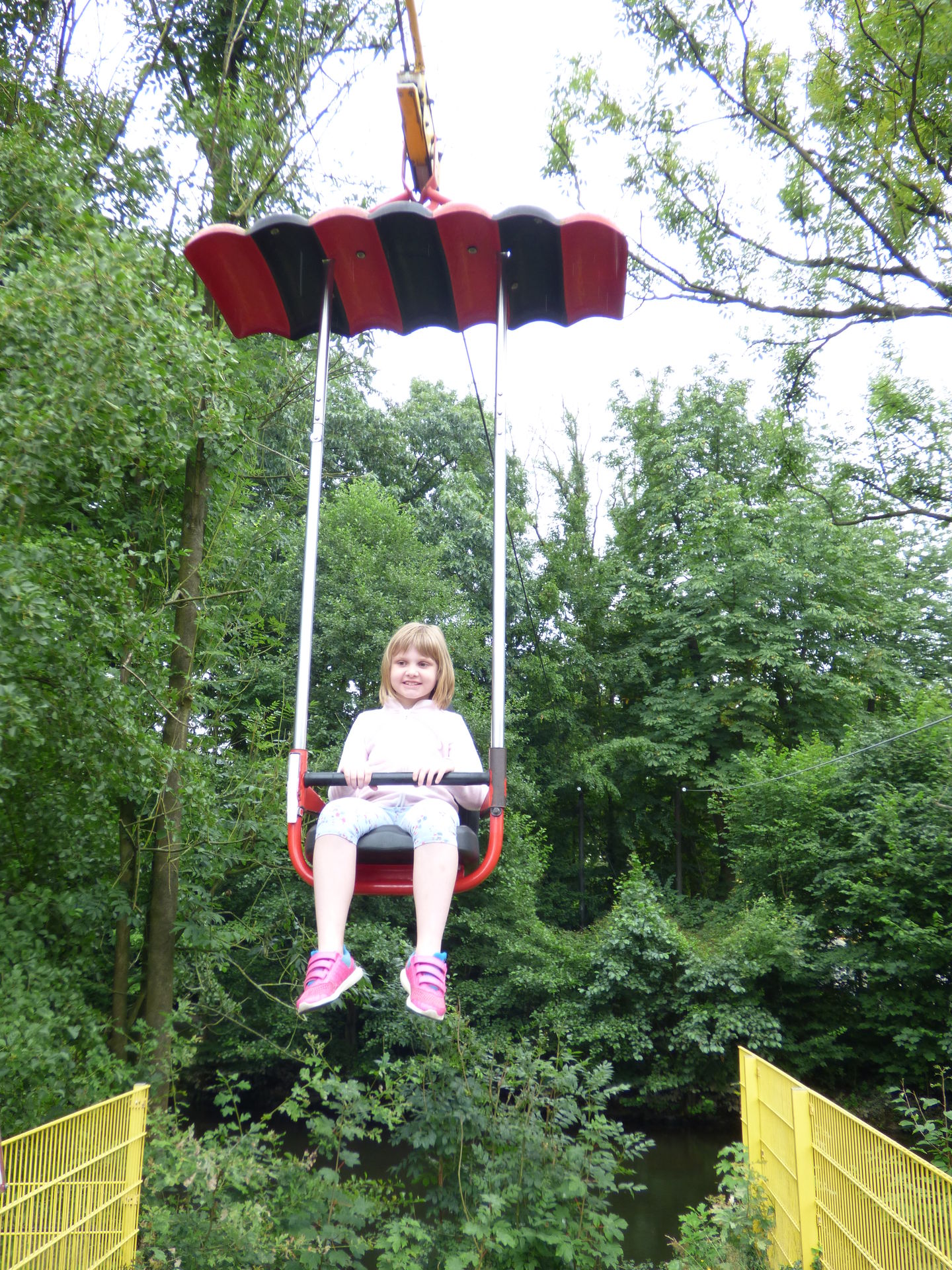 Am Ende des Parks wartete dann eine Neuheit für uns, und zwar keine Kleine, denn hier wartet der lang angekündigte Baumkronenpfad auf die Besucher. Es geht hoch hinaus zu den Bäumen, durch den Wald, über den See und man hat mit diesem Pfad eine weitere Verbindung zum anderen Parkteil geschaffen, den am Ende des Pfades kommt amn quasi hinter der Wellenrutsche wieder heraus.