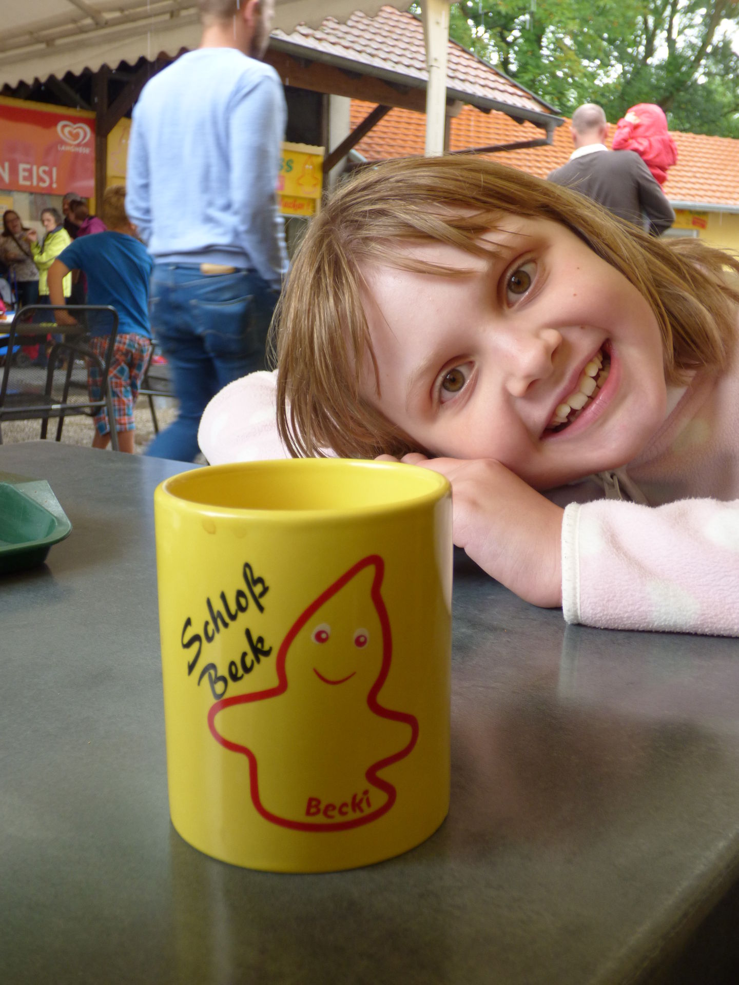Wir haben das beste draus gemacht, haben uns ein schnuckeliges Plätzchen im Snack Bereich gesucht und haben erstmal Pause gemacht und lecker was gegegessen. Endlich wieder Schlossburger! Ich liebe diese verdammten Dinger. Wir ließen den Regen einfach Regen sein und während andere Familien fluchtartig den Park verließen, verköstigten wir uns an den Leckereien, holten Lose, warfen Dartpfeile und hatten einfach nur Spaß.