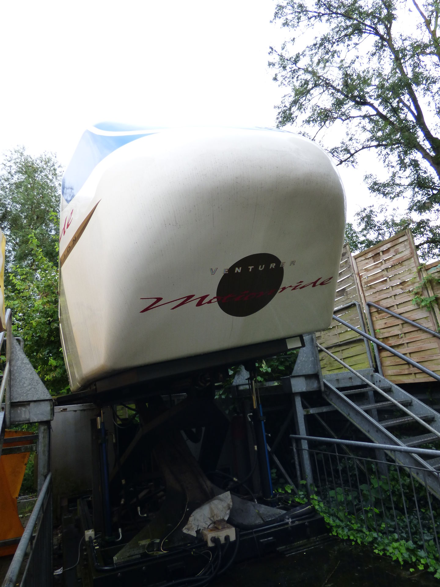 Nächste Station war der Simulator. Ich erinnere mich noch an ein Treffen von onridern aus dem Jahr 2004, wo wir alle komplett durchgeschüttelt und mit blauen Flecken da ausgestiegen sind, so heftig fuhr der. Das ist mittlerweile Geschichte, die wilden Zeiten sind vorbei, er fährt jetzt genauso lahm wie auf der Kirmes. Schade, denn genau das hat den Simulator in Schloss Beck früher ausgemacht.