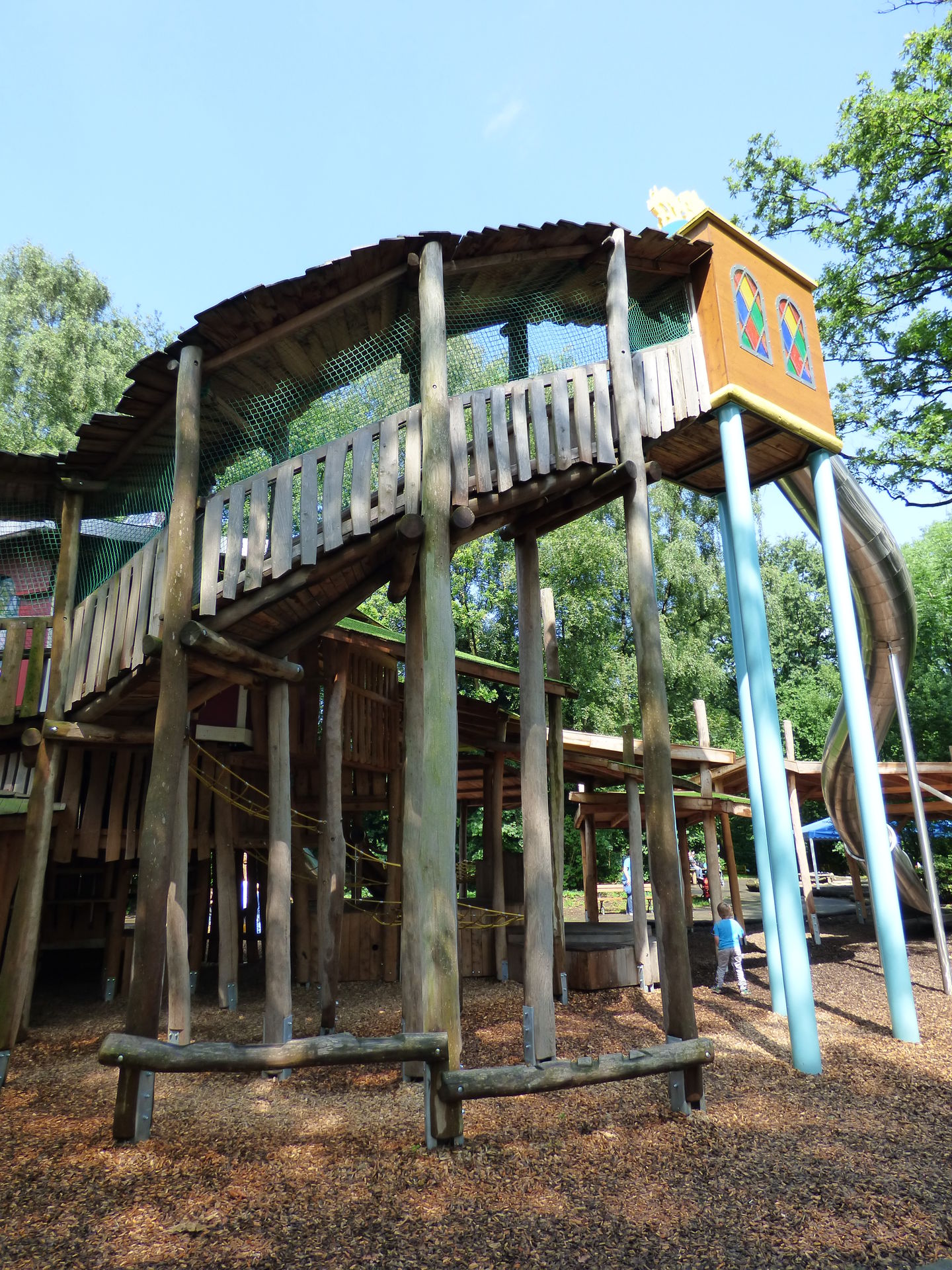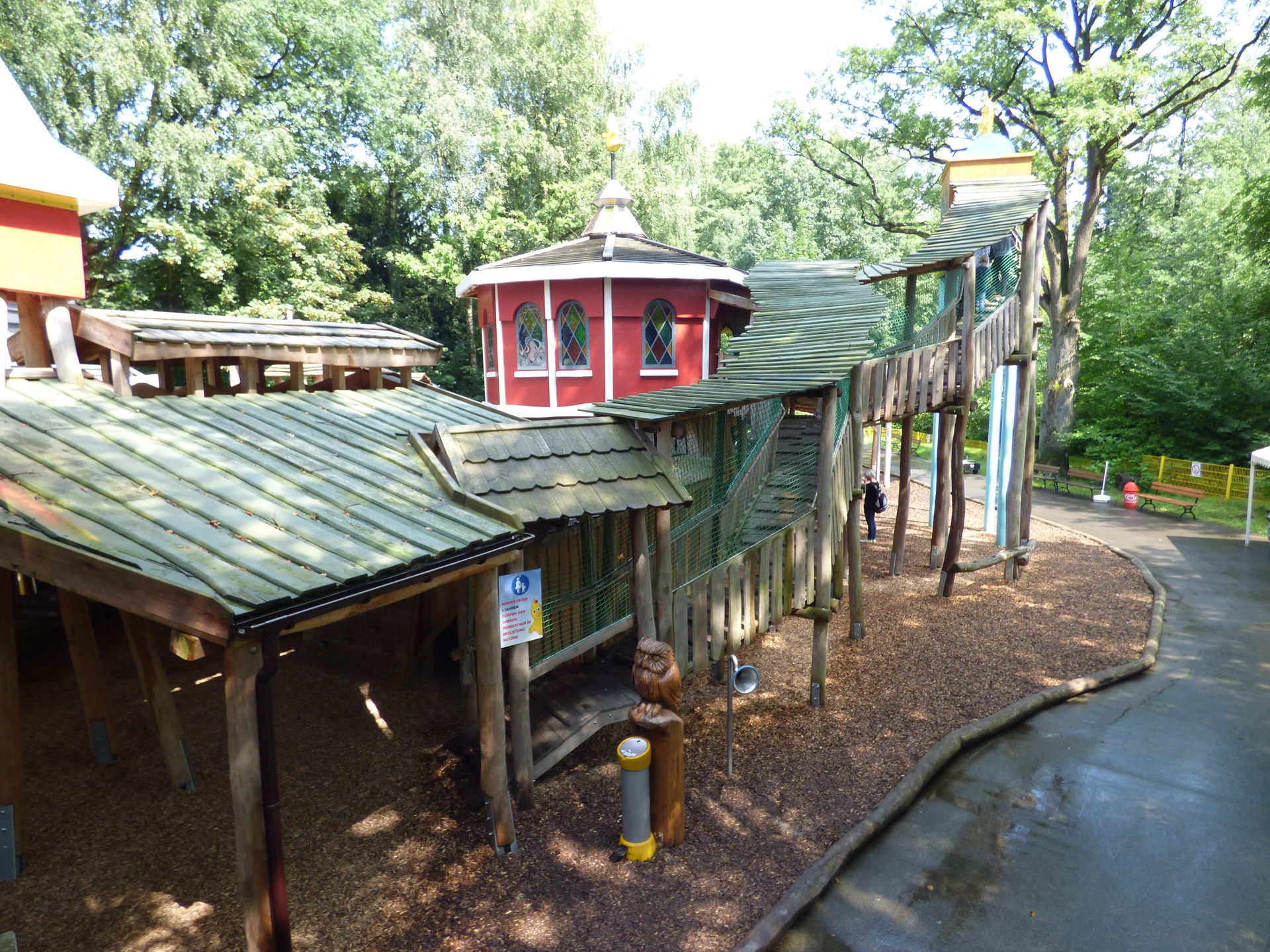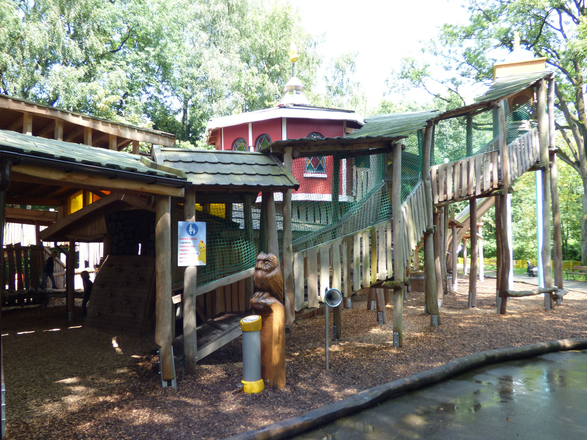 Ein weiterer neuer Themenbereich ist auf dem Areal der ehemaligen Go Cart Bahn entstanden. Hier befindet sich jetzt ein superschöner großer Abenteuerspielplatz, der komplett überdacht ist und somit bei jeder Witterung benutzt werden kann. Neben den typischen Spielgeräten gibt es hier auch viele interaktive Spielmöglichkeiten. Der Bereich ist absolut toll geworden und eine weitere Bereicherung für den Park.