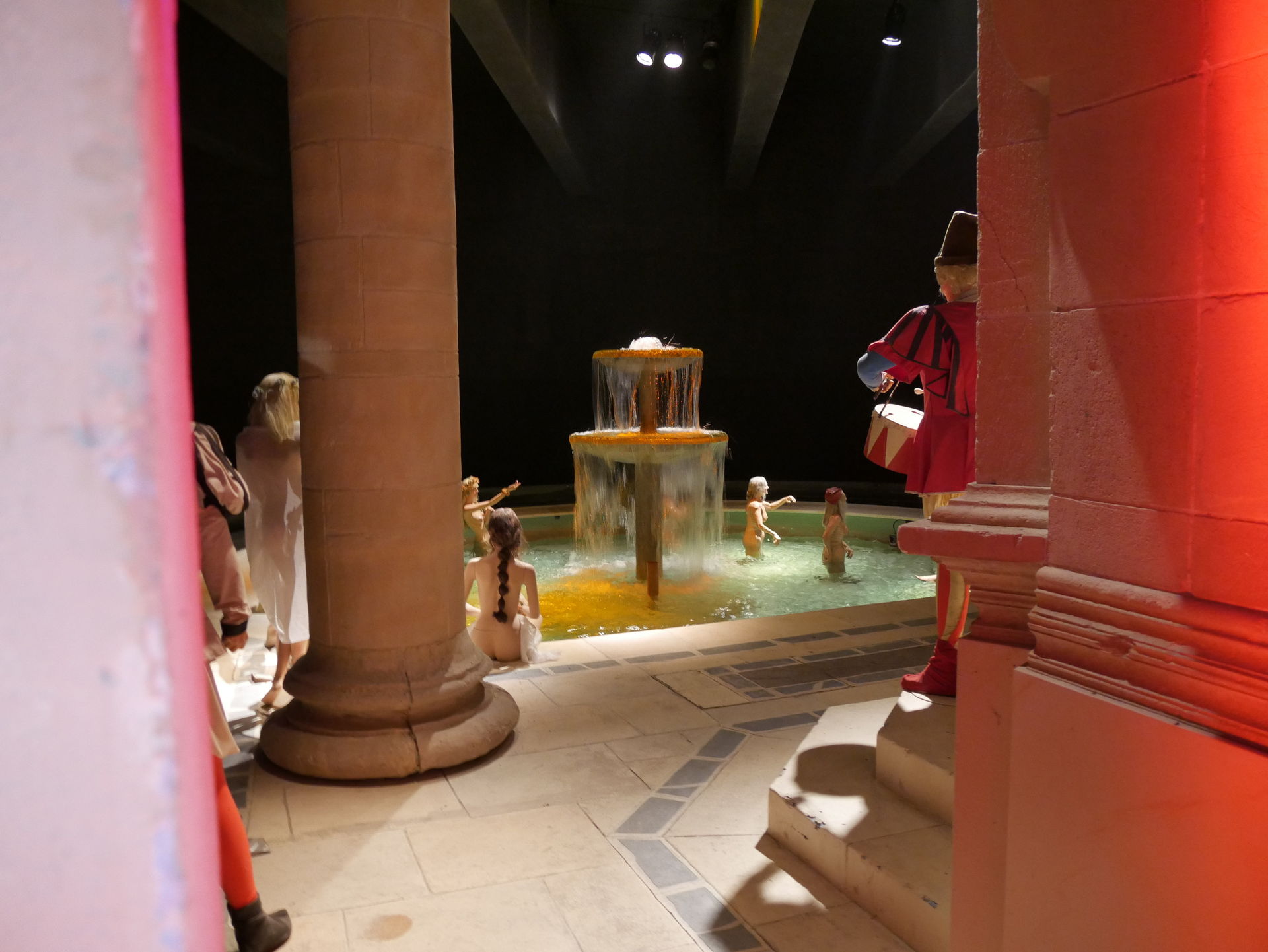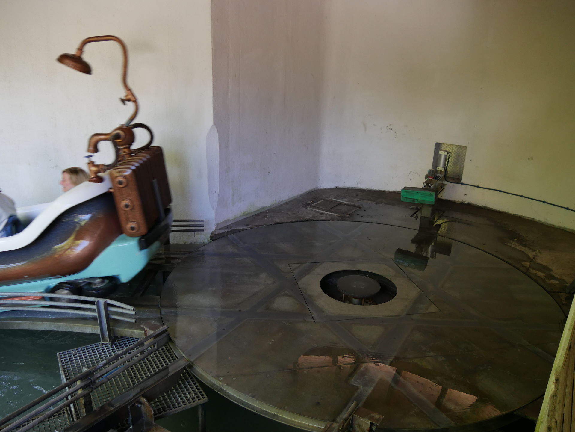 Der Darkride-Part mit dem Jungbrunnen aus einer ungewöhnliches Perspektive hinter dem roten Vorhang. Sieht auch von hier schön aus.