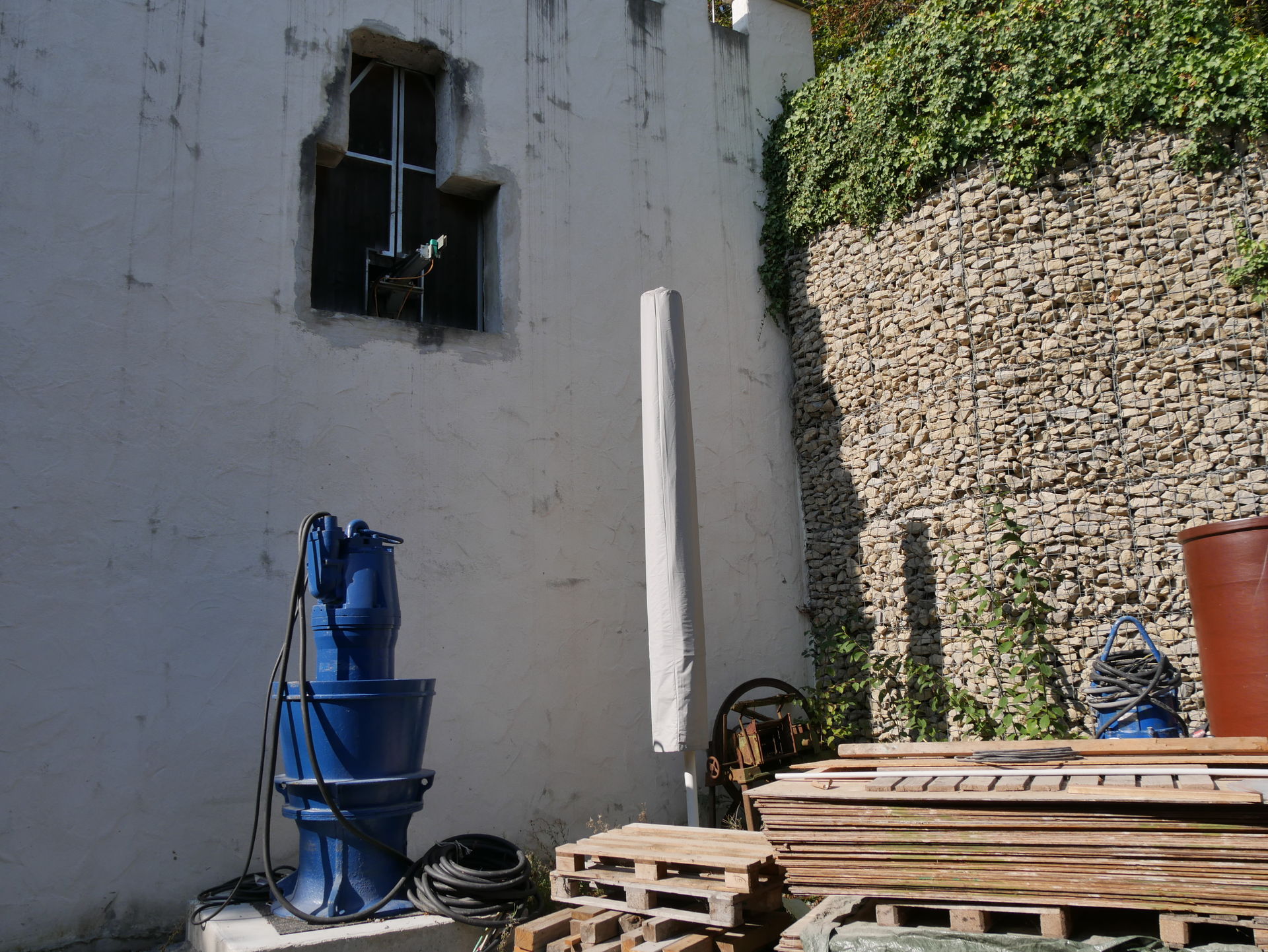 So sieht es unmittelbar hinter der Station aus. Mit dem Kran werden die Boote - äh Wannen aus dem Kanal gehoben.