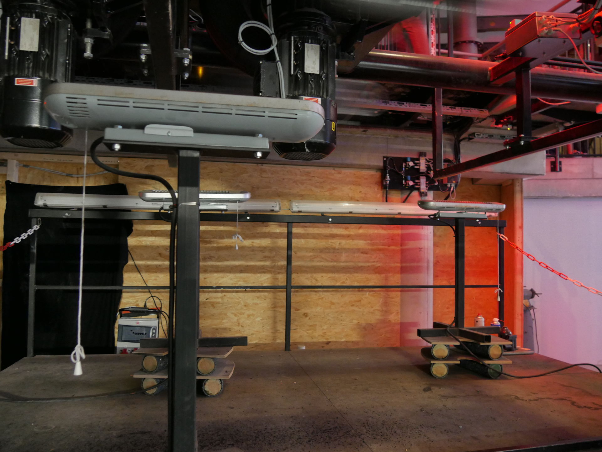 Die Heizstrahler sorgen dafür, dass das Fahrwerk der Wagen auf Temperatur gehalten wird.