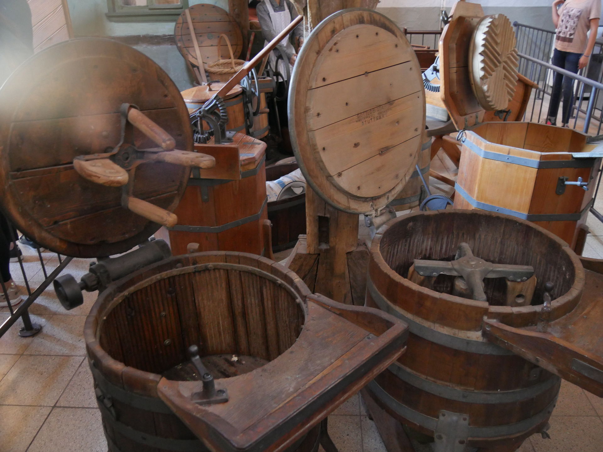 Das Waschzuber-Rafting von Hafema hat, wie viele der anderen Attraktionen auch, eine Art Museum in den Wartebereich integriert. Hier kann man einige historische Waschmaschinen und sonstige Utensilien aus diversen Jahrzehnten bewundern, Thematisierung at its best!