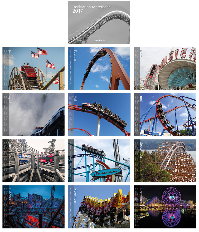 ab sofort könnt ihr den onride-Kalender Faszination Achterbahn 2017 bei uns bestellen. Auch in diesem Jahr wieder im hochwertigen Offsetdruck und in Übergröße für perfekte Entfaltung der Bilder. Hier erfahrt ihr mehr über die Wettbewerbe. Eine Vorschau gibt es sobald diese fertig ist.