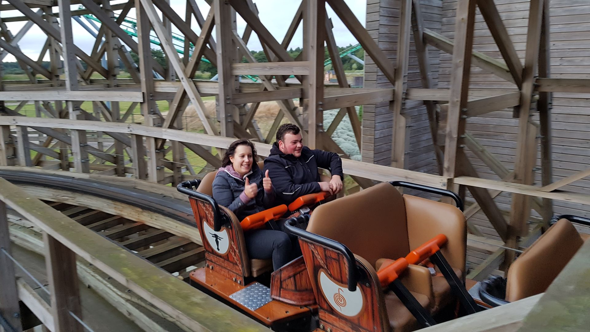 Wir konnten uns die Bahn aussuchen haben uns dann für ein paar Fahrten auf dem Spinning Coaster und Booster Bike entschieden, und die restlichen 40 Minuten auf schönem Holz verbracht.